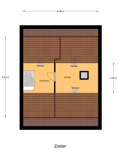 * Vaste trap naar zolder met 3 dakramen