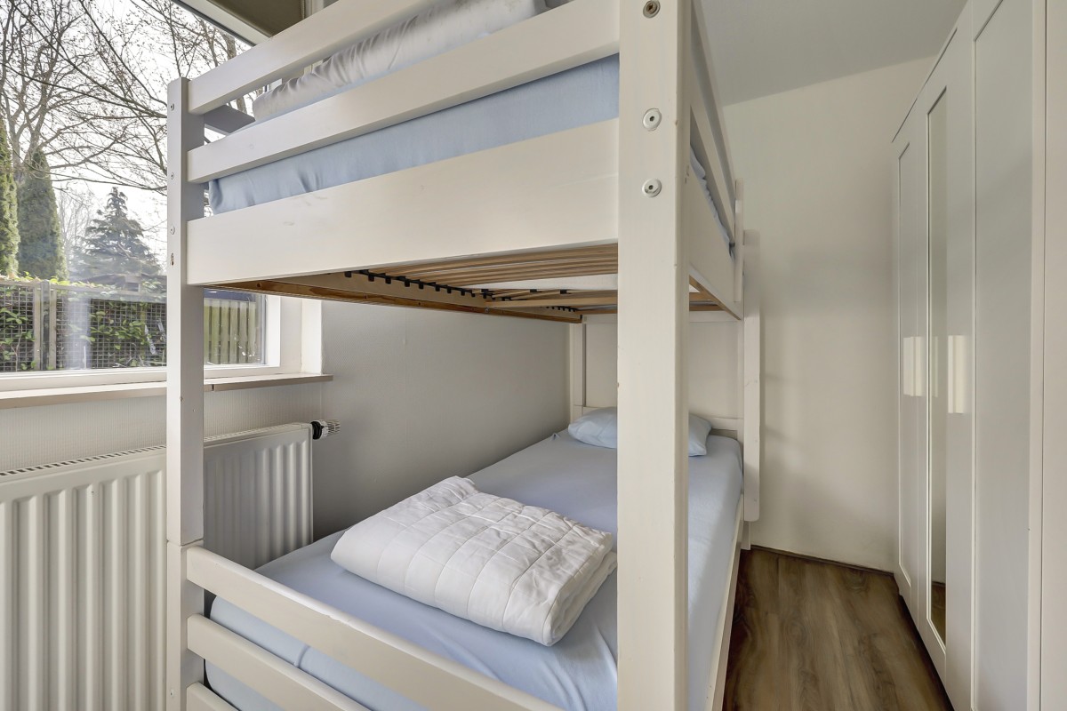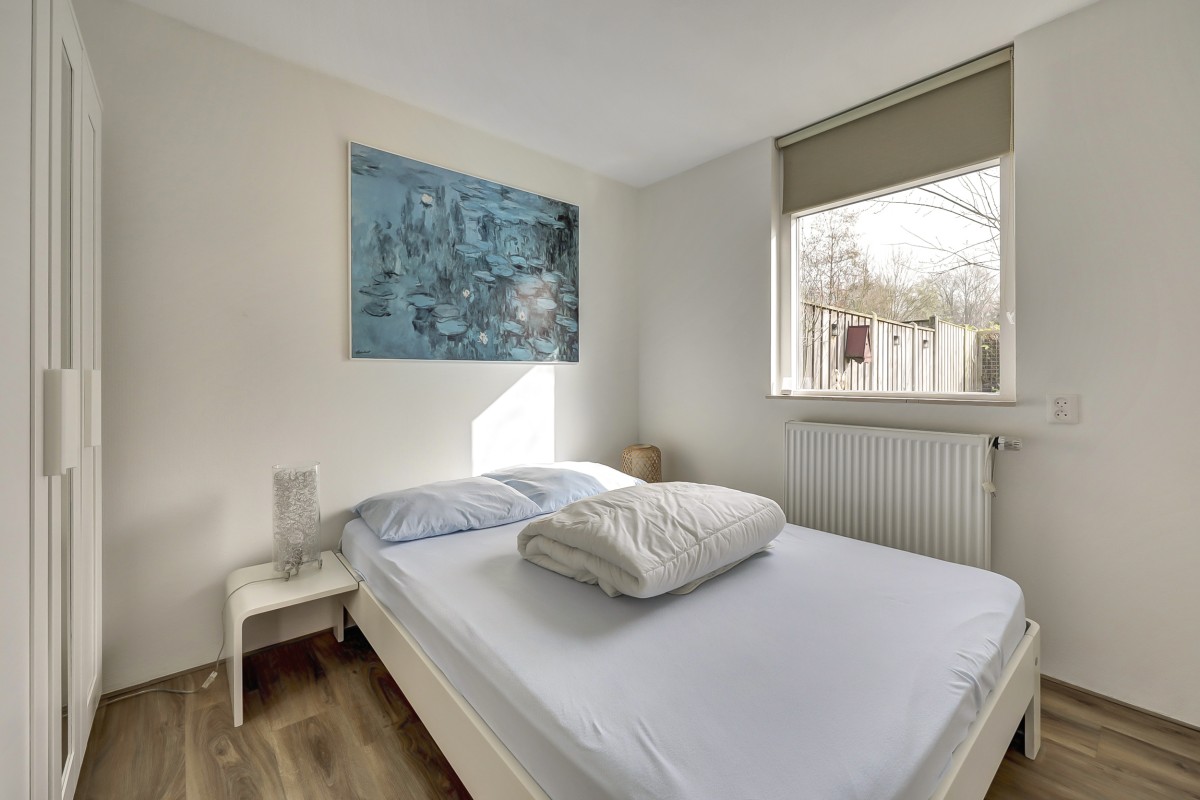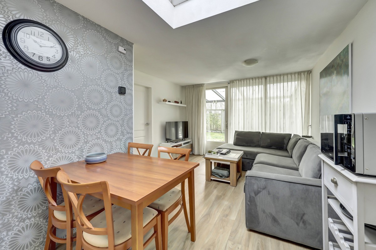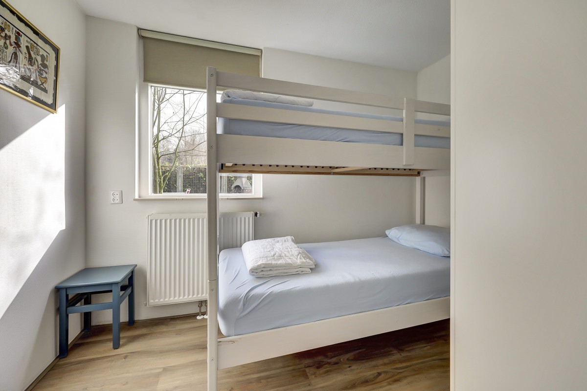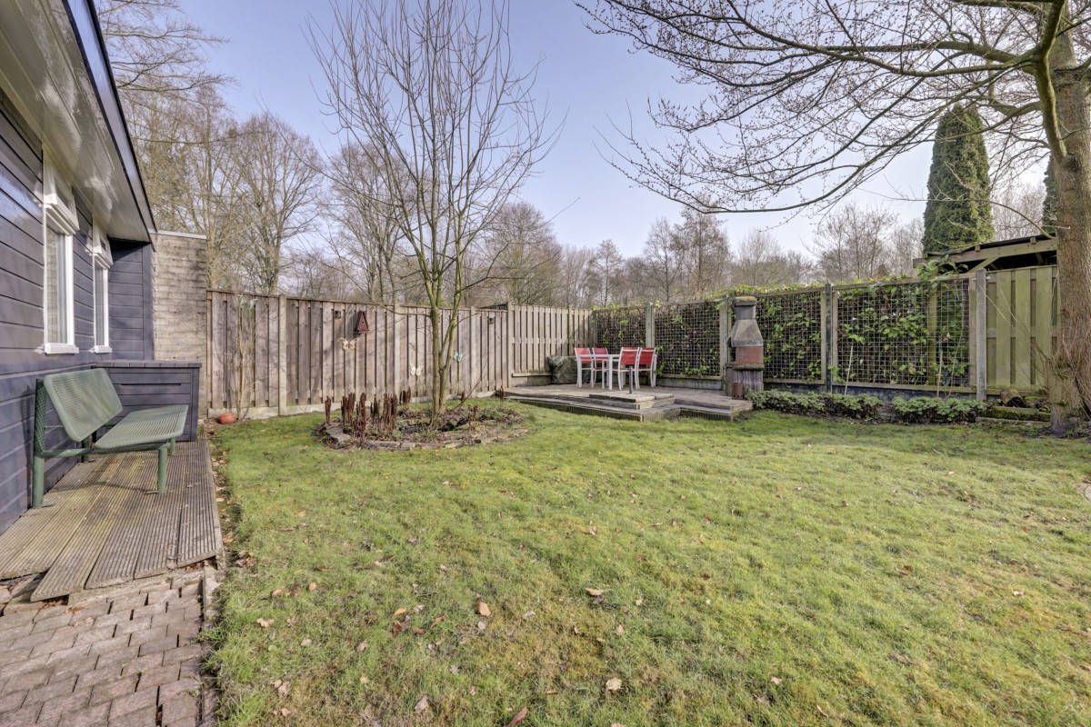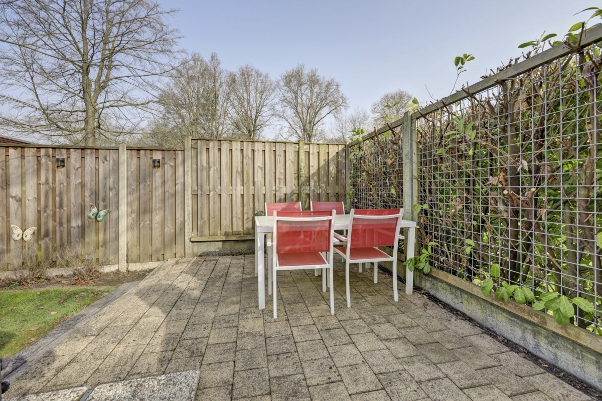 Lees verderAdditionally, the home features HR+ and HR++ glazing, contributing to extra comfort. Inside, you will find a neat and well-maintained finish. The walls are fitted with glass fiber wallpaper, and the ceilings are smoothly plastered. The floor features modern PVC flooring that provides a calm and contemporary look; extra PVC flooring is included for a potential extension of the bungalow. The kitchen has been renovated and is equipped with a built-in refrigerator, gas hob, extractor hood, and central heating boiler. The bathroom has also been renovated and features a walk-in shower, wall-mounted toilet, and washbasin. The bungalow has two bedrooms and a practical layout, providing ample space for a comfortable stay. Under the covered patio, you can also enjoy the sheltered green and peaceful surroundings outdoors. There is also a storage shed on the property, ideal for storing bicycles, garden furniture, or recreational equipment.