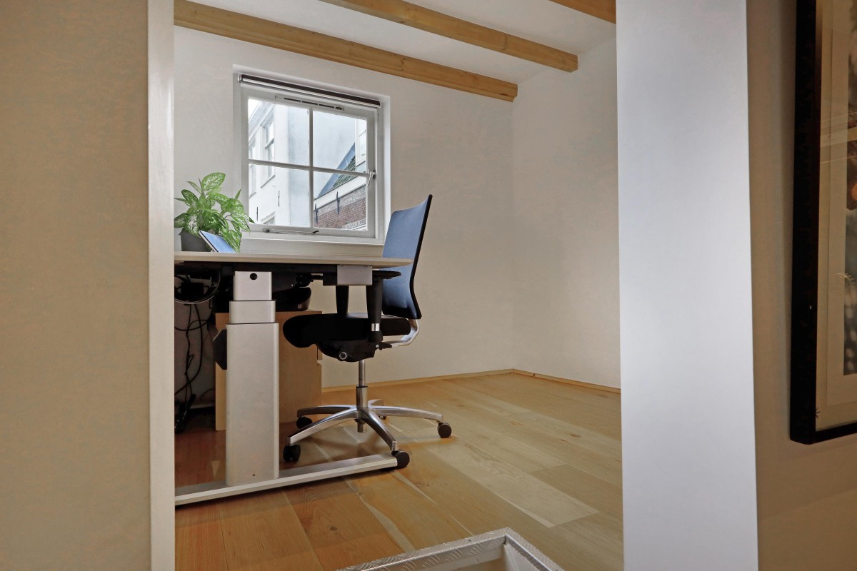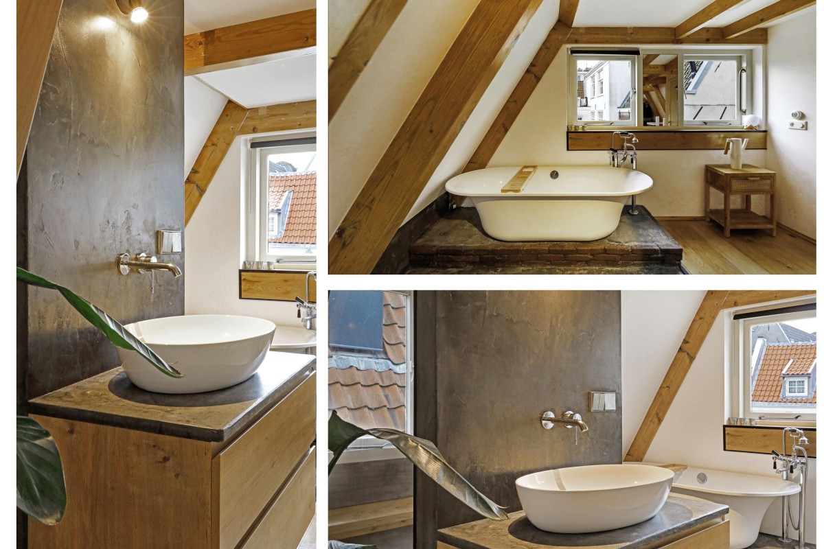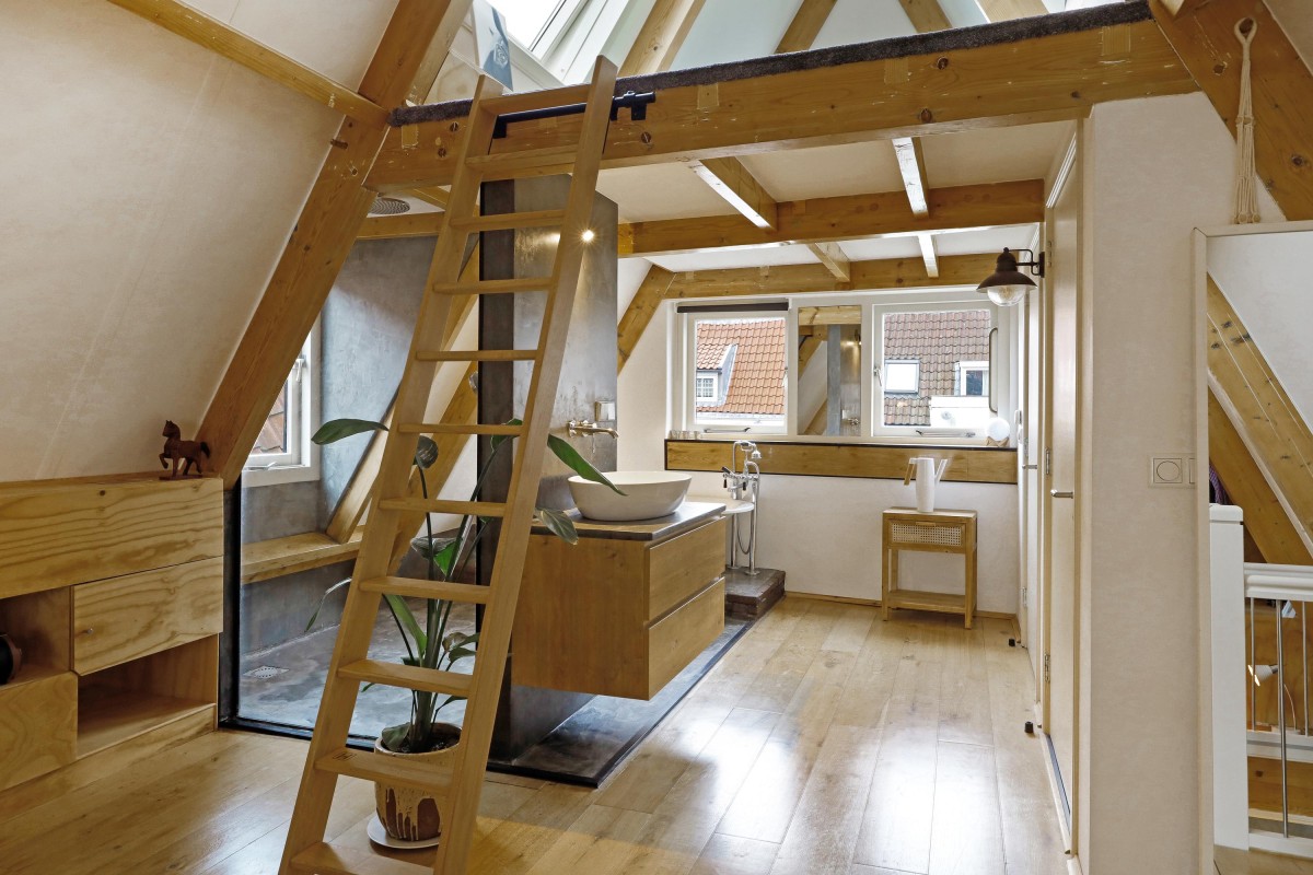 The second floor houses a very spacious bedroom, a luxurious bathroom, a toilet, a storage room and a loft. The spacious bedroom offers enough space to enjoy to the fullest. The bathroom exudes luxury with a freestanding bathtub, a rain shower, a modern basin and an industrial design that perfectly suits the house. The loft is easily accessible by stairs. The loft is a perfect place that can be used for various purposes, such as meditation, yoga or possibly for guests.