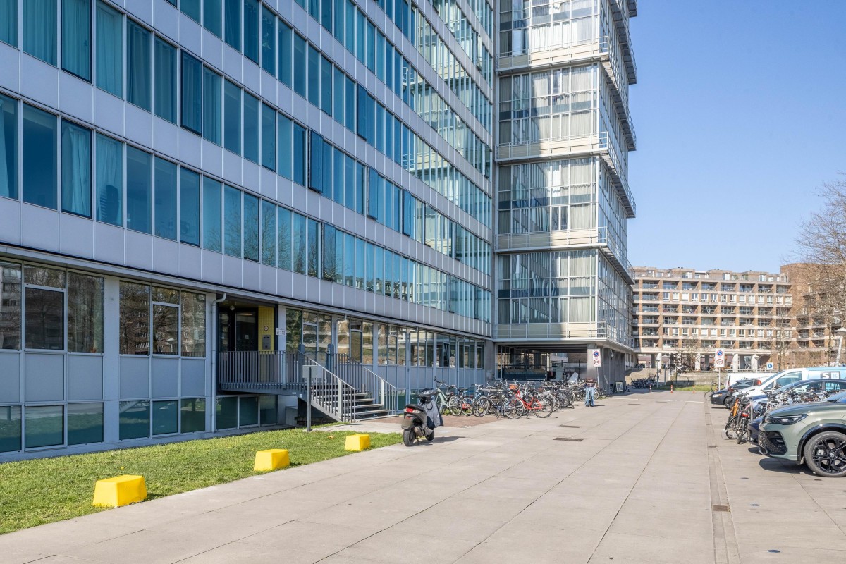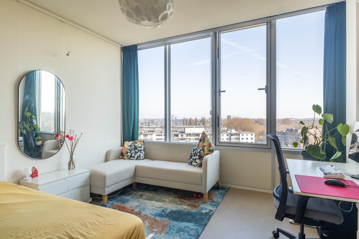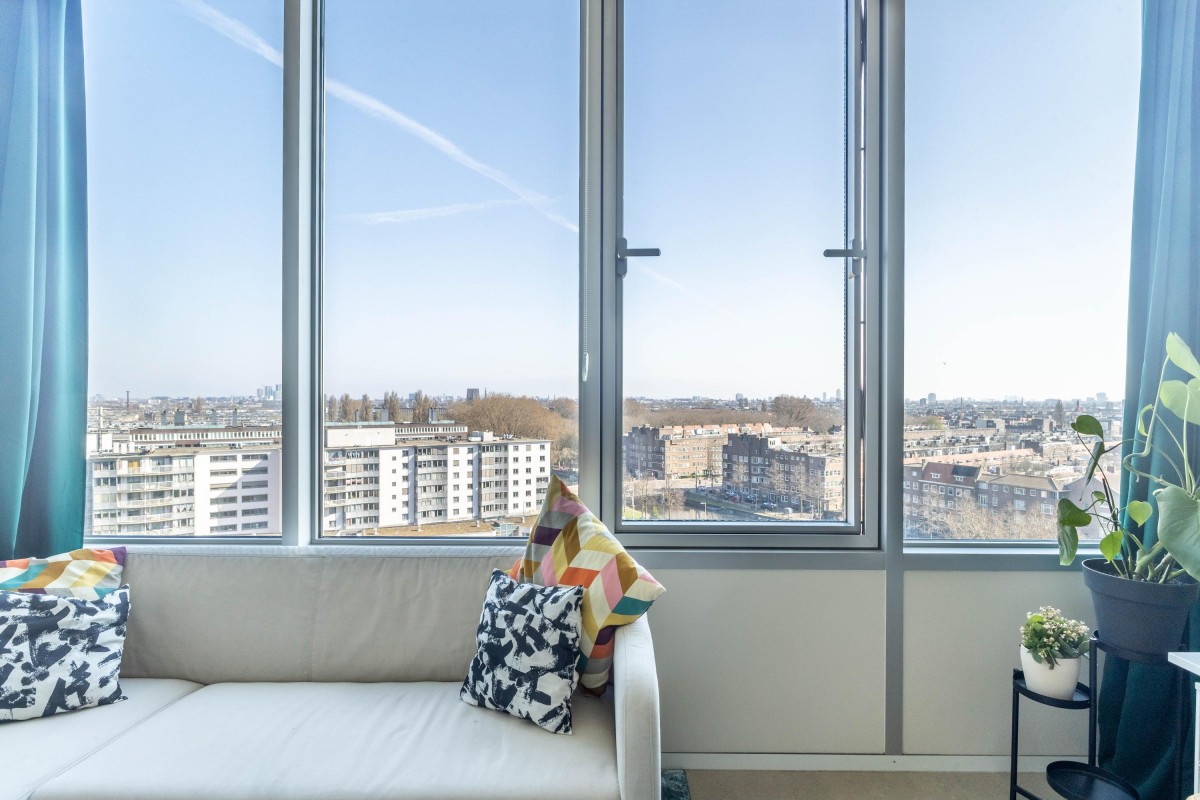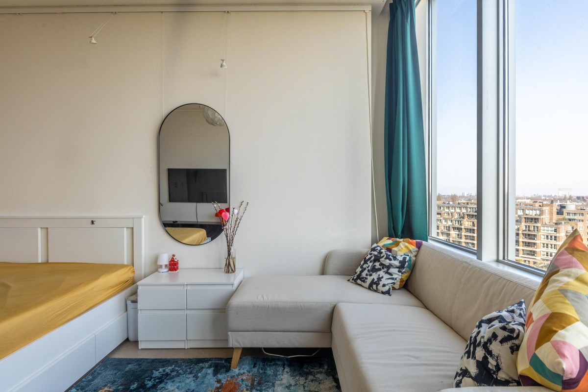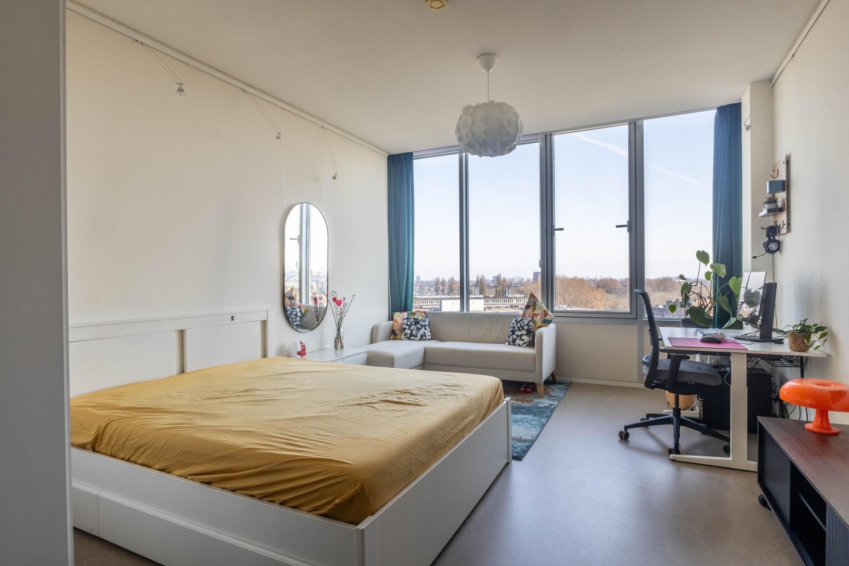 Bright studio apartment located within the Ring of Amsterdam, in a fully renovated complex from 2016. The apartment includes a private storage unit in the basement. With the Bos en Lommerplantsoen park right at the doorstep and a waterside restaurant next to the building, it offers a pleasant and practical living environment. The complex, the former GAK building, was fully renovated in 2014 and transformed into a modern residential building. Amenities such as dual elevators, a concierge, a secured bicycle storage, and a communal laundry room with (Miele) washing machines and dryers make living here extra comfortable. Access to the building is restricted to residents only.