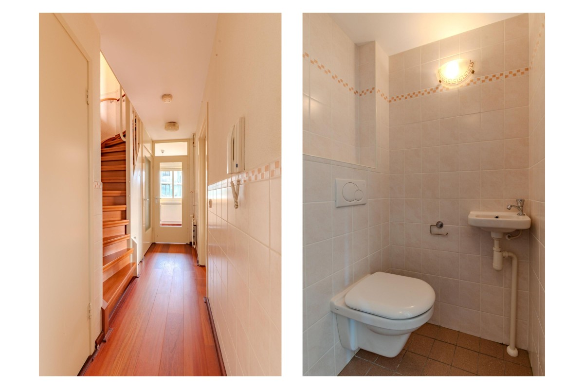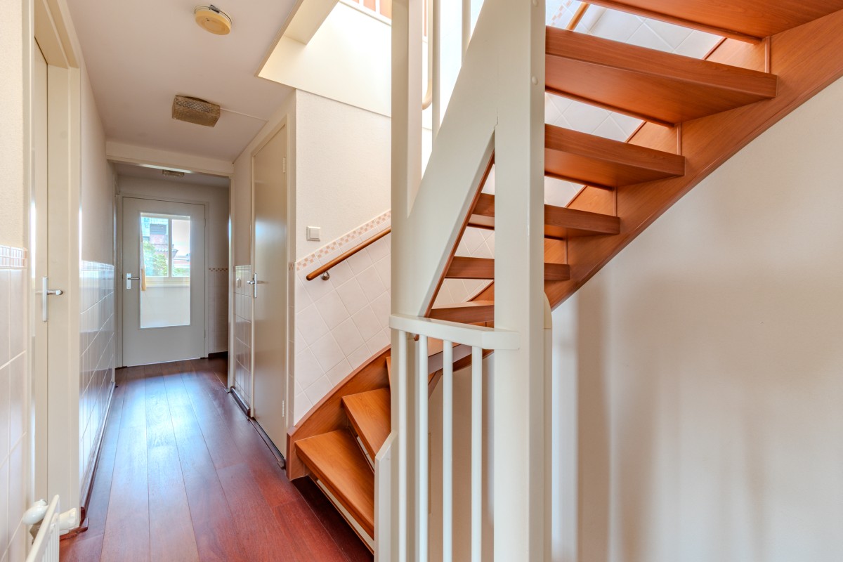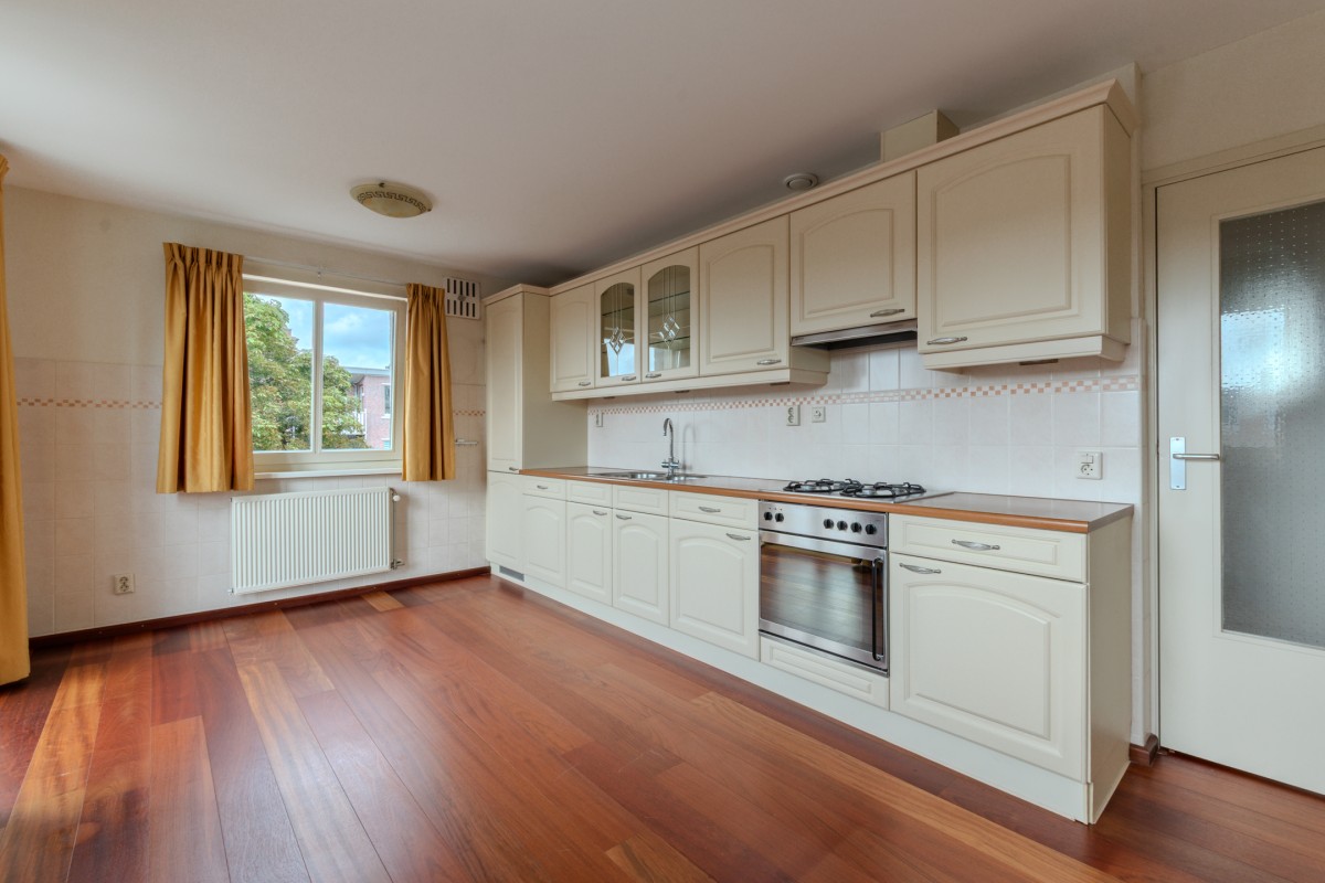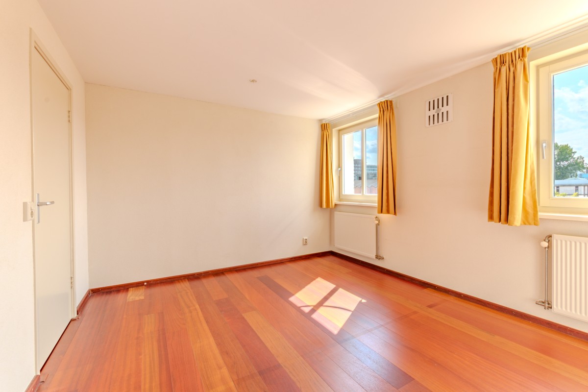 This generously sized home is situated at the end of the apartment complex, allowing light to enter from three sides. It features a well-proportioned living room, a spacious kitchen, five bedrooms, a wonderful rooftop terrace, a large attic, and a private storage room on the ground floor. The ground lease has been paid off until December 2054, and the apartment has an Energy Label A! Enjoy the lively character of the neighborhood, with all essential amenities within easy reach.