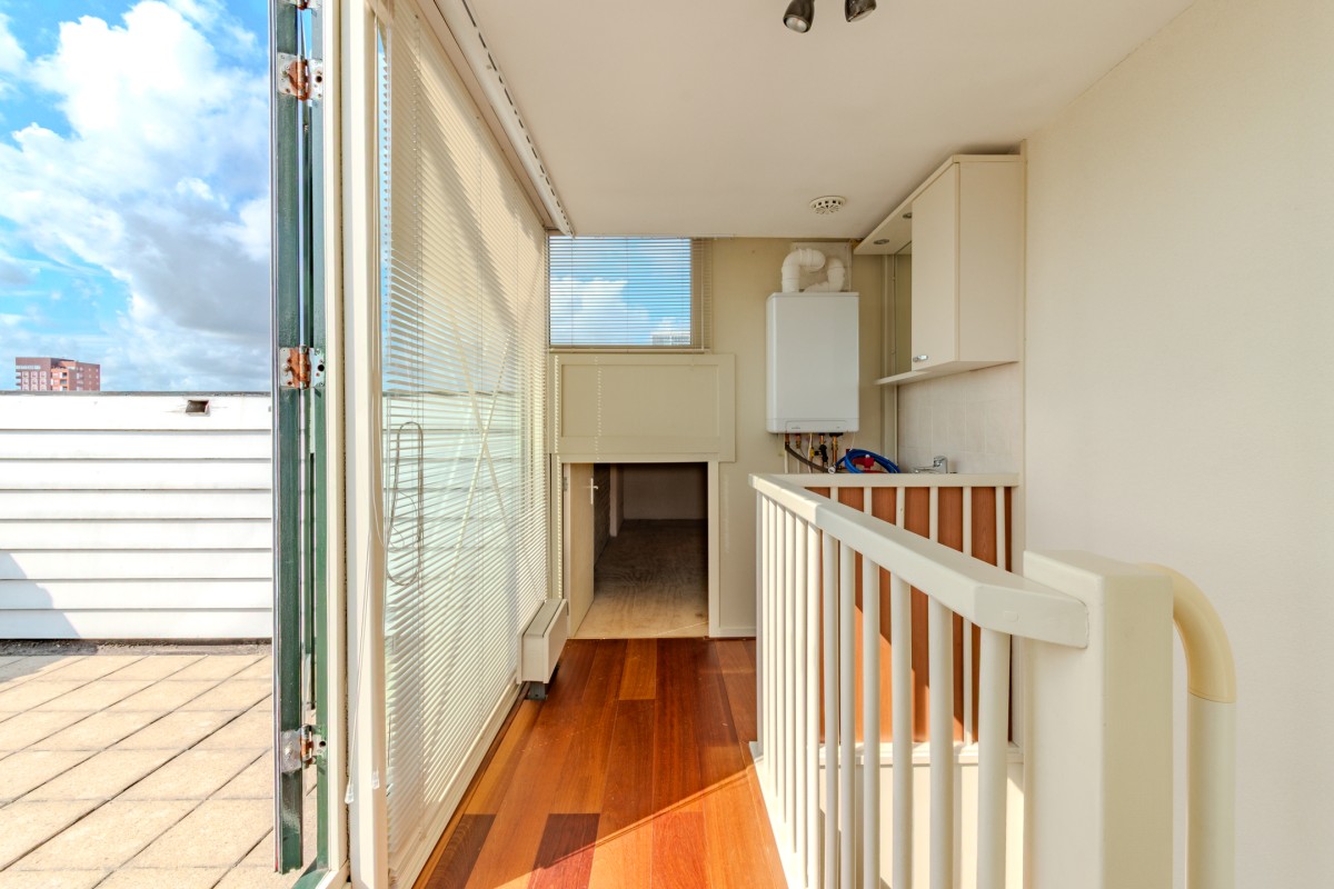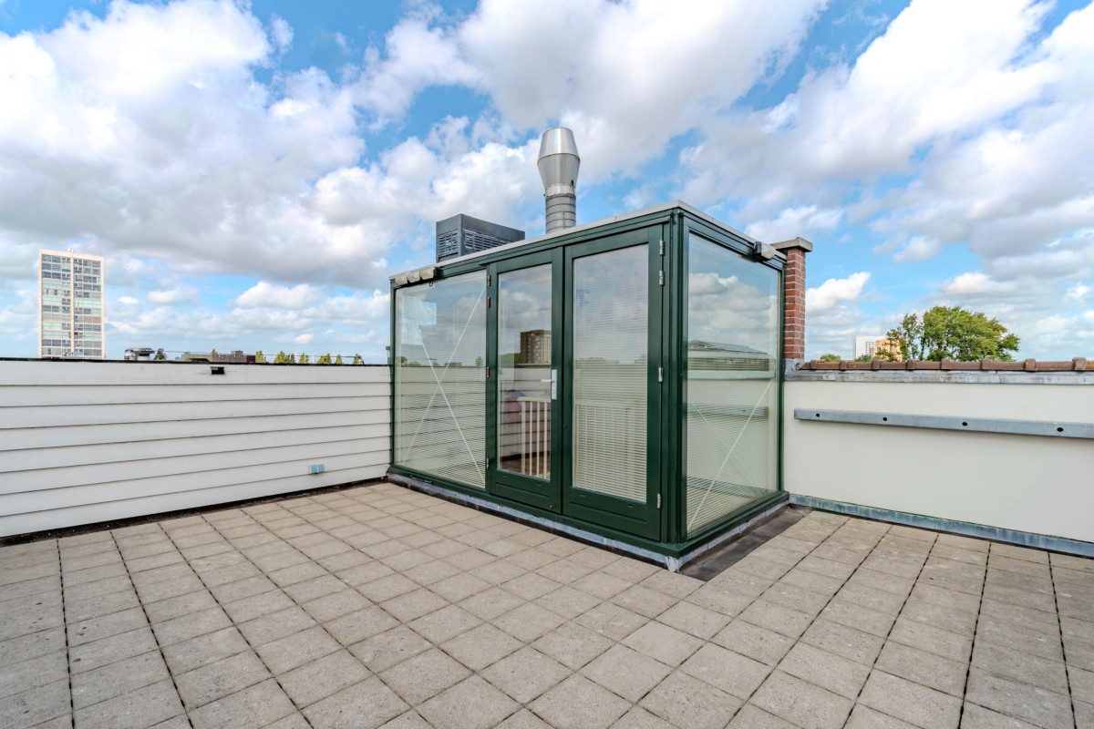 A spacious 6-room apartment of approx. 112 m², renovated in 2006, located on the top two floors at the corner of Bos en Lommerweg and Jan van Schaffelaarplantsoen, featuring a fantastic rooftop terrace of approx. 25 m² in the Kolenkitbuurt, Amsterdam Nieuw-West.