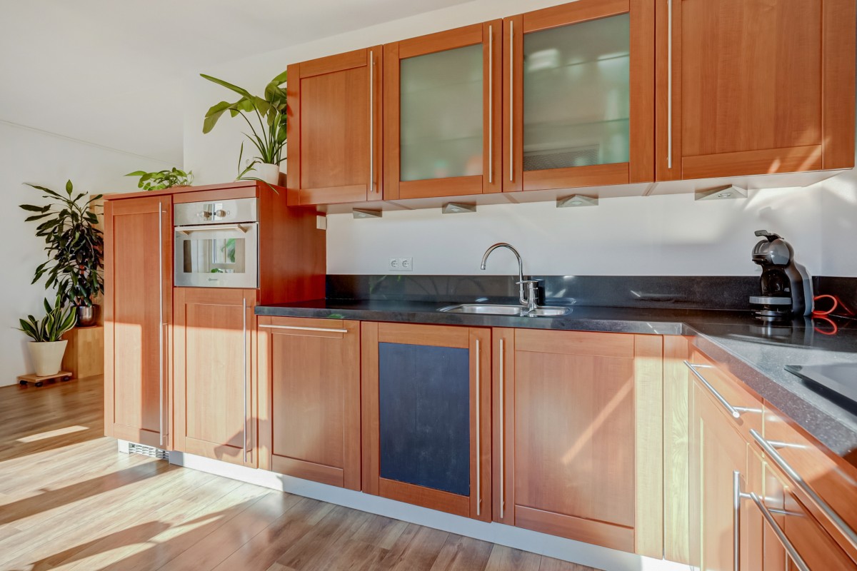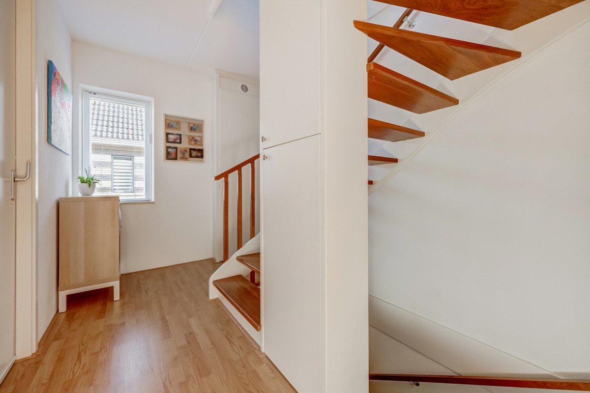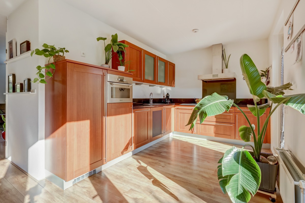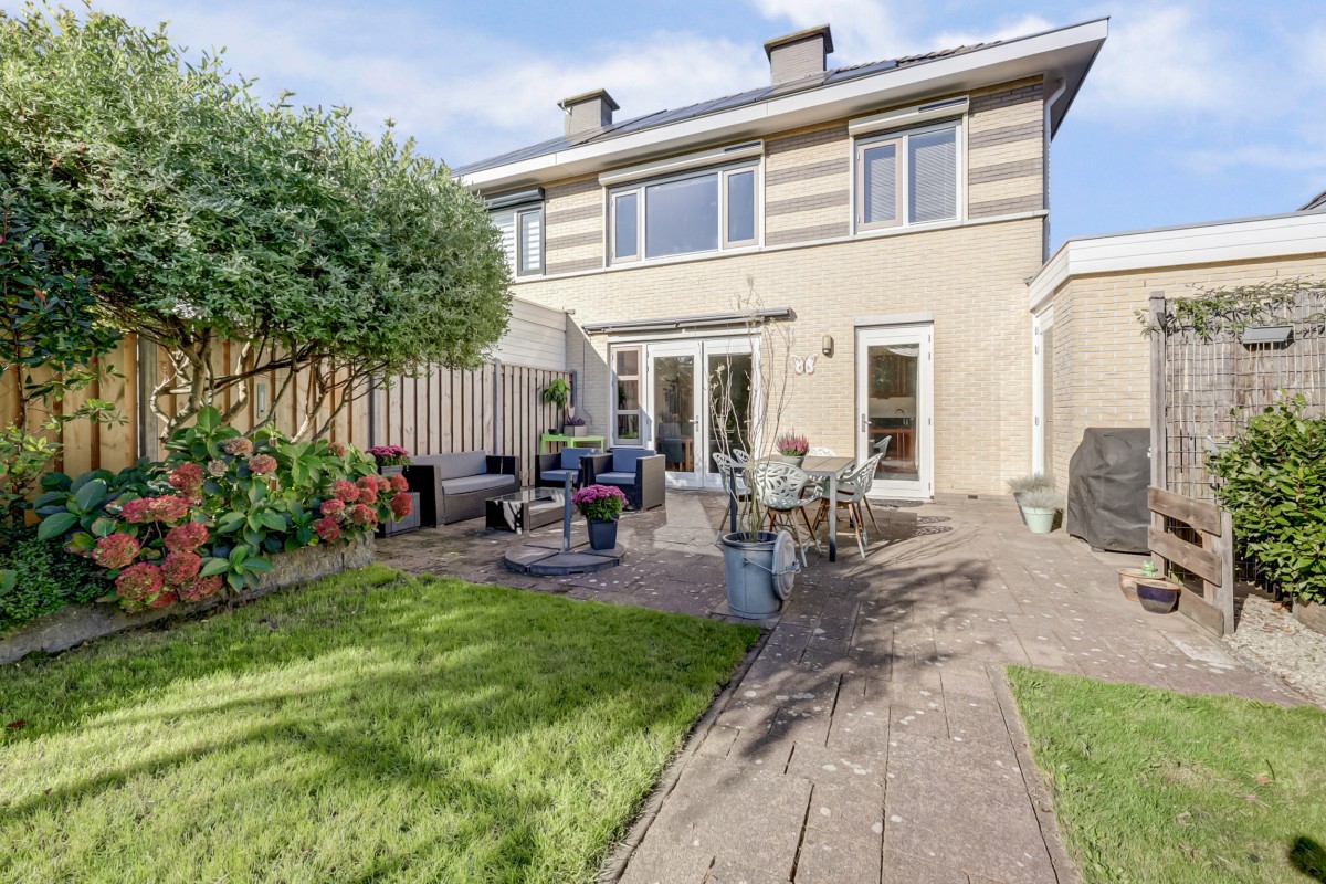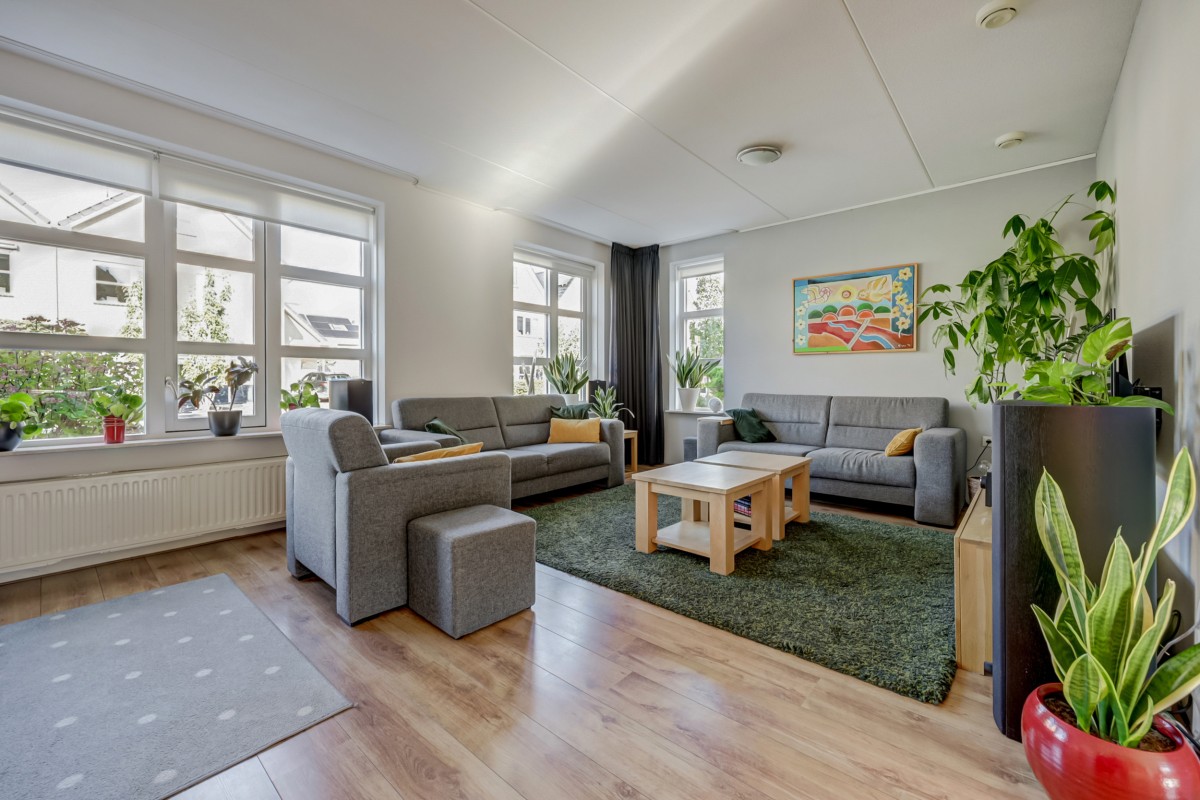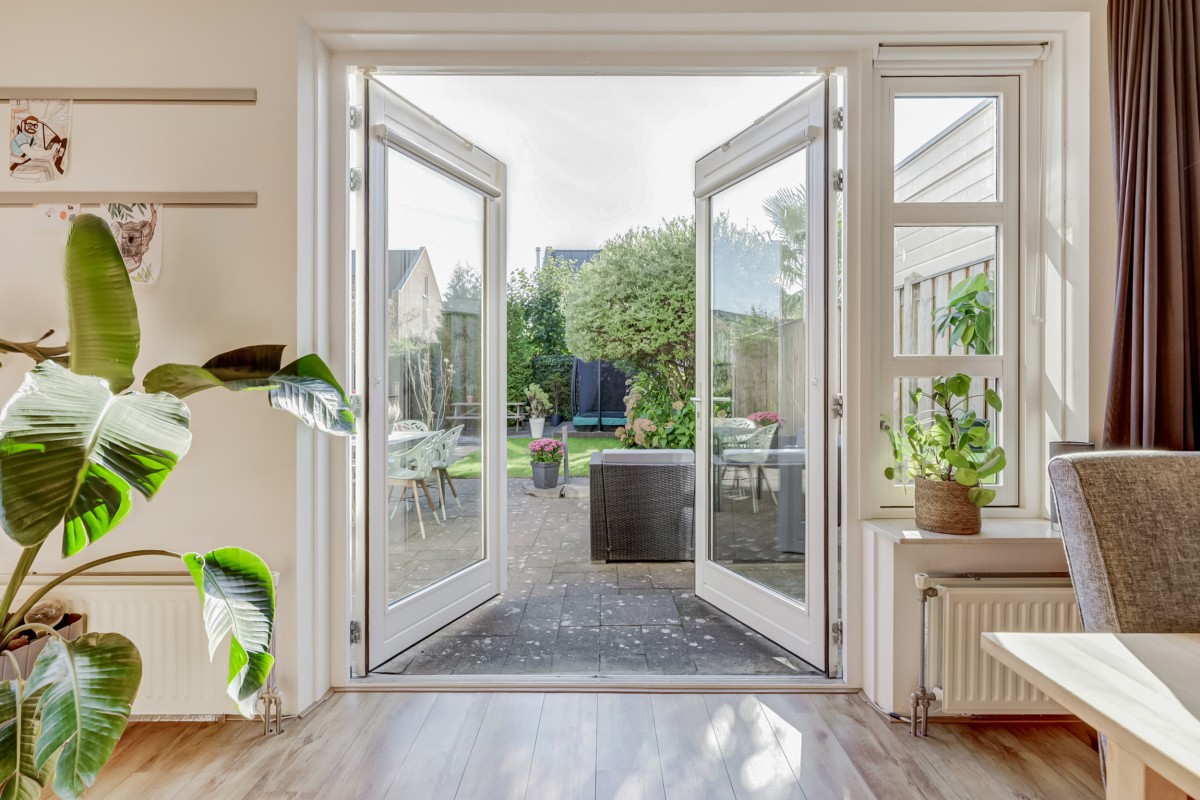 Begane grond: overdekt entree, hal met meterkast, garderobe, toiletruimte, trapopgang en doorgang naar de woonkamer. De straatgerichte woonkamer is dankzij de vele raampartijen heerlijk licht. Aan de achterzijde bevindt zich de eethoek met dubbele openslaande deuren naar de tuin. Aansluitend is de in een hoek opgestelde keuken gesitueerd, voorzien van koelkast, vaatwasser, combi-magnetron, 5-pits gas-op-glas kookplaat, RVS-afzuigschouw, 1½ spoelbak en composiet-aanrechtblad met smetrand. Vanuit de keuken is er ook toegang tot de verzorgde achtertuin, die dankzij de ruime maatvoering volop zonmogelijkheden biedt.