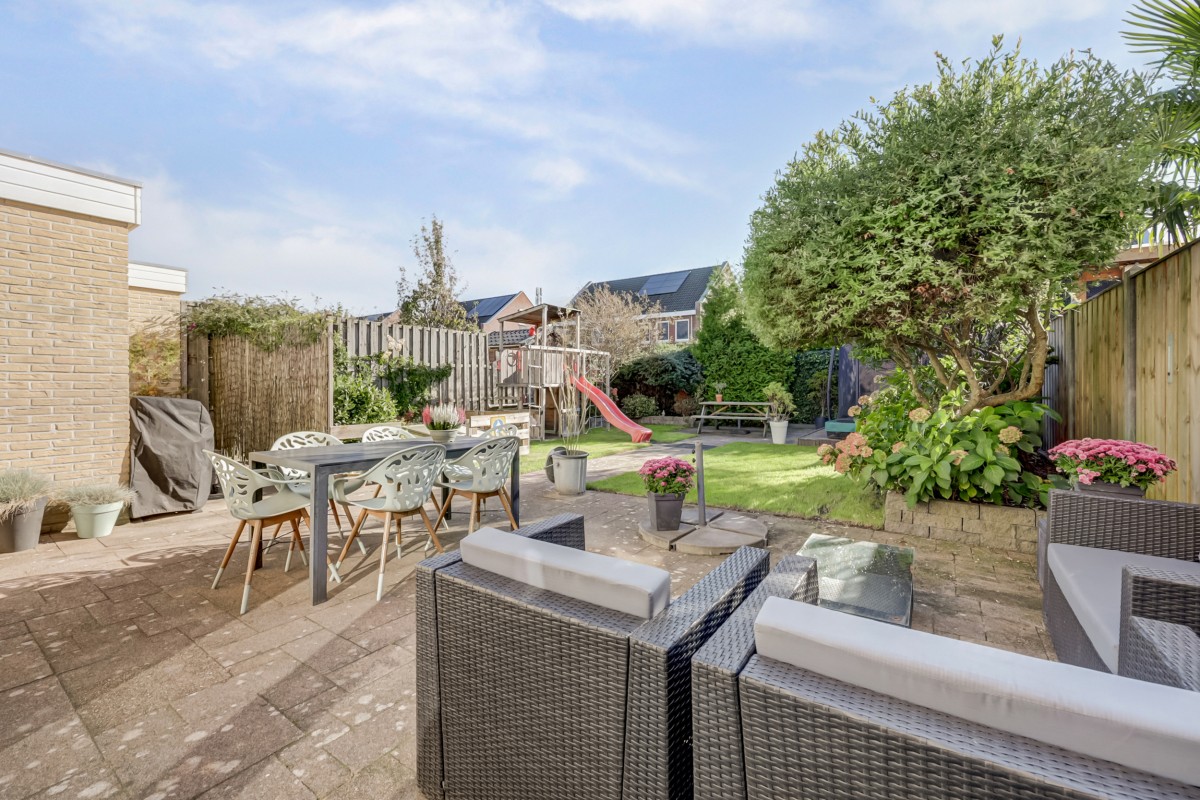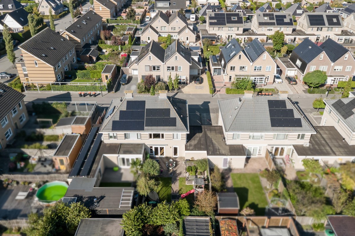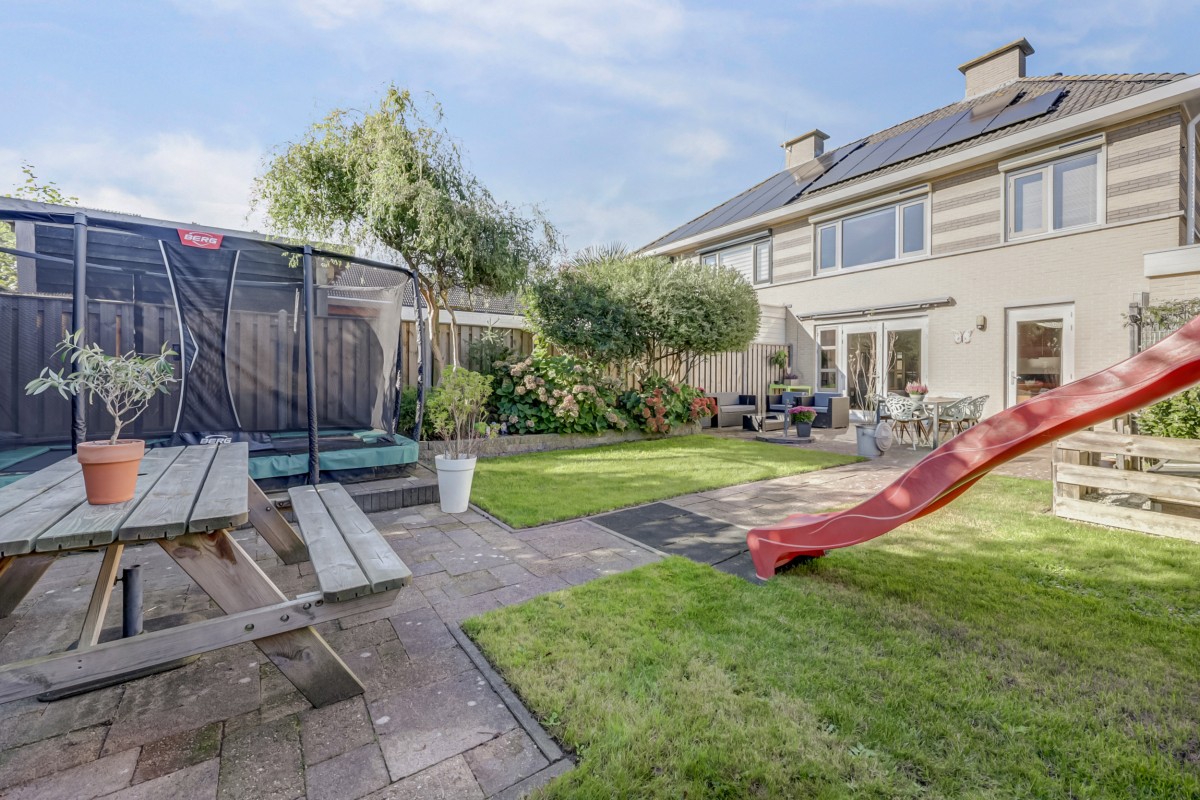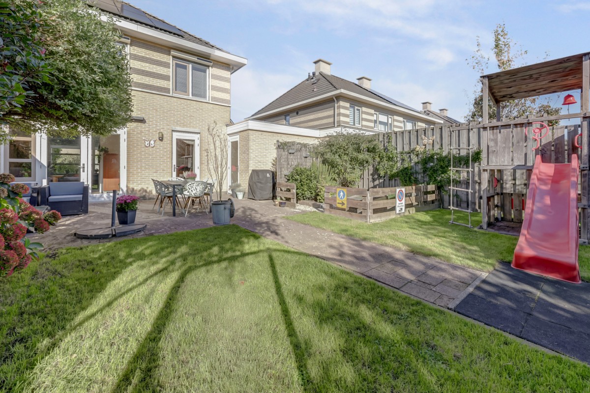 In de kindvriendelijke woonwijk De Gilden staat deze ruime 2/1-kapwoning met aangebouwde garage en een royale tuin op het zuidoosten. De woning beschikt over drie slaapkamers en een ruime zolder en ligt gunstig ten opzichte van het wijkwinkelcentrum, het gezondheidscentrum, scholen en kinderopvang. Ook het speeleiland ligt op korte loopafstand, ideaal voor gezinnen met jonge kinderen. Verder biedt de woning een ruime oprit met parkeergelegenheid voor meerdere auto's en een royale achtertuin, waar u de hele dag van de zon kunt genieten. De woning is voorzien van energielabel A en heeft daarnaast 9 zonnepanelen op het dak.