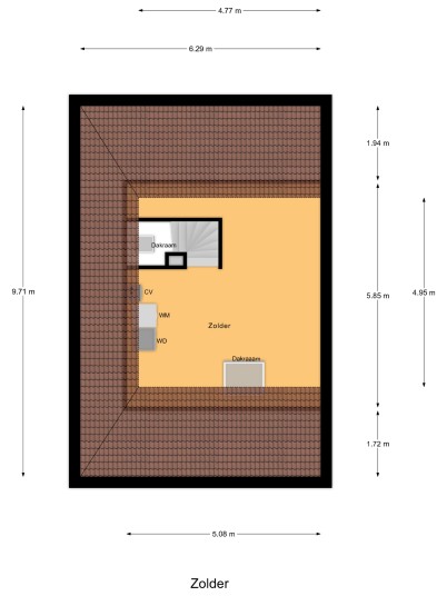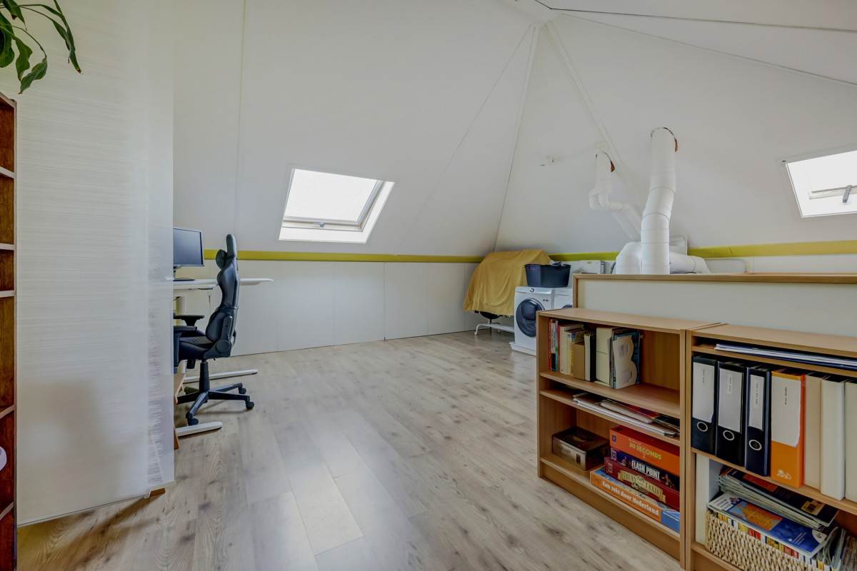 Tweede verdieping: via een vaste trap is de zolderverdieping bereikbaar. Hier bevinden zich de cv-ketel en de WTW-unit. Dankzij de aanwezige dakramen kan deze verdieping eenvoudig worden gebruikt als extra kamer of werkplek.