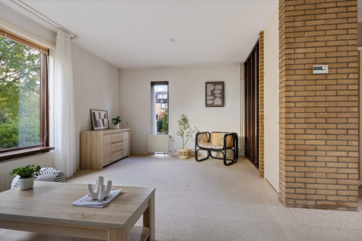 Er is voldoende ruimte voor een heerlijke zithoek en een grote eettafel. De woonkamer is tevens voorzien van een handige inbouwkast.
