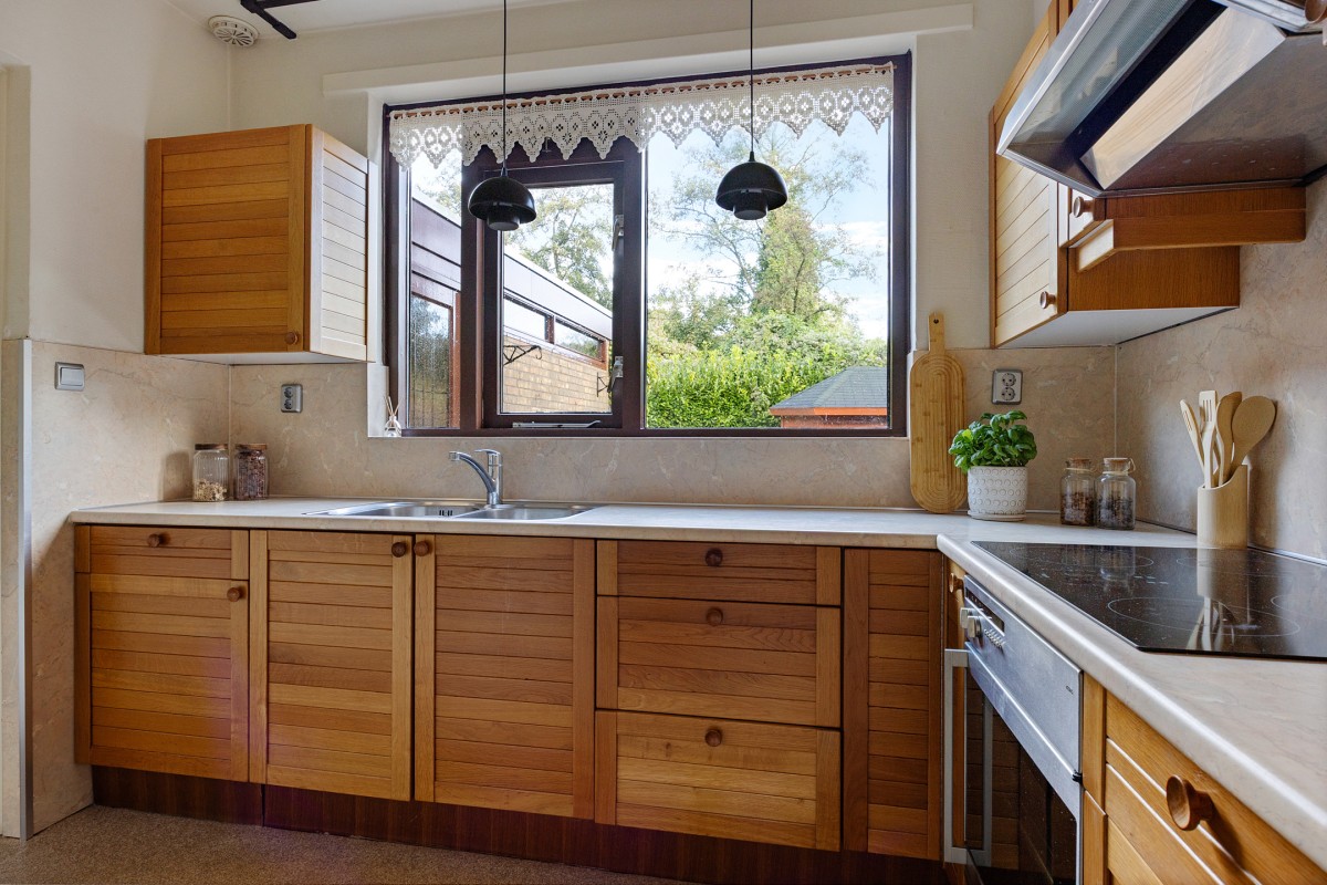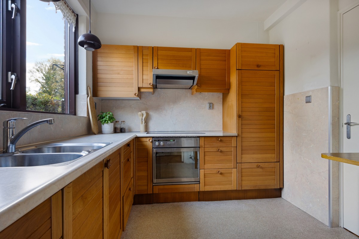 De keuken is gedateerd en vraagt om een frisse blik, maar biedt volop mogelijkheden voor een moderne upgrade naar uw eigen smaak.
