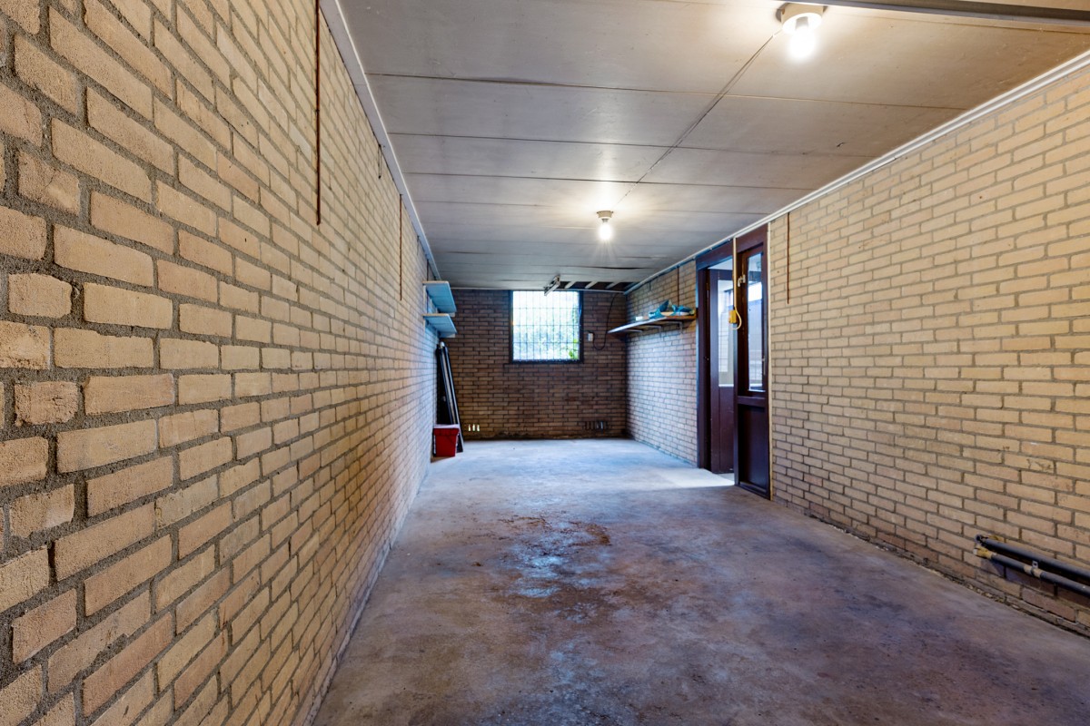 De garage is uitgerust met een elektrisch bedienbare kanteldeur en is ideaal voor het stallen van een auto, fietsen, motor of als extra bergruimte.