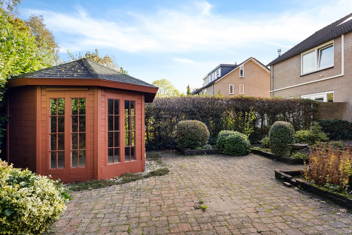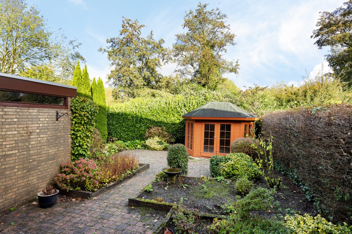 De achtertuin biedt veel privacy en is een rustige groene oase.
