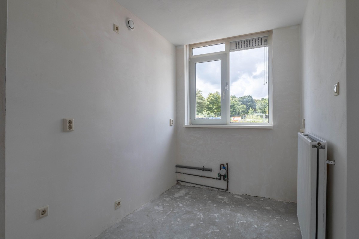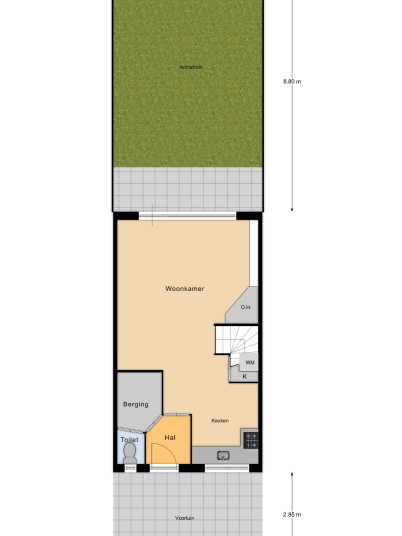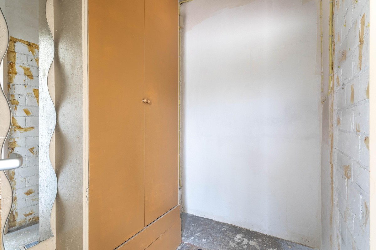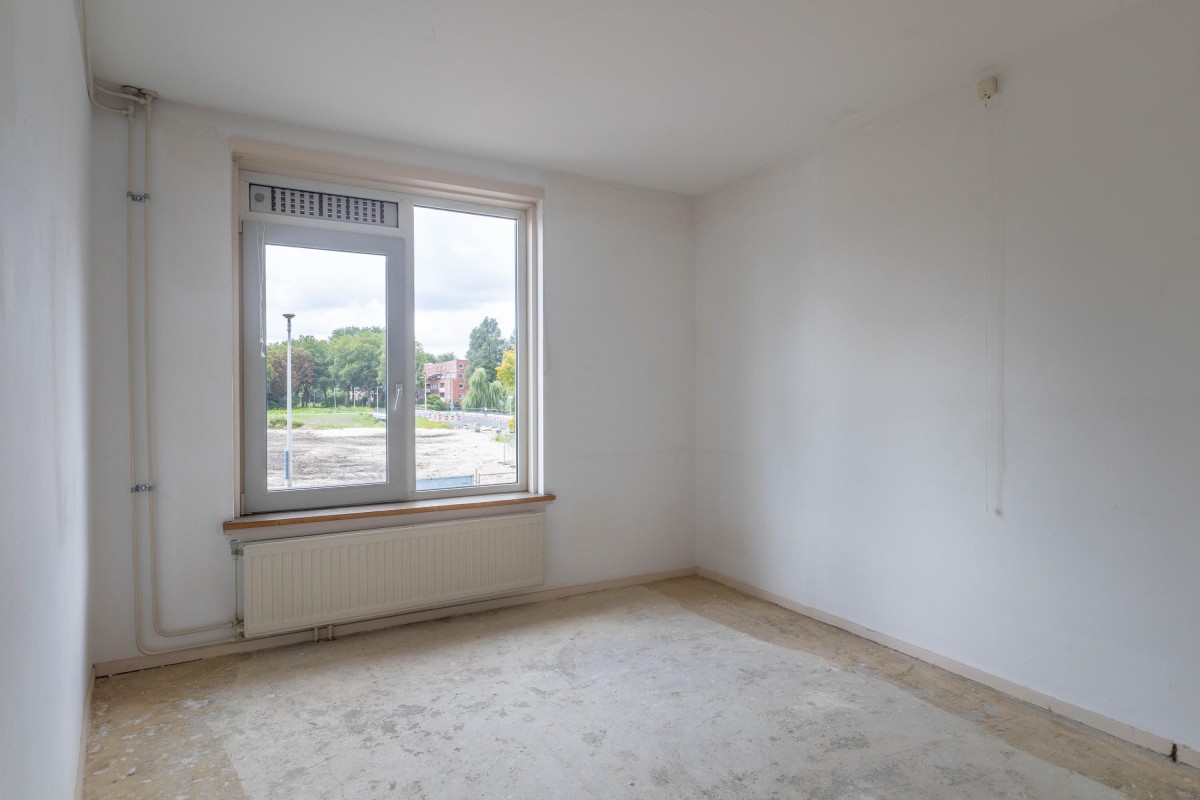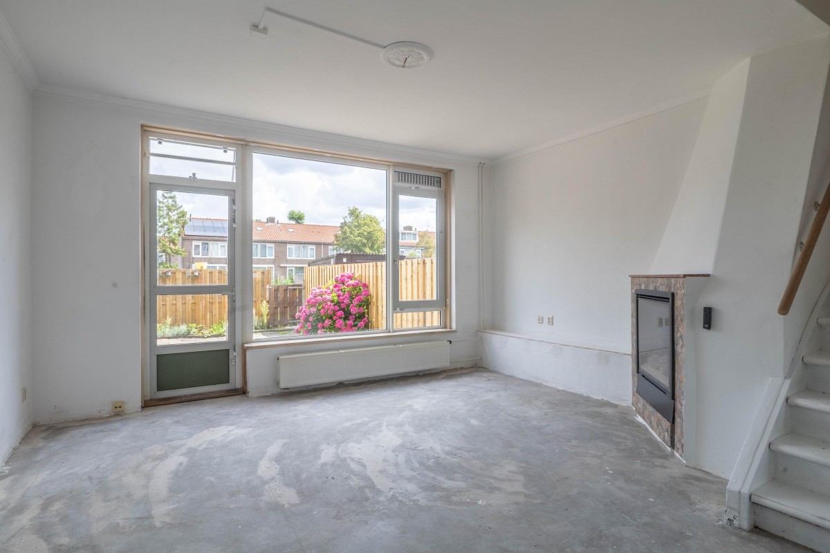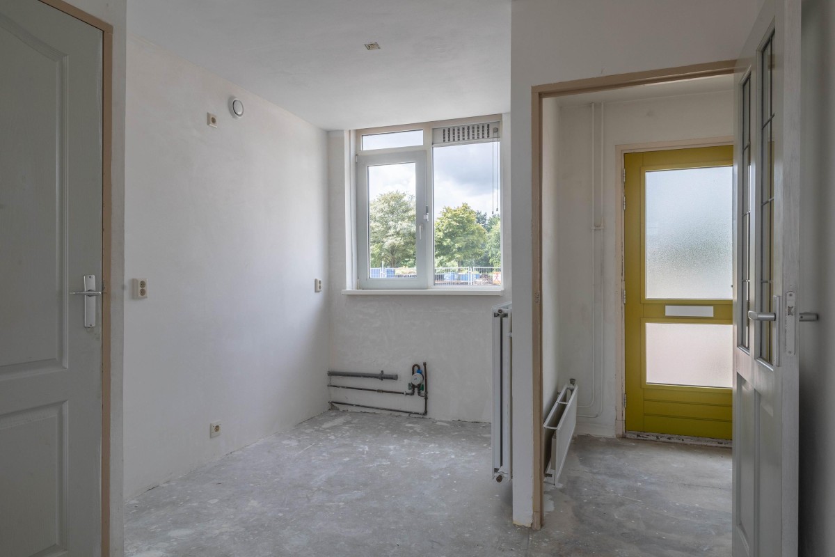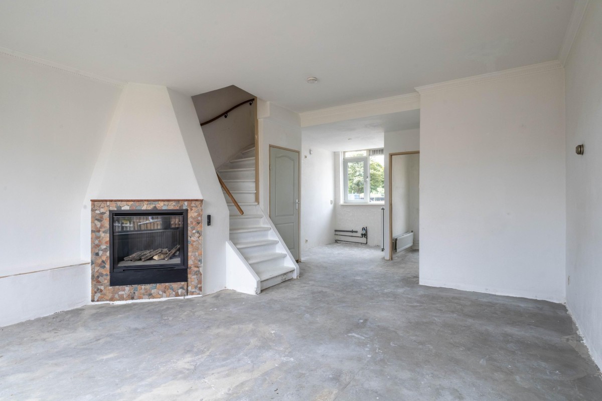 Lees verderAt the front of the property, you’ll find the kitchen in shell condition, ready for you to finish to your own preferences. Under the staircase is a practical storage cupboard with the connection for the washing machine. At the rear is the bright living room with an open fireplace. The garden door in the living room opens onto the approximately 44 m² backyard, facing east. Here, you can enjoy the sun and the surrounding greenery. The garden also features a back entrance.