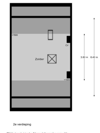 A loft ladder provides access to the attic floor, where a skylight lets in natural light. This space offers plenty of possibilities for various uses and layouts. The central heating boiler (Intergas, built in 2011) is also located here.
