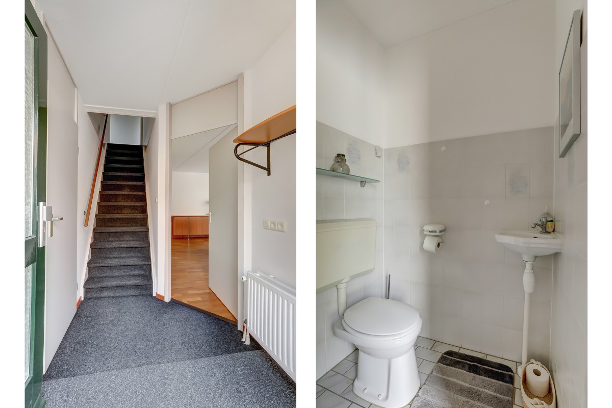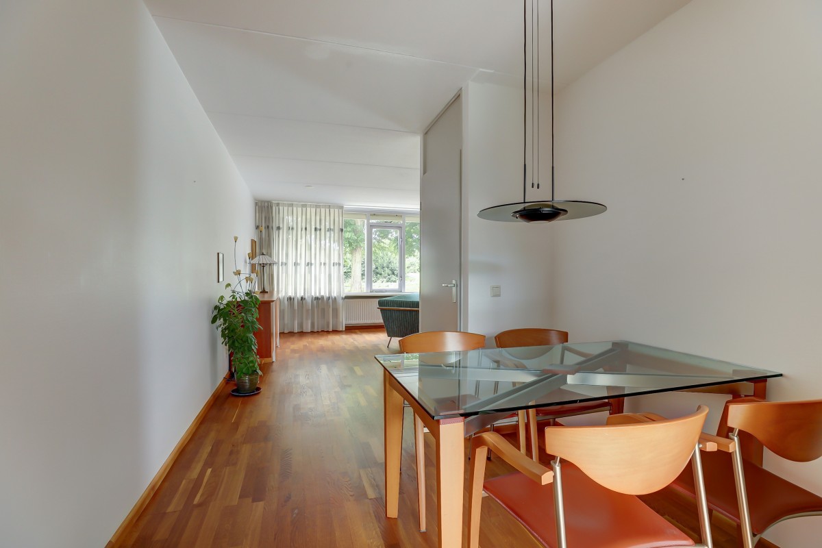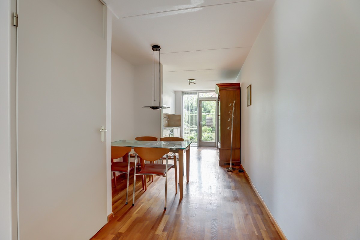 Begane grond: entree, hal met garderobe, toiletruimte en meterkast. Straatgerichte woonkamer met uitzicht op openbaar groen en aansluitend een ruime eethoek met open keuken.