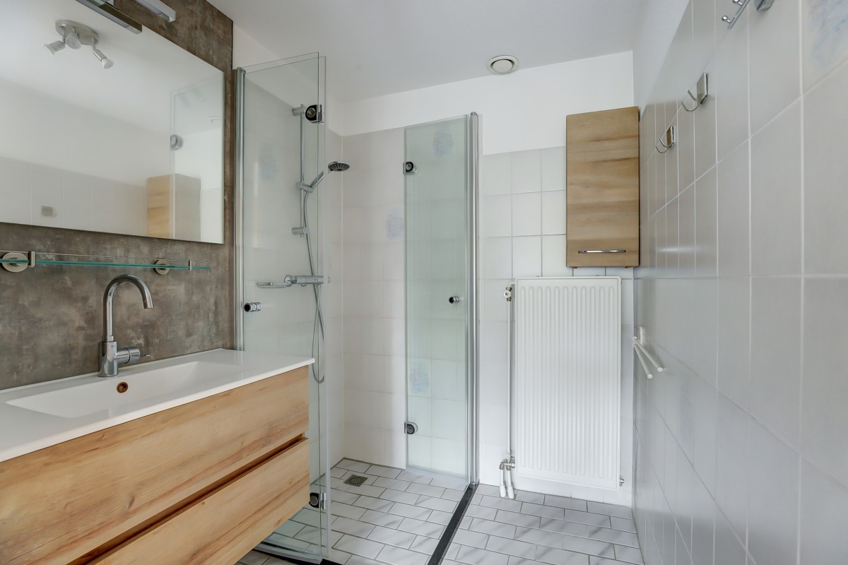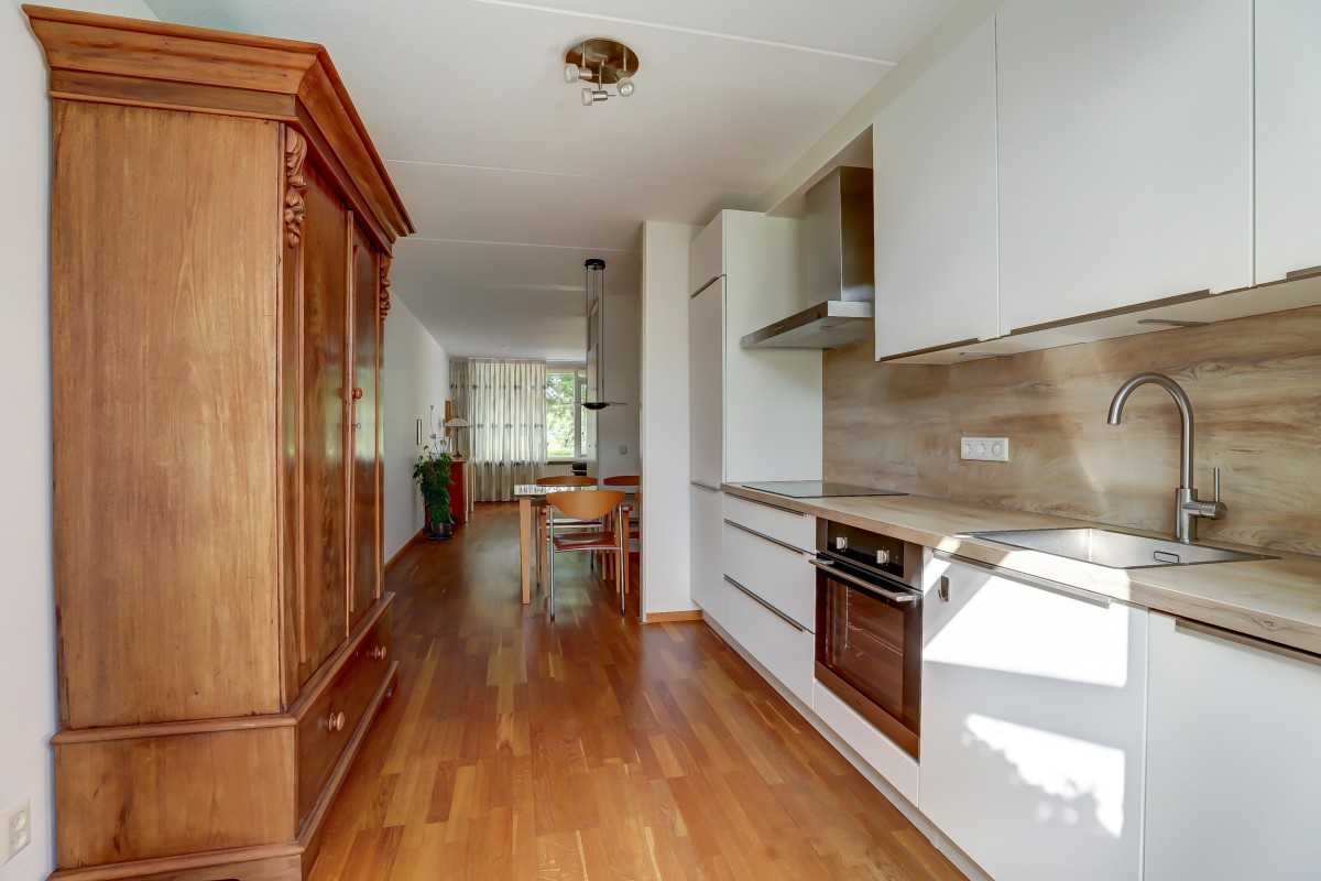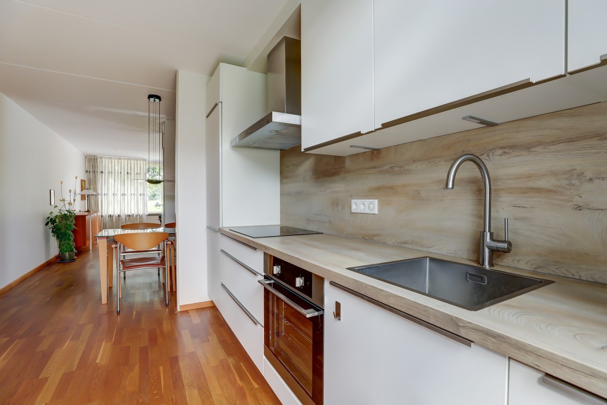 Lees verderDe keuken is modern uitgevoerd en voorzien van veel kastruimte en een breed werkblad. Tevens beschikt de keuken over een ingebouwde koelkast, vrieskast, vaatwasser, inductiekookplaat met afzuigkap en een oven. Vanuit de keuken is het terras tegen de achtergevel bereikbaar. Aan de achterzijde van de woning is tevens een slaapkamer met badkamer gesitueerd. De badkamer beschikt over een douche en een wastafel. De aangebouwde berging/garage is binnendoor bereikbaar en geheel geïsoleerd en tevens voorzien van verwarming en de aansluiting voor de wasmachine en droger. Ook vanuit de garage biedt een loopdeur toegang tot de achtertuin. De achtertuin is goed op de zon gesitueerd en verzorgd aangelegd. Via de achterom langs de garage is de oprit te bereiken.