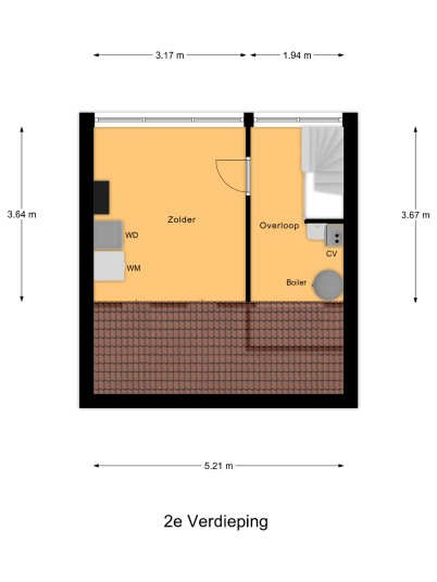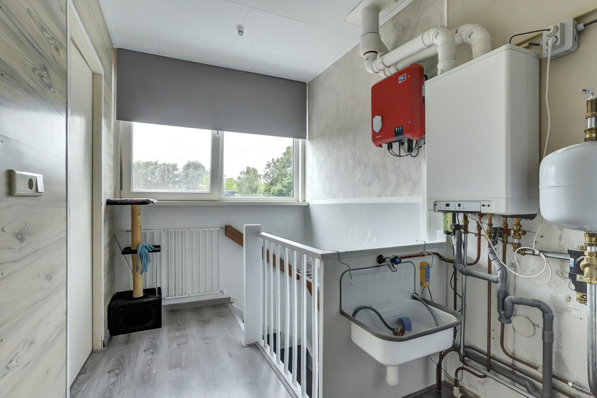 Tweede verdieping: middels een vaste trap is de tweede etage te bereiken waar de voorzolder voorzien is van de standplaats voor de warmtepomp en c.v.-ketel. Tevens is hier een lichte 4e slaapkamer aanwezig waar ook de wasmachineaansluiting gerealiseerd is.