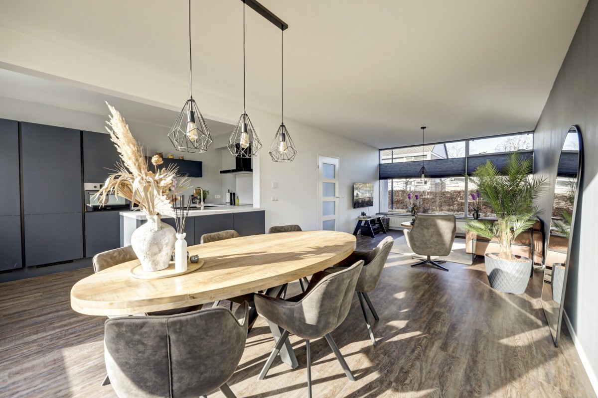 Royale hoekwoning met twee dakkapellen en vijf slaapkamers, gelegen op een ruim perceel van 309 m². De woning ligt op loopafstand van het NS-station en het centrum van Dronten. Achter de woning bevindt zich een speeltuin, bereikbaar via de stoep. De woning is recent voorzien van een grote schuifpui met HR+++ glas aan de achterzijde, wat zorgt voor veel lichtinval en direct contact met de tuin. De moderne keuken beschikt over een spoeleiland en diverse inbouwapparatuur. Daarnaast zijn de beplating en isolatie van de voor- en achtergevel vernieuwd, is de gootbetimmering vervangen en zijn de dakpannen vervangen.
