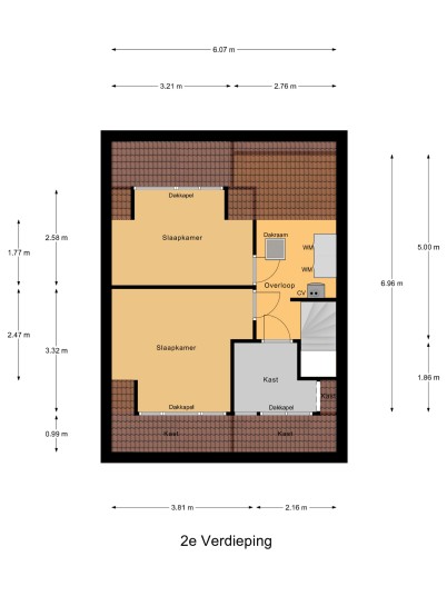 Zolder: bereikbaar via vaste trap. Voorzolder met dakraam, opstelplaats van de cv-ketel en aansluitingen voor wasmachine en droger. Twee slaapkamers, beide voorzien van een dakkapel. Daarnaast een extra bergruimte/kast, eveneens met dakkapel.