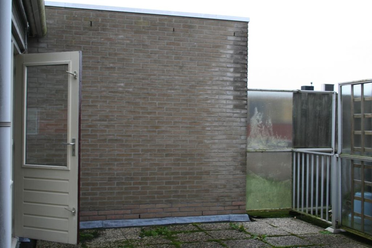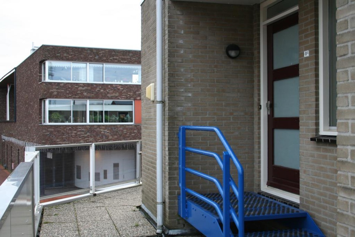 Eerste verdieping: galerij met overdekt entree naar het appartement, hal met garderobe, meterkast, inpandige berging met cv-ketel, badkamer met wastafel, wasmachineaansluiting en douche, 2 ruime slaapkamers, woonkamer met vrij uitzicht en aansluitend de keuken met keukenblok en tevens in de woonkamer de doorgang naar het riante zonneterras op het westen.