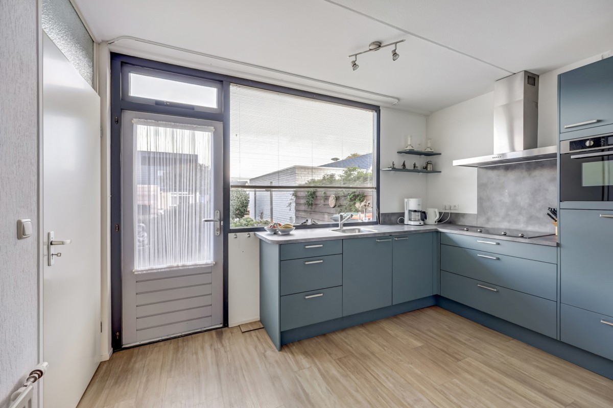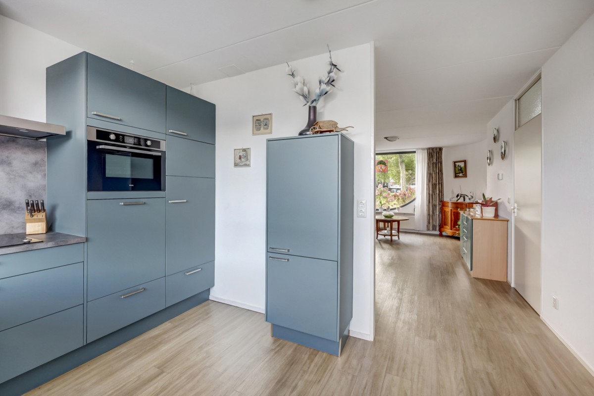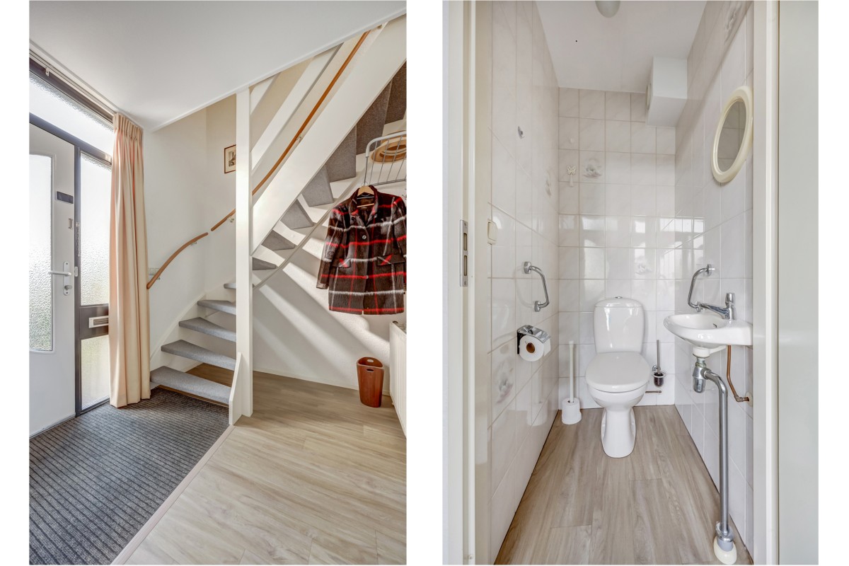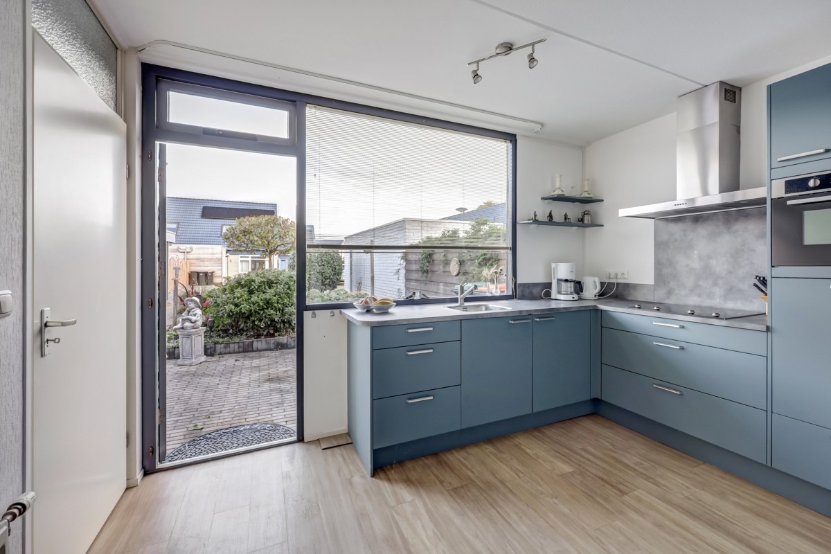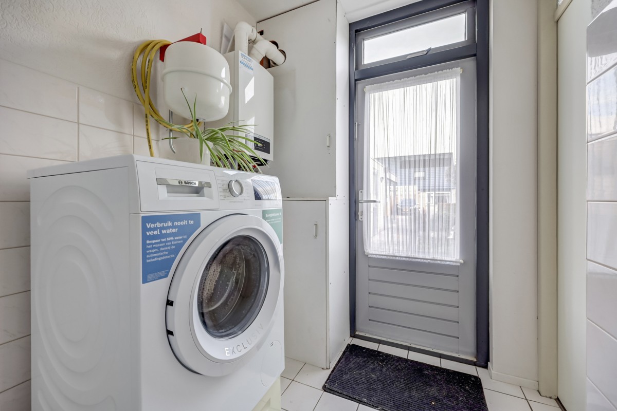 Lees verderVanuit de hal is er toegang tot de lichte woonkamer, de slaapkamer op de begane grond en een separaat toilet. De slaapkamer is direct verbonden met een volledig betegelde badkamer, voorzien van douchehoek, wastafelmeubel en handige badkamerkast. De woonkamer aan de voorzijde biedt vrij uitzicht over openbaar groen en grenst aan een voetpad. De moderne keuken (2019) in hoekopstelling ligt aan de achterzijde en is uitgerust met een Lemans-hoekkast en diverse inbouwapparatuur, waaronder koel-vriescombinatie, vaatwasser op hoogte, combimagnetron, inductiekookplaat en afzuigkap. Vanuit de keuken is er een deur naar de achtertuin en een deur naar de bijkeuken. De bijkeuken is grotendeels voorzien van tegels, beschikt over een opstelplaats voor de wasmachine en de Nefit cv-ketel (2018) en heeft eveneens een deur naar de tuin.