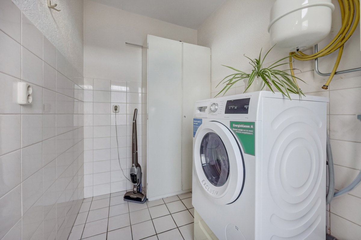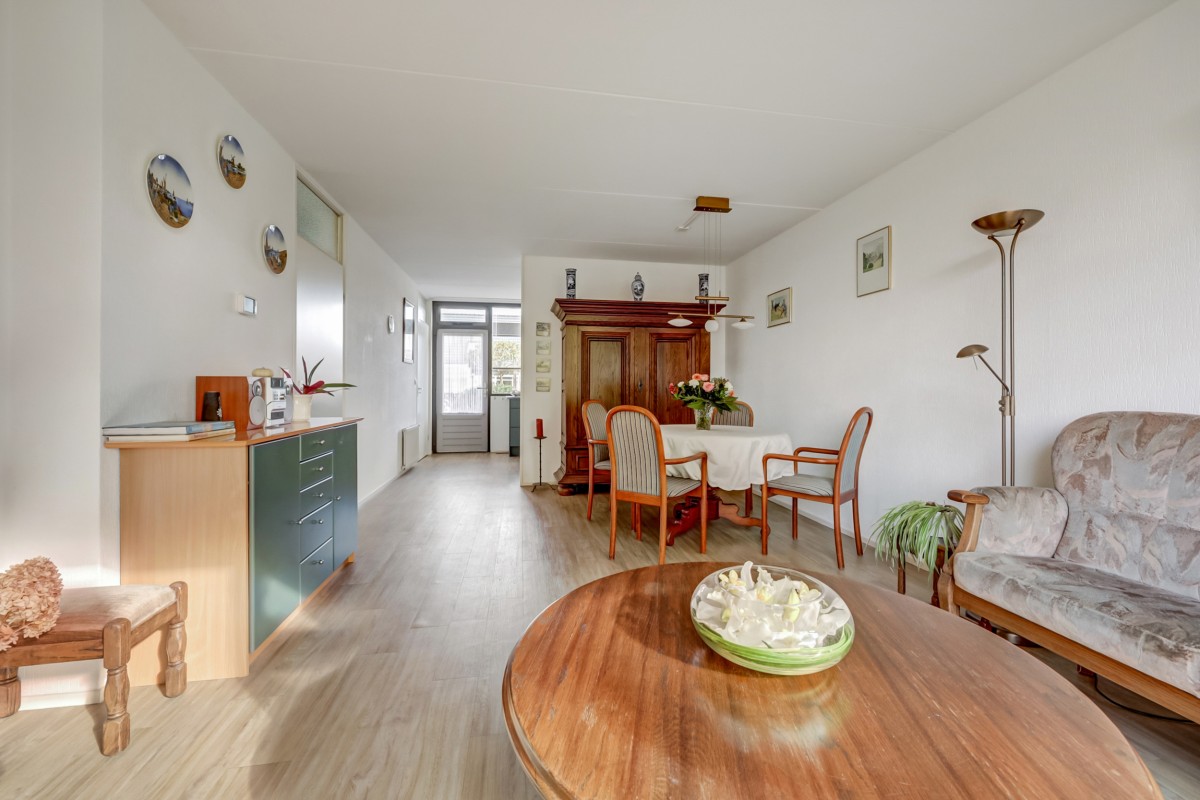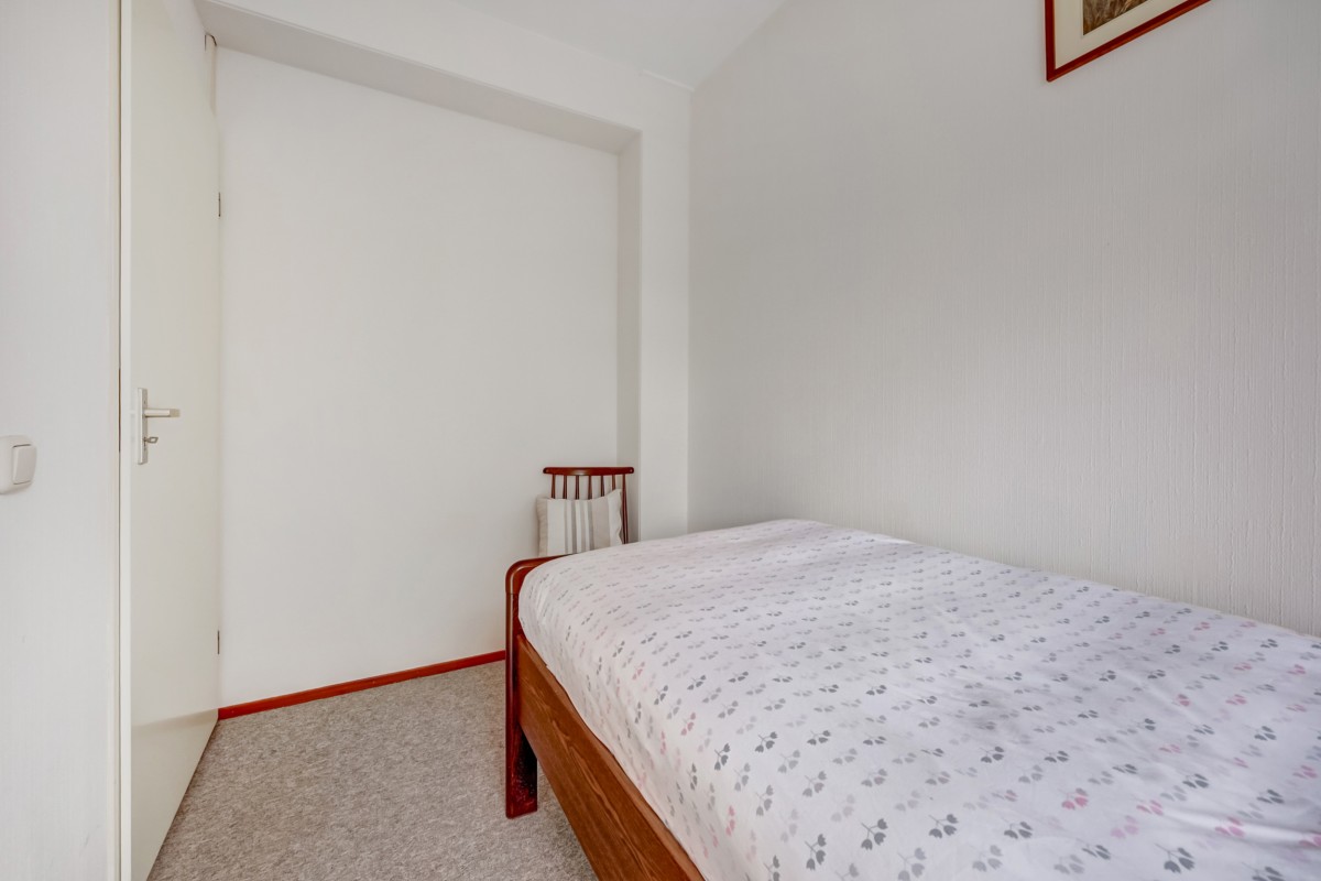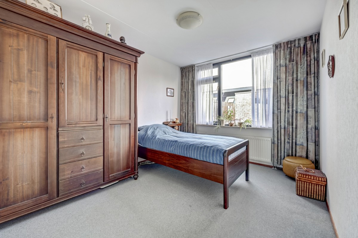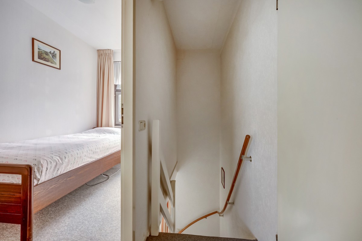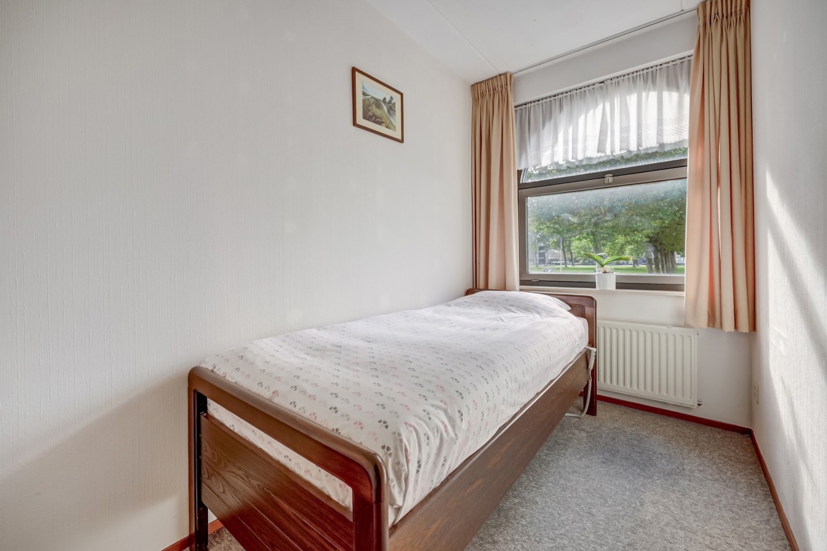 Lees verderVanuit de hal is er toegang tot de lichte woonkamer, de slaapkamer op de begane grond en een separaat toilet. De slaapkamer is direct verbonden met een volledig betegelde badkamer, voorzien van douchehoek, wastafelmeubel en handige badkamerkast. De woonkamer aan de voorzijde biedt vrij uitzicht over openbaar groen en grenst aan een voetpad. De moderne keuken (2019) in hoekopstelling ligt aan de achterzijde en is uitgerust met een Lemans-hoekkast en diverse inbouwapparatuur, waaronder koel-vriescombinatie, vaatwasser op hoogte, combimagnetron, inductiekookplaat en afzuigkap. Vanuit de keuken is er een deur naar de achtertuin en een deur naar de bijkeuken. De bijkeuken is grotendeels voorzien van tegels, beschikt over een opstelplaats voor de wasmachine en de Nefit cv-ketel (2018) en heeft eveneens een deur naar de tuin.