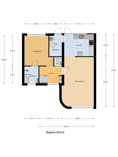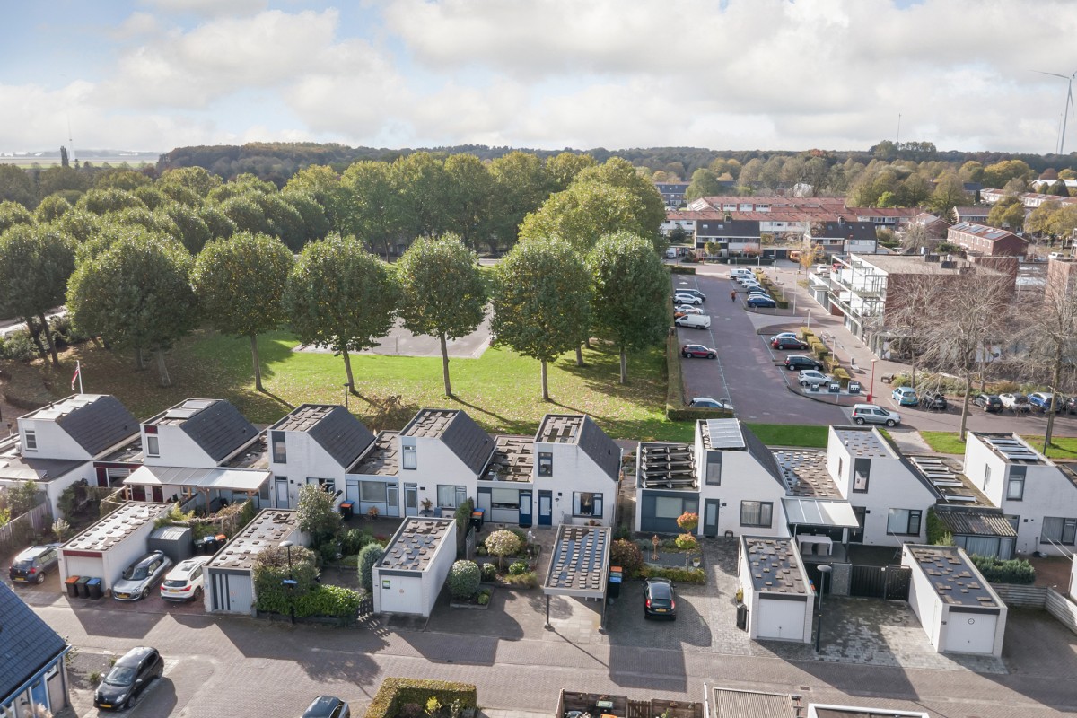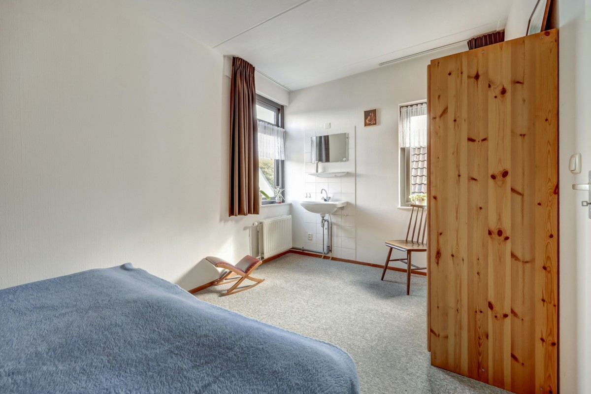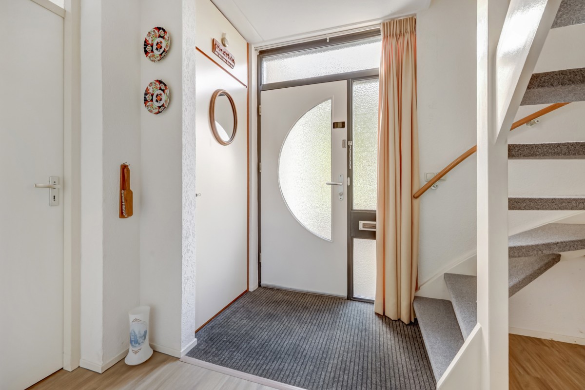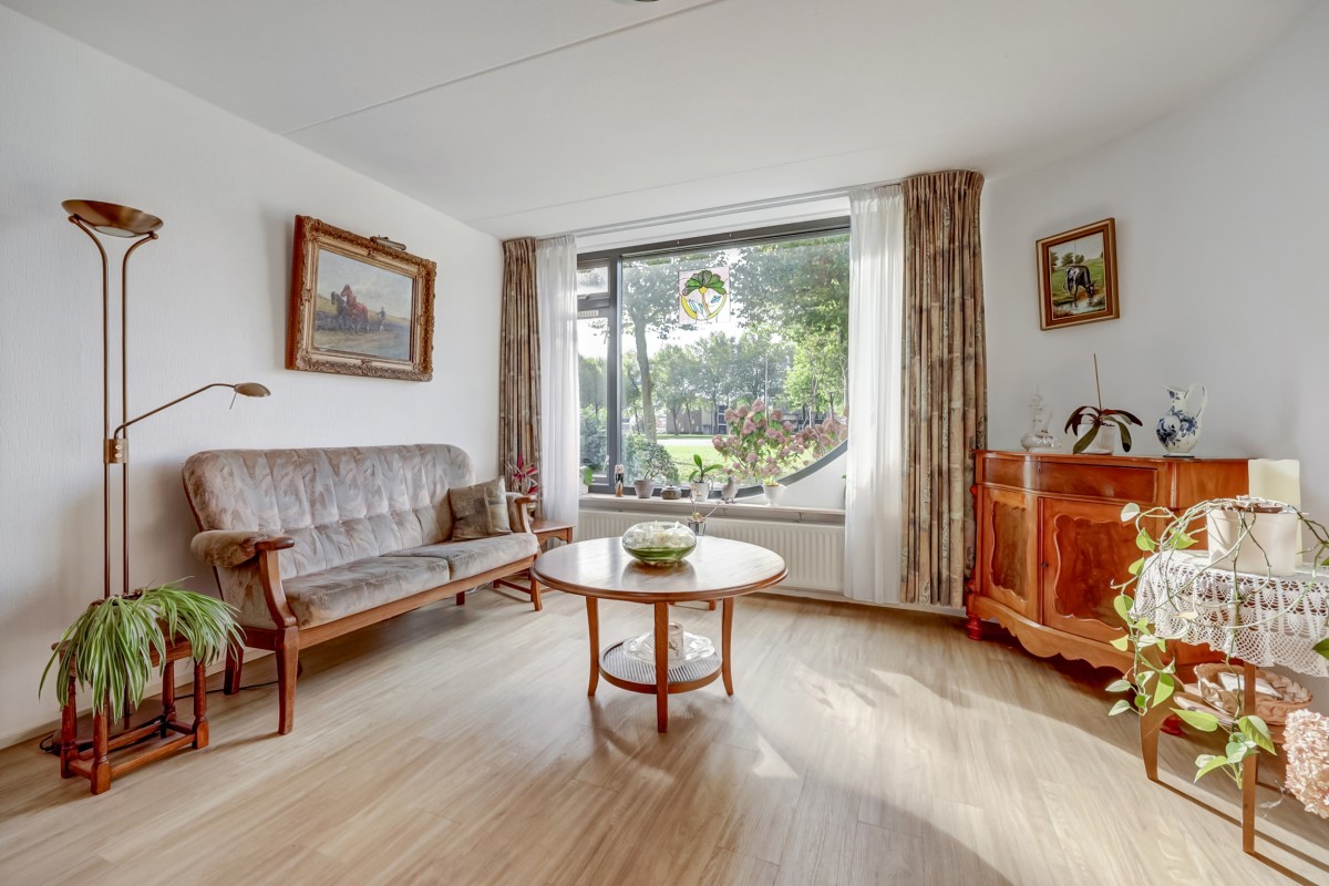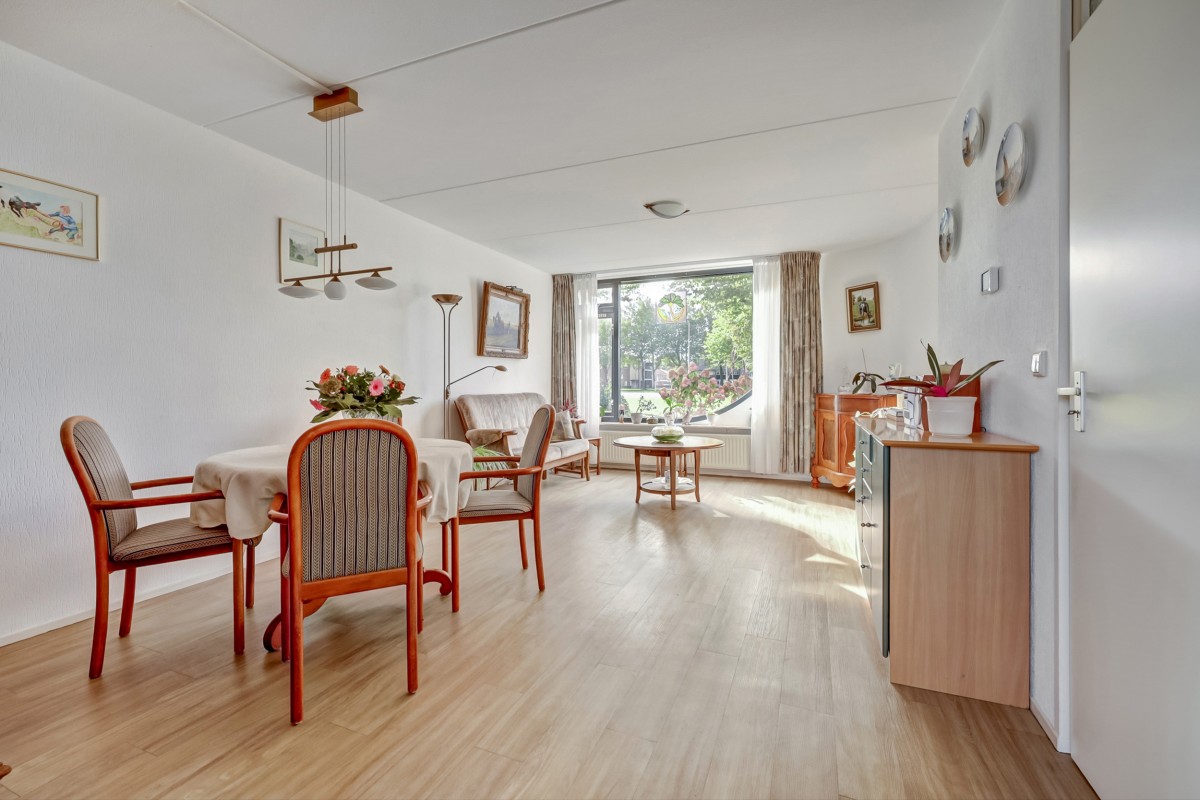 Lees verderVanuit de hal is er toegang tot de lichte woonkamer, de slaapkamer op de begane grond en een separaat toilet. De slaapkamer is direct verbonden met een volledig betegelde badkamer, voorzien van douchehoek, wastafelmeubel en handige badkamerkast. De woonkamer aan de voorzijde biedt vrij uitzicht over openbaar groen en grenst aan een voetpad. De moderne keuken (2019) in hoekopstelling ligt aan de achterzijde en is uitgerust met een Lemans-hoekkast en diverse inbouwapparatuur, waaronder koel-vriescombinatie, vaatwasser op hoogte, combimagnetron, inductiekookplaat en afzuigkap. Vanuit de keuken is er een deur naar de achtertuin en een deur naar de bijkeuken. De bijkeuken is grotendeels voorzien van tegels, beschikt over een opstelplaats voor de wasmachine en de Nefit cv-ketel (2018) en heeft eveneens een deur naar de tuin.