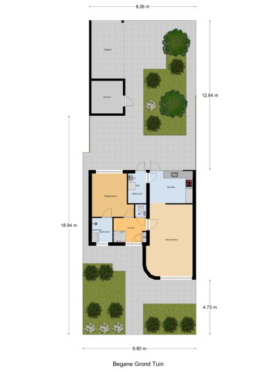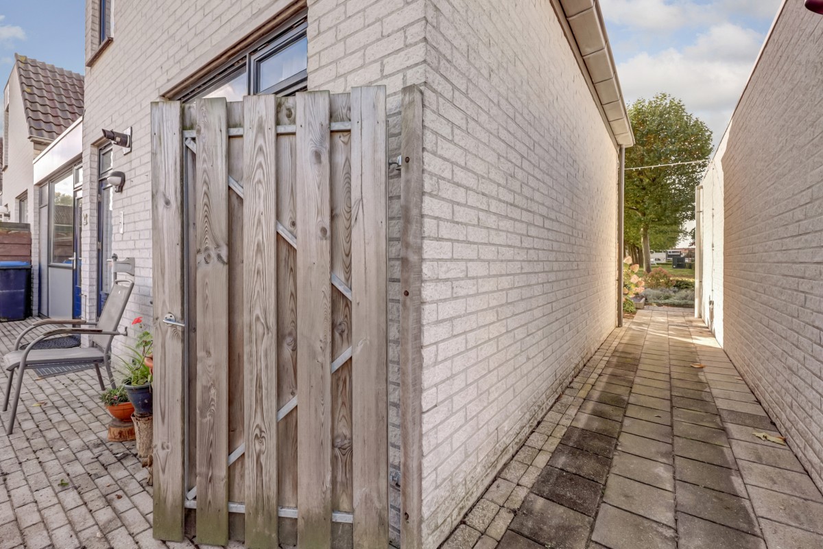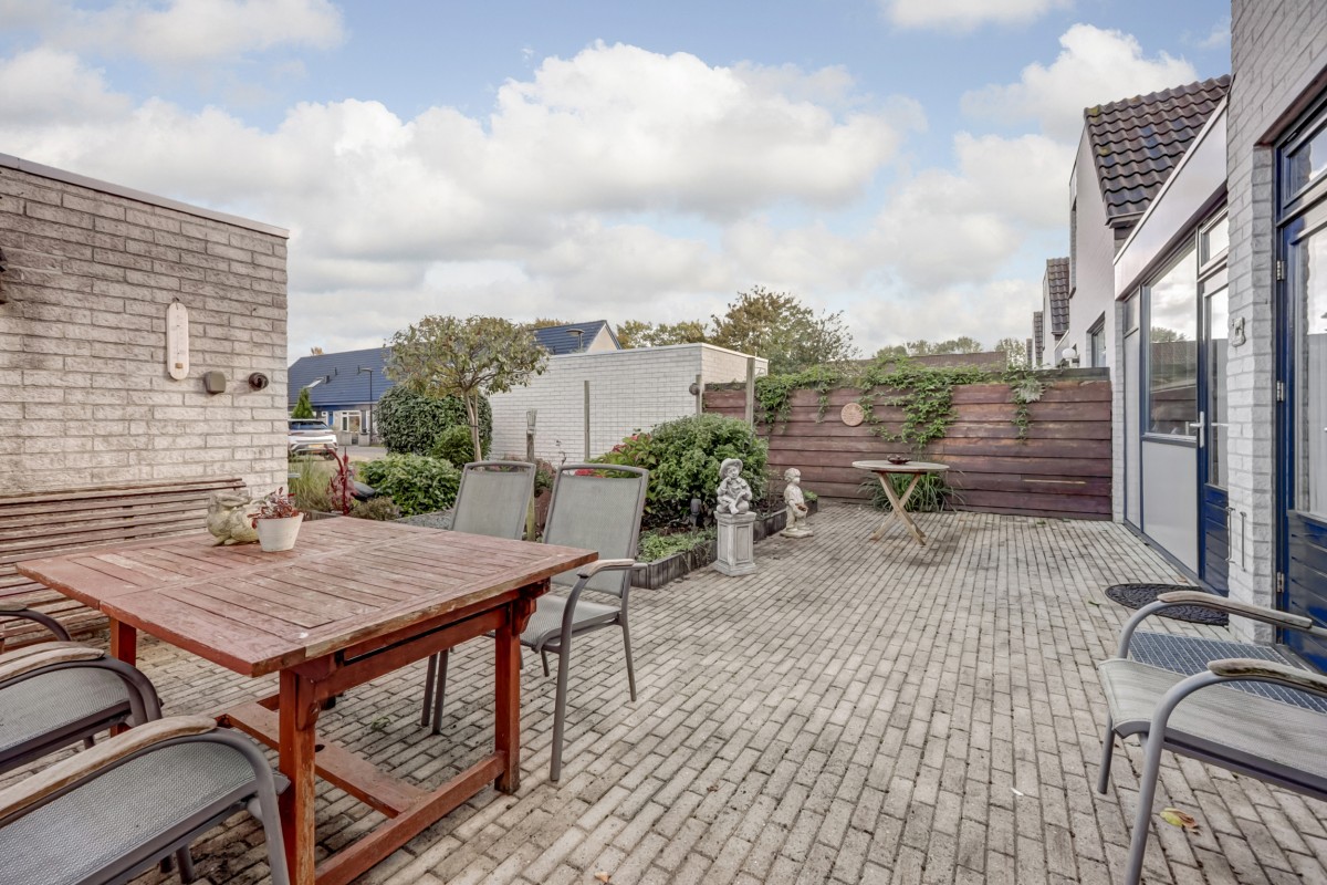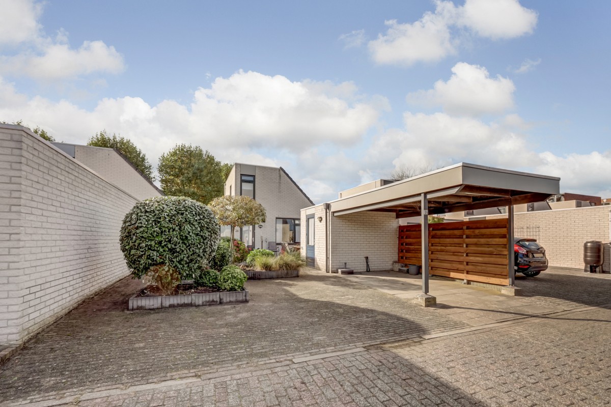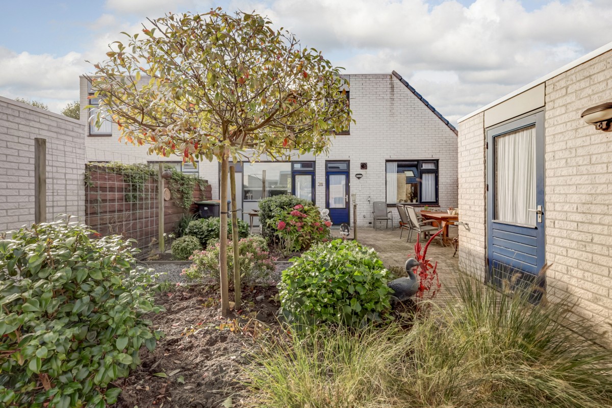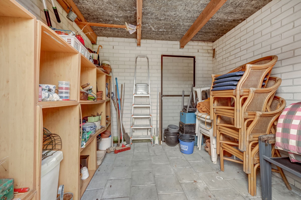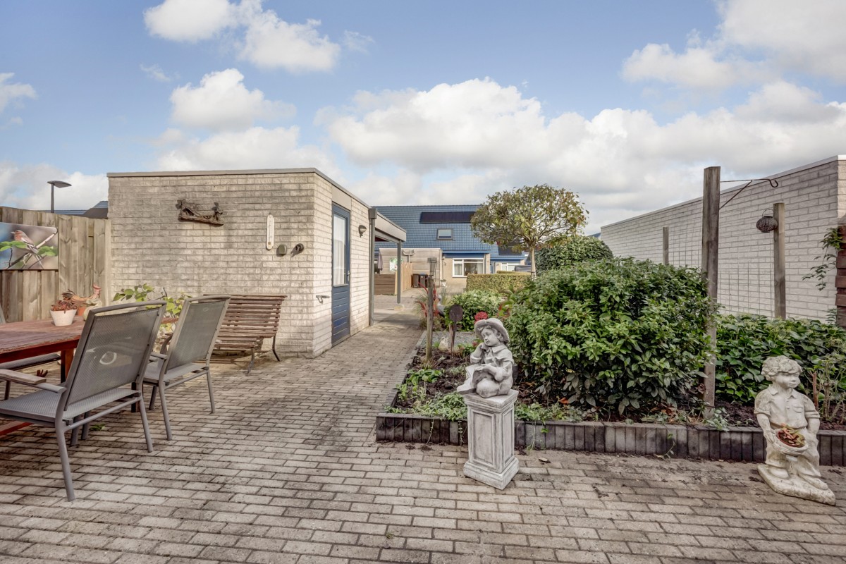 Tuin: De woning beschikt over een verzorgde voortuin met beplanting, bestrating en grind, ideaal voor een gezellig zitje in de zon. De achtertuin is bereikbaar via het achterom langs de woning en biedt een terras, diverse beplanting, parkeerruimte en carport, waardoor er plaats is voor meerdere voertuigen of een camper/caravan. Aan de achterzijde staat een praktische stenen berging, ideaal voor tuinmaterialen of fietsen.