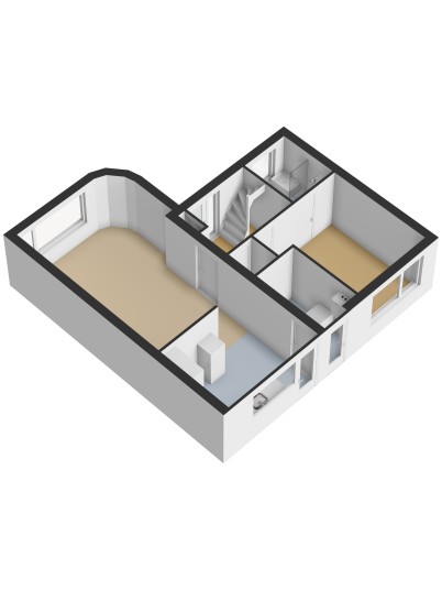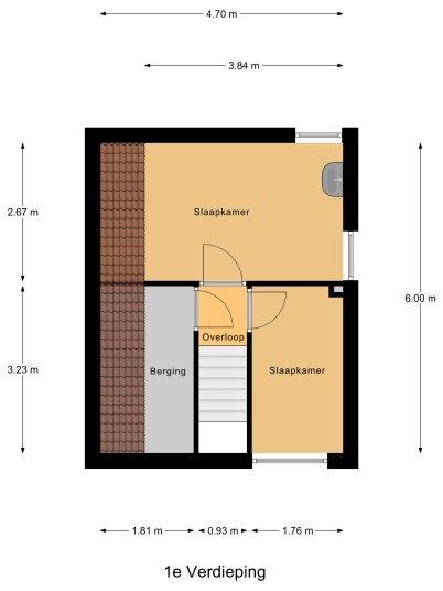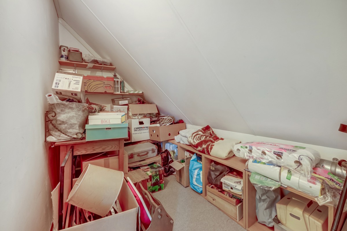 Verdieping: Overloop met toegang tot twee slaapkamers en een separate, ruime bergkast met opstelplaats voor de mechanische ventilatie. De slaapkamer aan de voorzijde is ideaal als hobbyruimte of thuiswerkplek. De slaapkamer aan de achterzijde is ruim en licht, ideaal als master- of kinderslaapkamer, voorzien van wastafel.