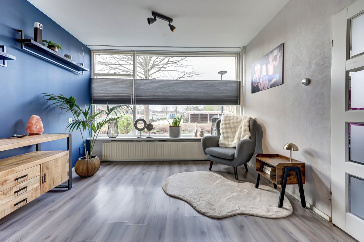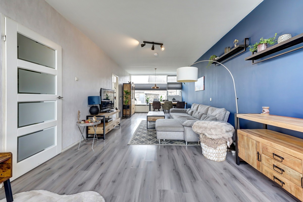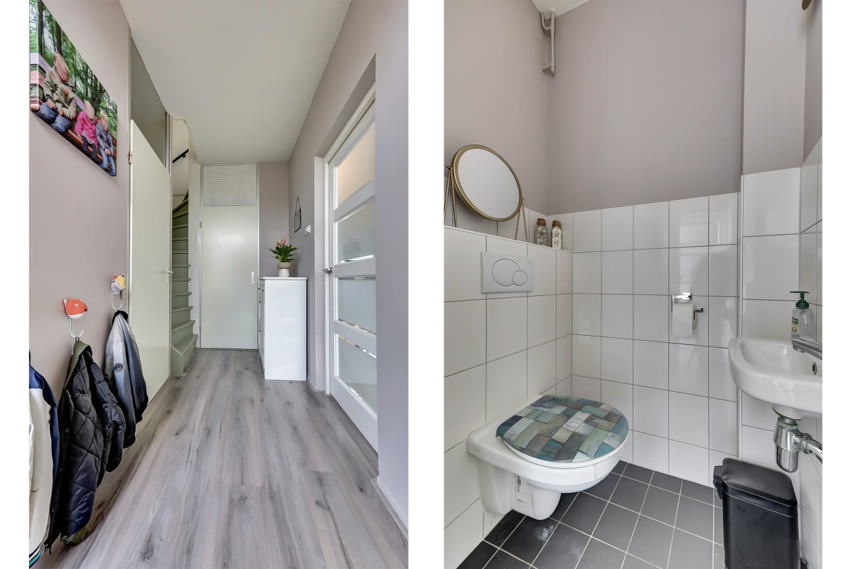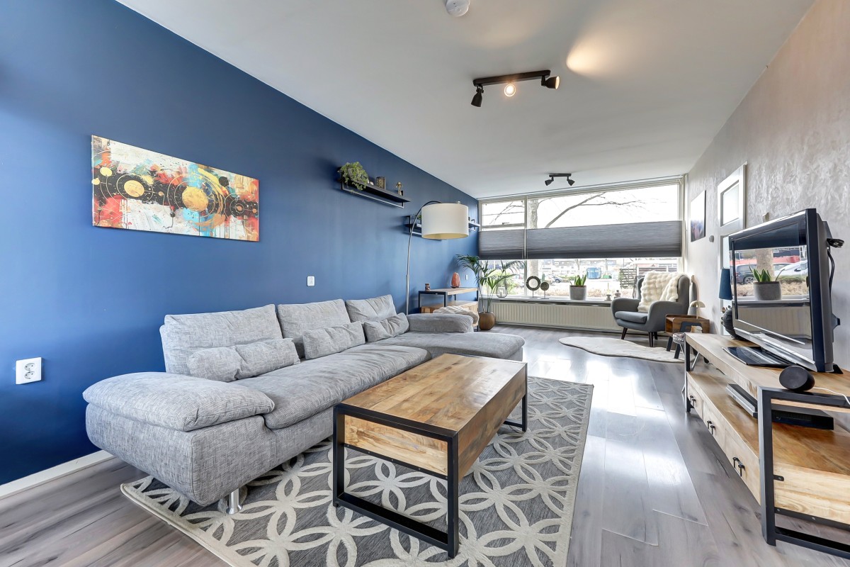Via de entree kom je in de hal met vernieuwde meterkast, hangend toilet met fonteintje, provisiekast en trapopgang. De lichte doorzonwoonkamer zorgt dankzij de grote ramen voor een prettige sfeer en veel daglicht.