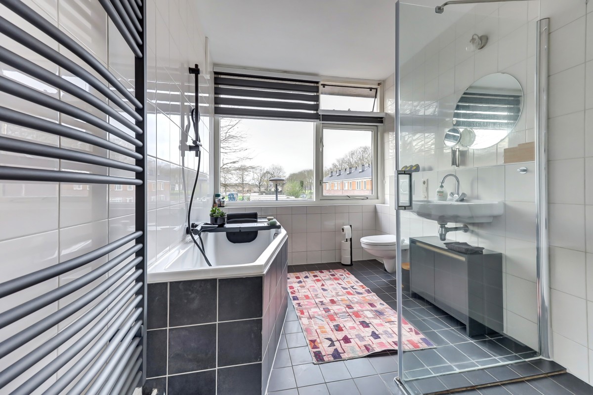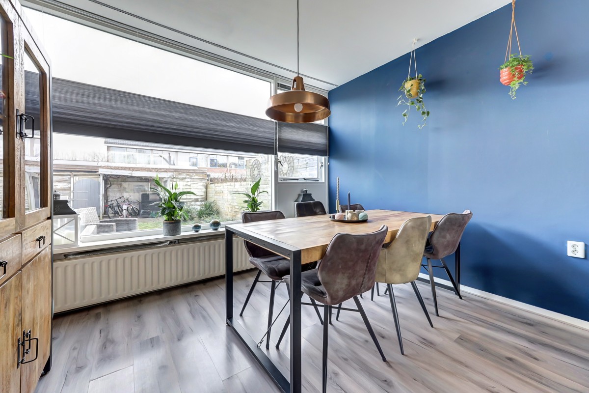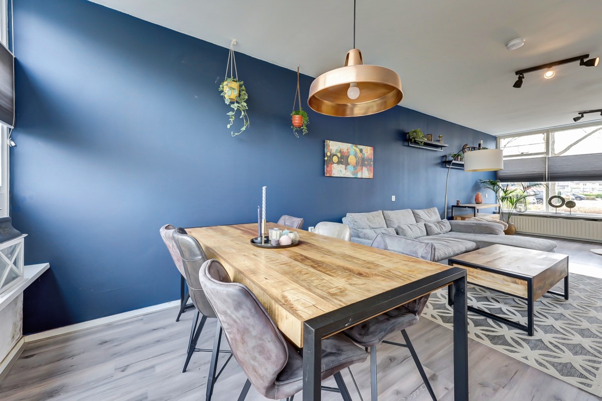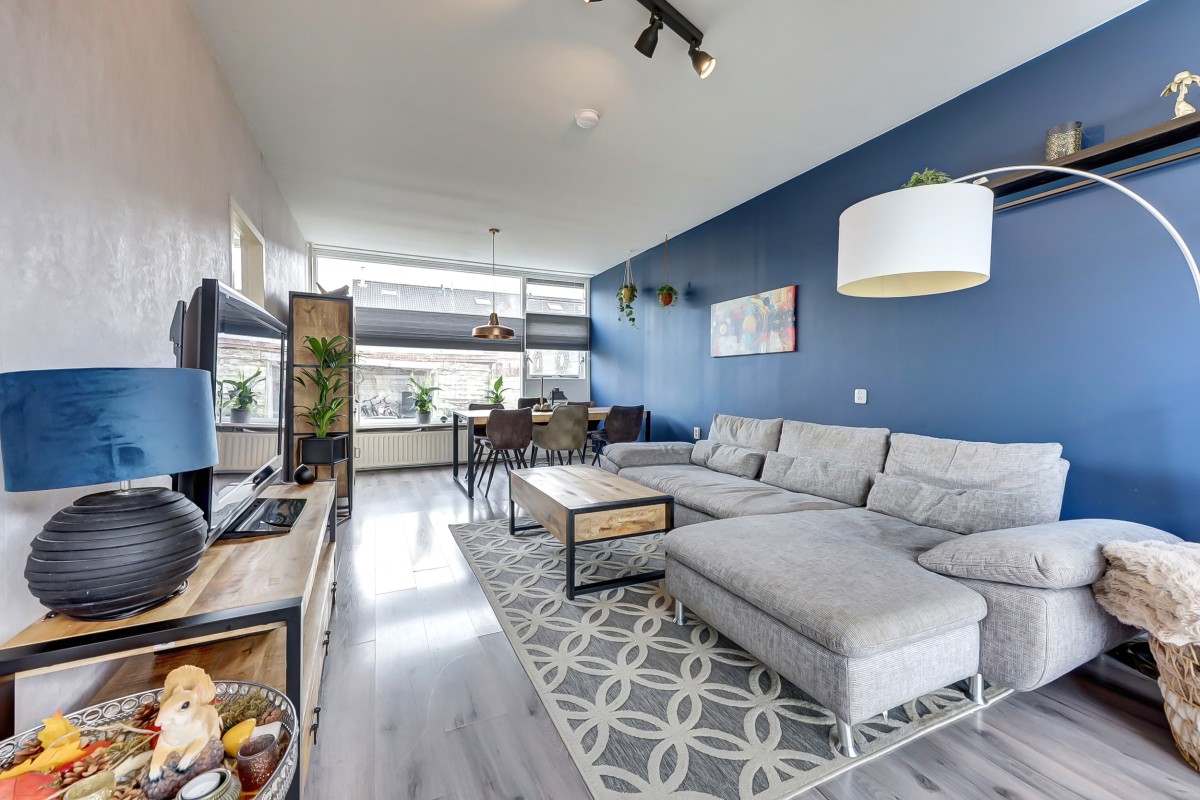 Via de entree kom je in de hal met vernieuwde meterkast, hangend toilet met fonteintje, provisiekast en trapopgang. De lichte doorzonwoonkamer zorgt dankzij de grote ramen voor een prettige sfeer en veel daglicht.