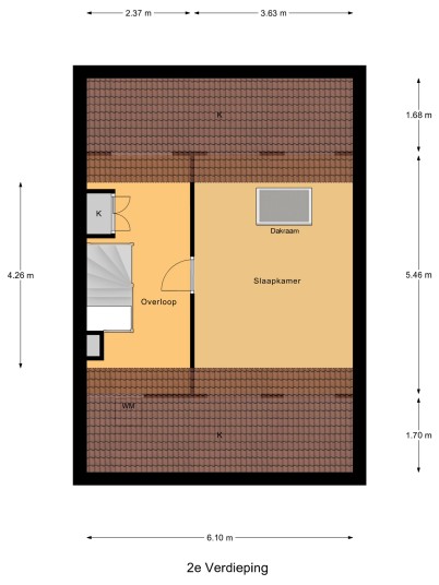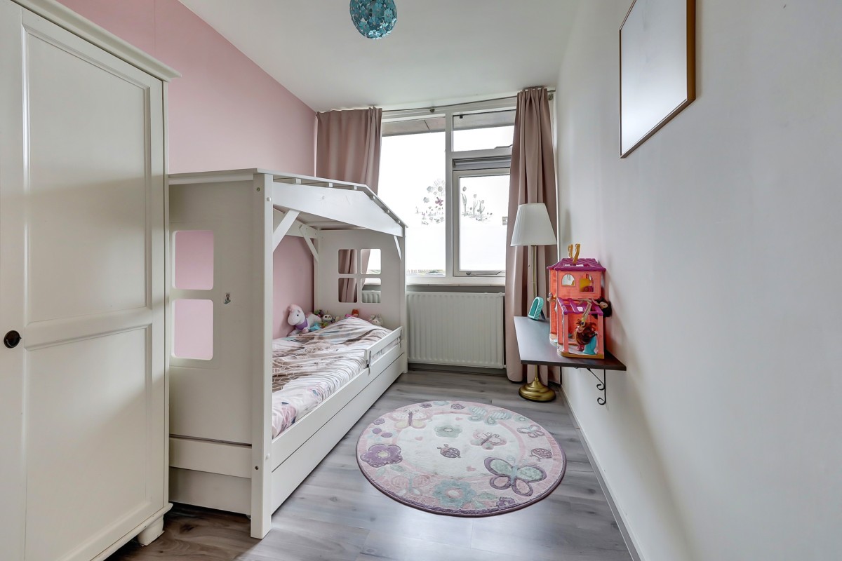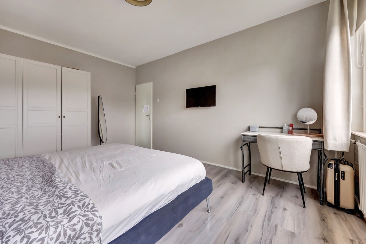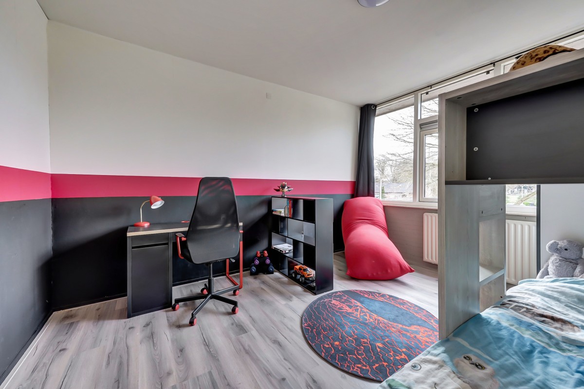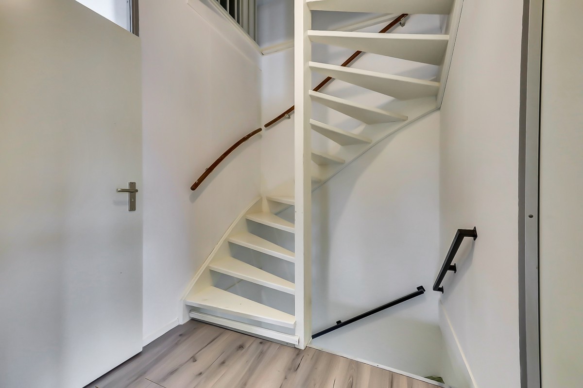 De vaste trap brengt je naar de tweede verdieping. Op de voorzolder vind je de aansluitingen voor de wasmachine, de mechanische ventilatie en de cv-ketel, die netjes is weggewerkt in een kast. Daarnaast is er een royale vierde slaapkamer met dakraam.