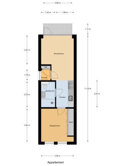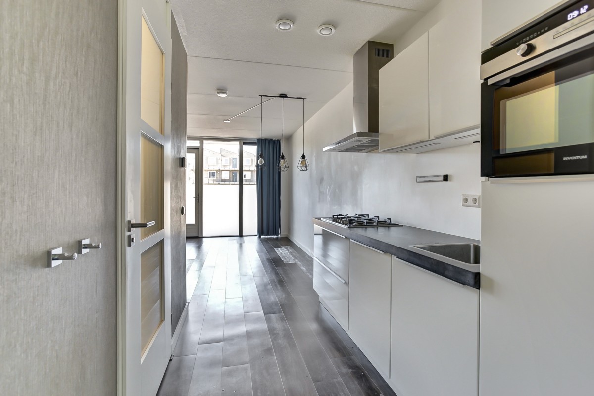 Lees verderAppartement: entree, woonkamer met deur naar zonneterras welke op het zuiden gesitueerd is, moderne keuken voorzien van ingebouwde apparatuur. De moderne badkamer is voorzien van een hangcloset, wasmachineaansluiting, wastafel en douche. In een bergkast is de c.v.-ketel en mechanische ventilatie gesitueerd. Aan de achterzijde is een ruime slaapkamer gelegen van een goede maatvoering.