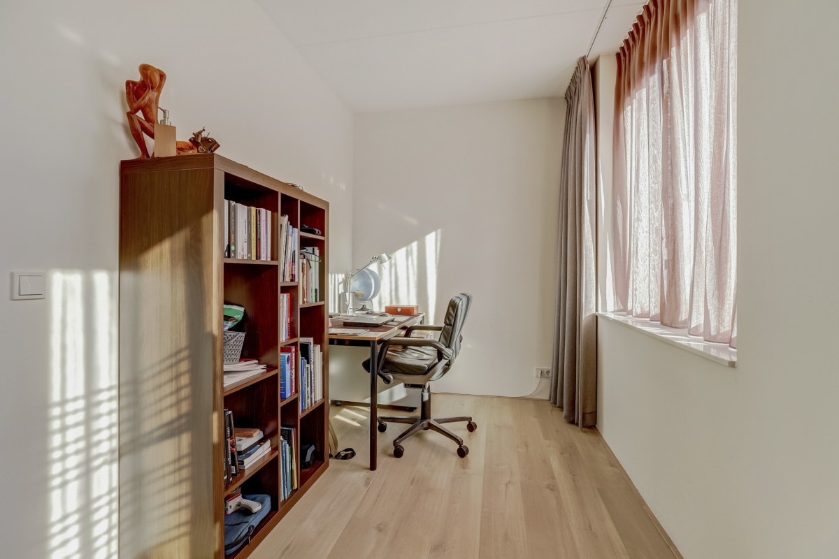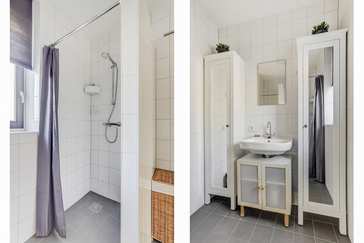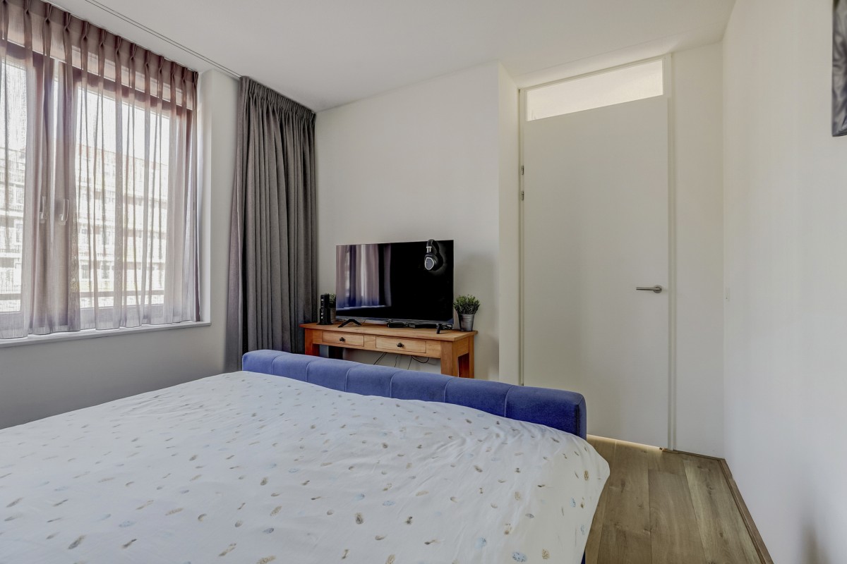 De woonkamer is licht en ruim en beschikt over grote, te openen ramen met een Frans balkon. Vanuit de woonkamer is er toegang tot het ruime balkon, ideaal voor buiten zitten. De moderne toiletruimte is voorzien van een hangcloset en fonteintje. De volledig betegelde badkamer beschikt over een inloopdouche, betegelde scheidingswand en wastafel. Het appartement heeft drie slaapkamers, voldoende ruimte voor logees of een thuiswerkplek.