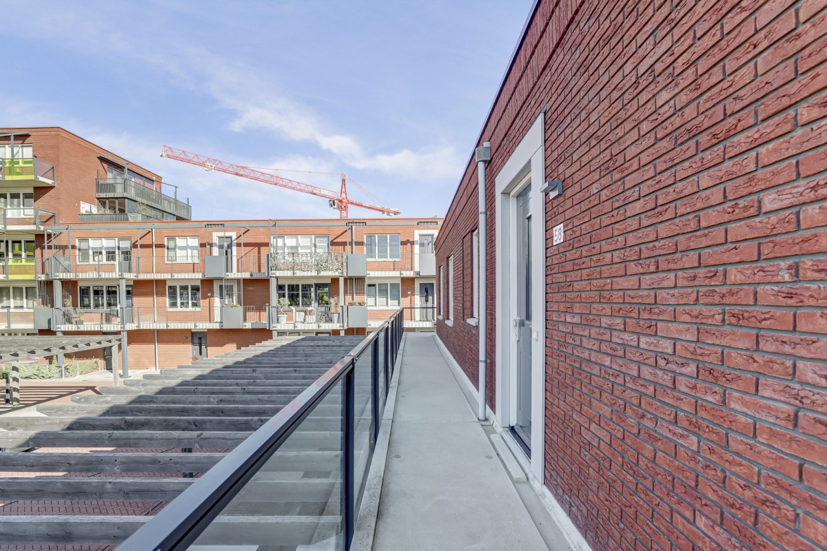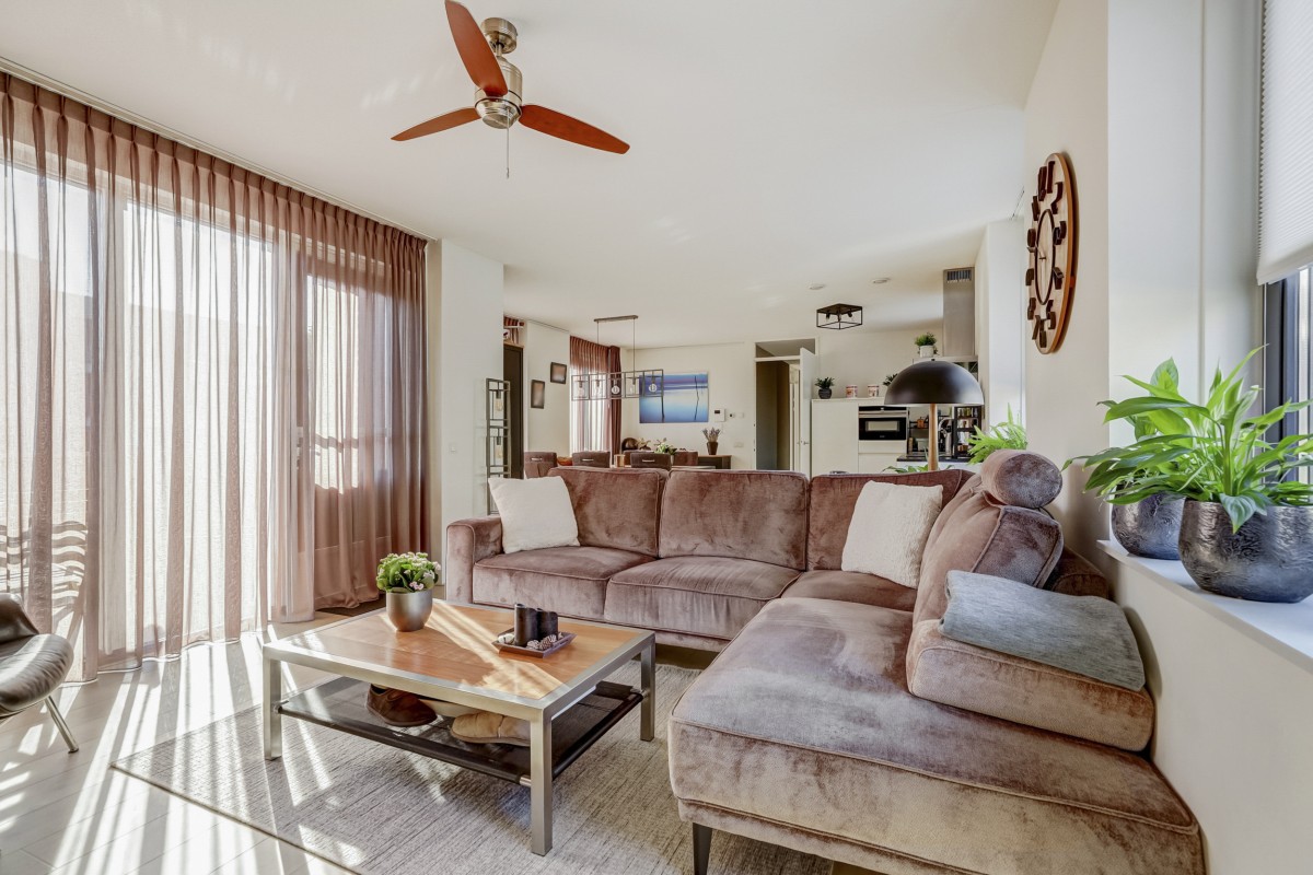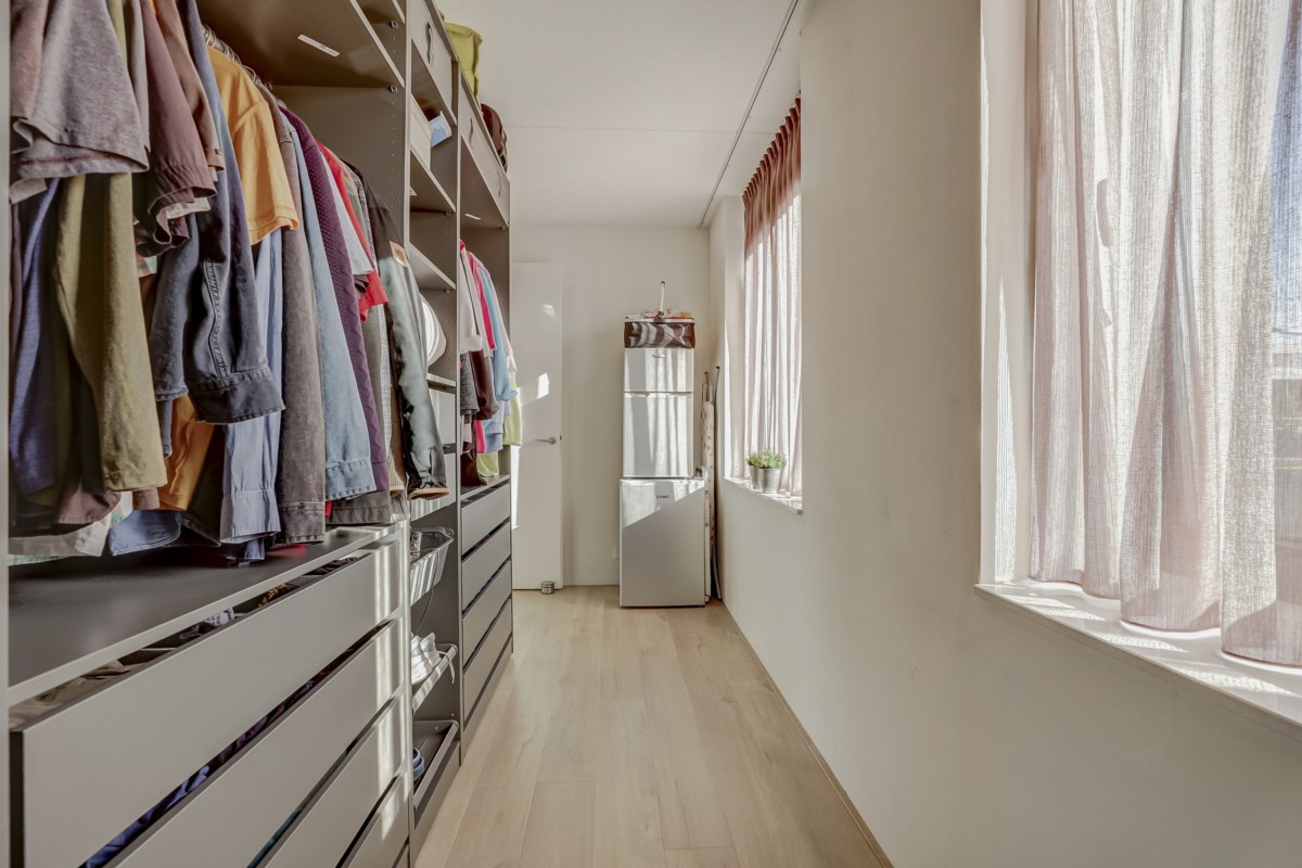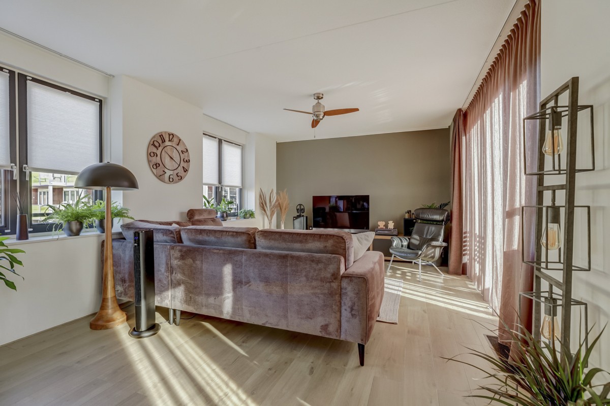 De woonkamer is licht en ruim en beschikt over grote, te openen ramen met een Frans balkon. Vanuit de woonkamer is er toegang tot het ruime balkon, ideaal voor buiten zitten. De moderne toiletruimte is voorzien van een hangcloset en fonteintje. De volledig betegelde badkamer beschikt over een inloopdouche, betegelde scheidingswand en wastafel. Het appartement heeft drie slaapkamers, voldoende ruimte voor logees of een thuiswerkplek.