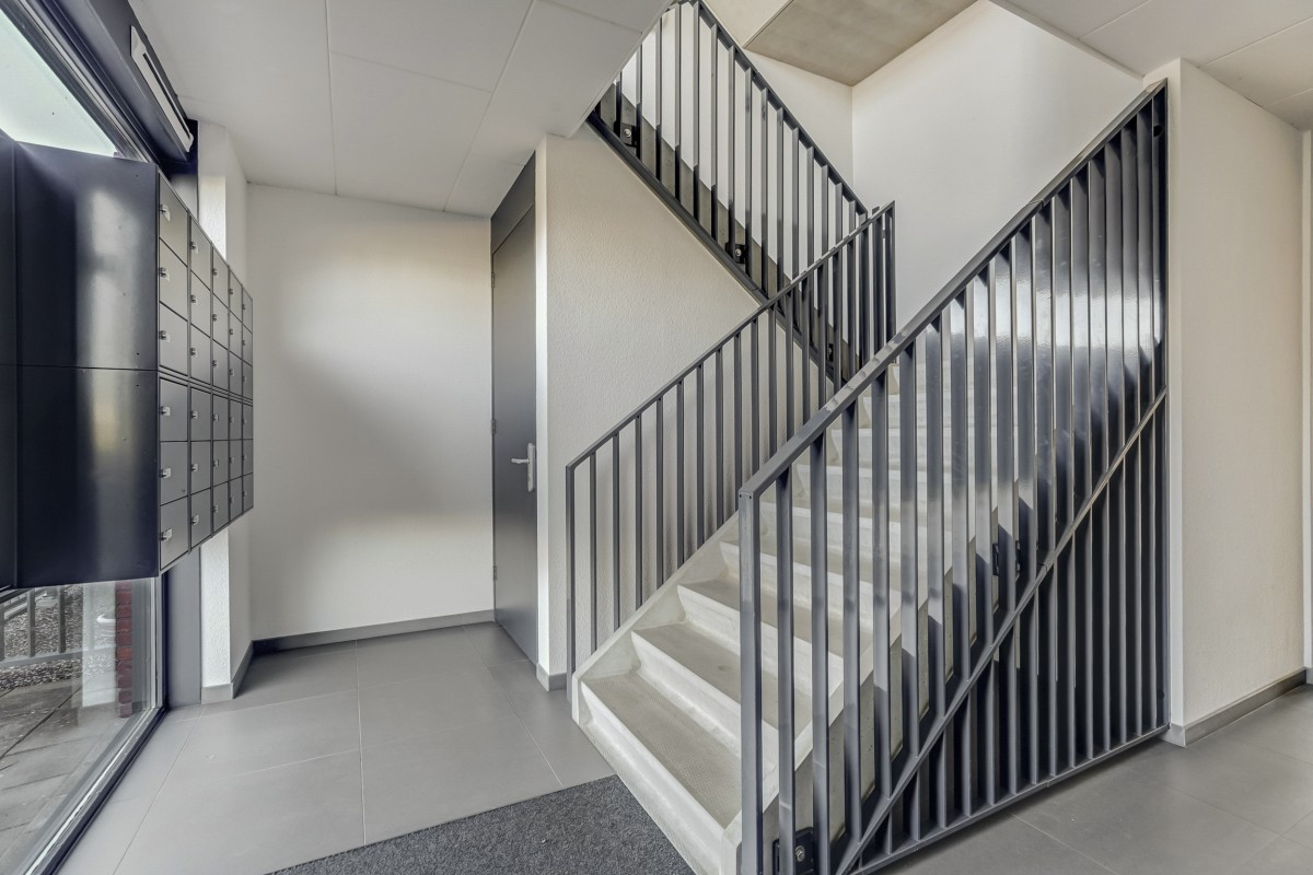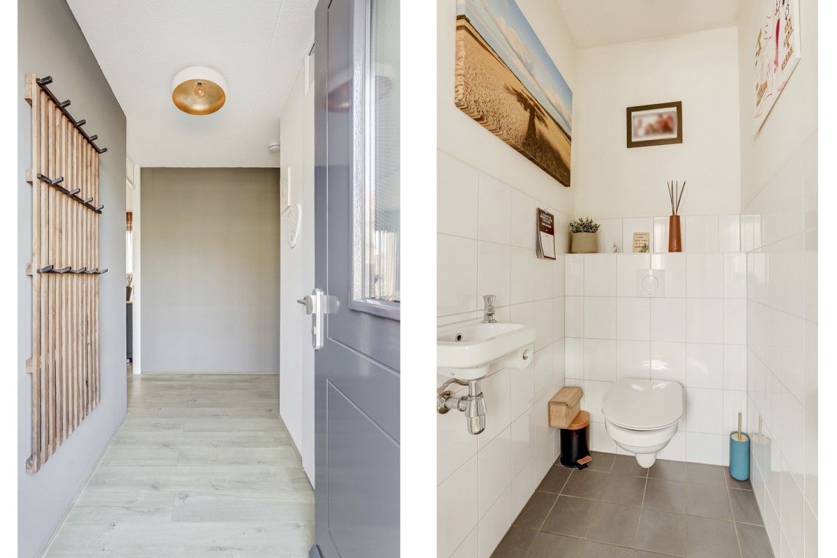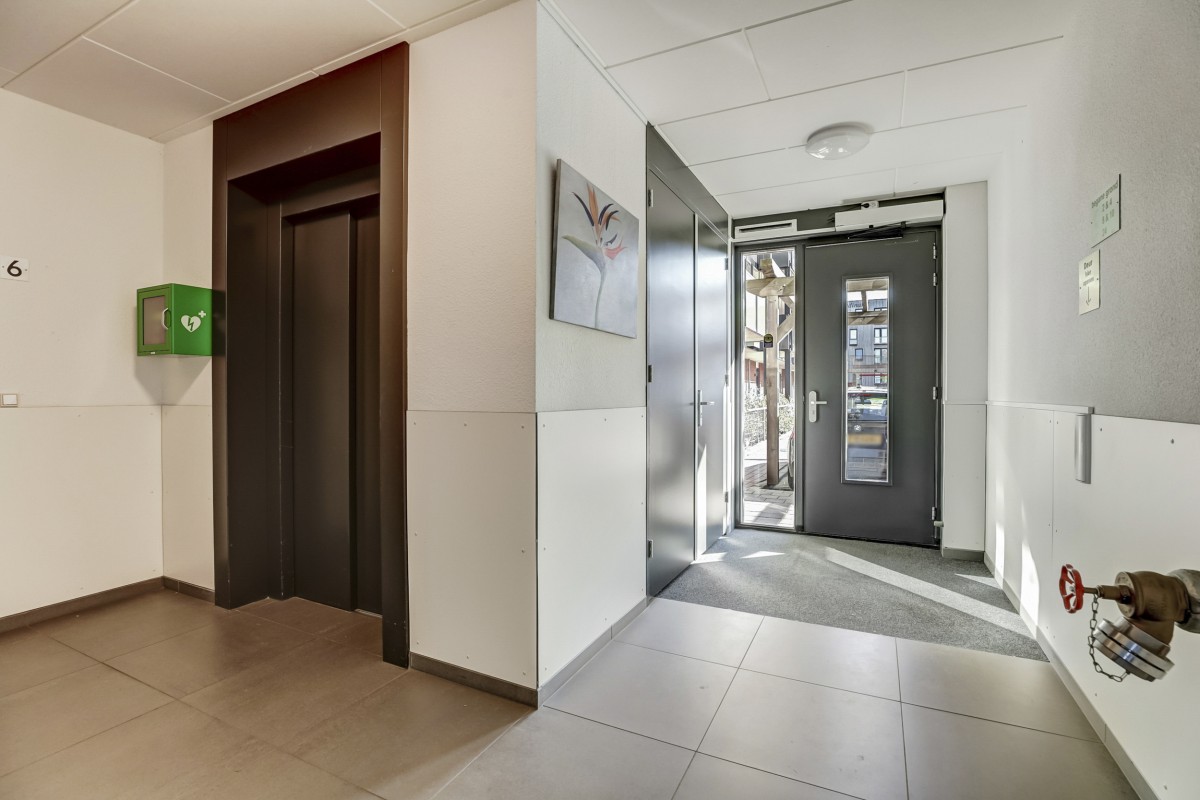 Via een beschut trappenhuis of met de lift bereikt u de corridor die toegang biedt tot het appartement. De entree geeft toegang tot de hal, meterkast en wasruimte.