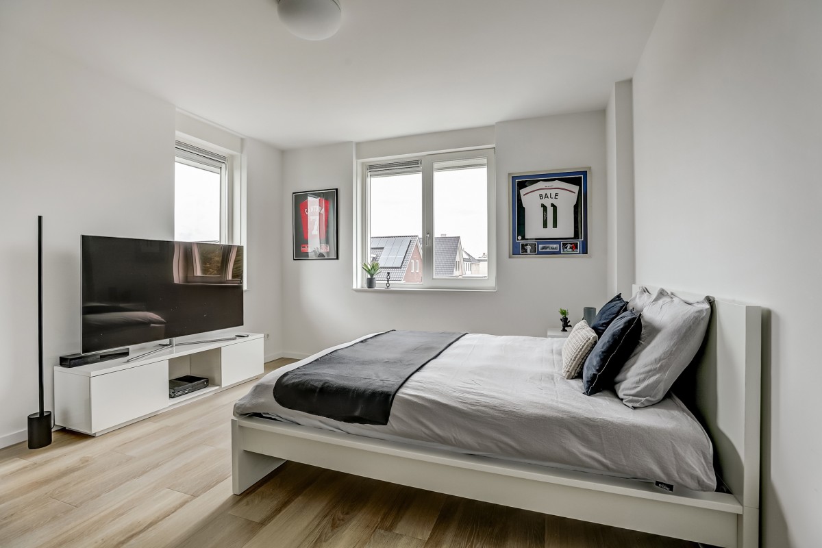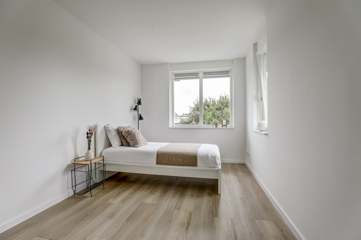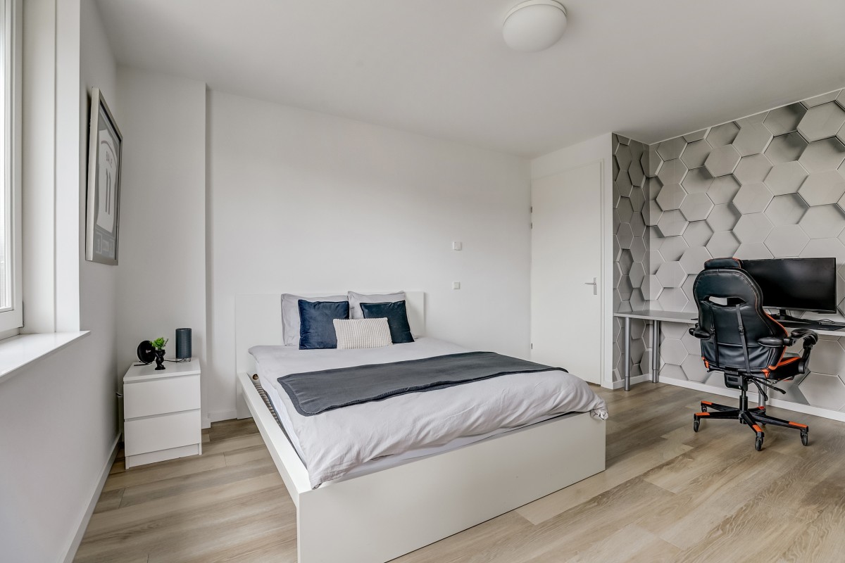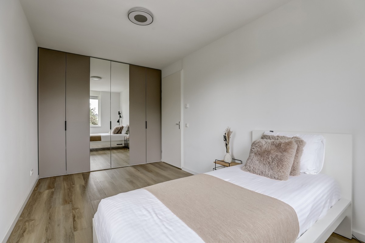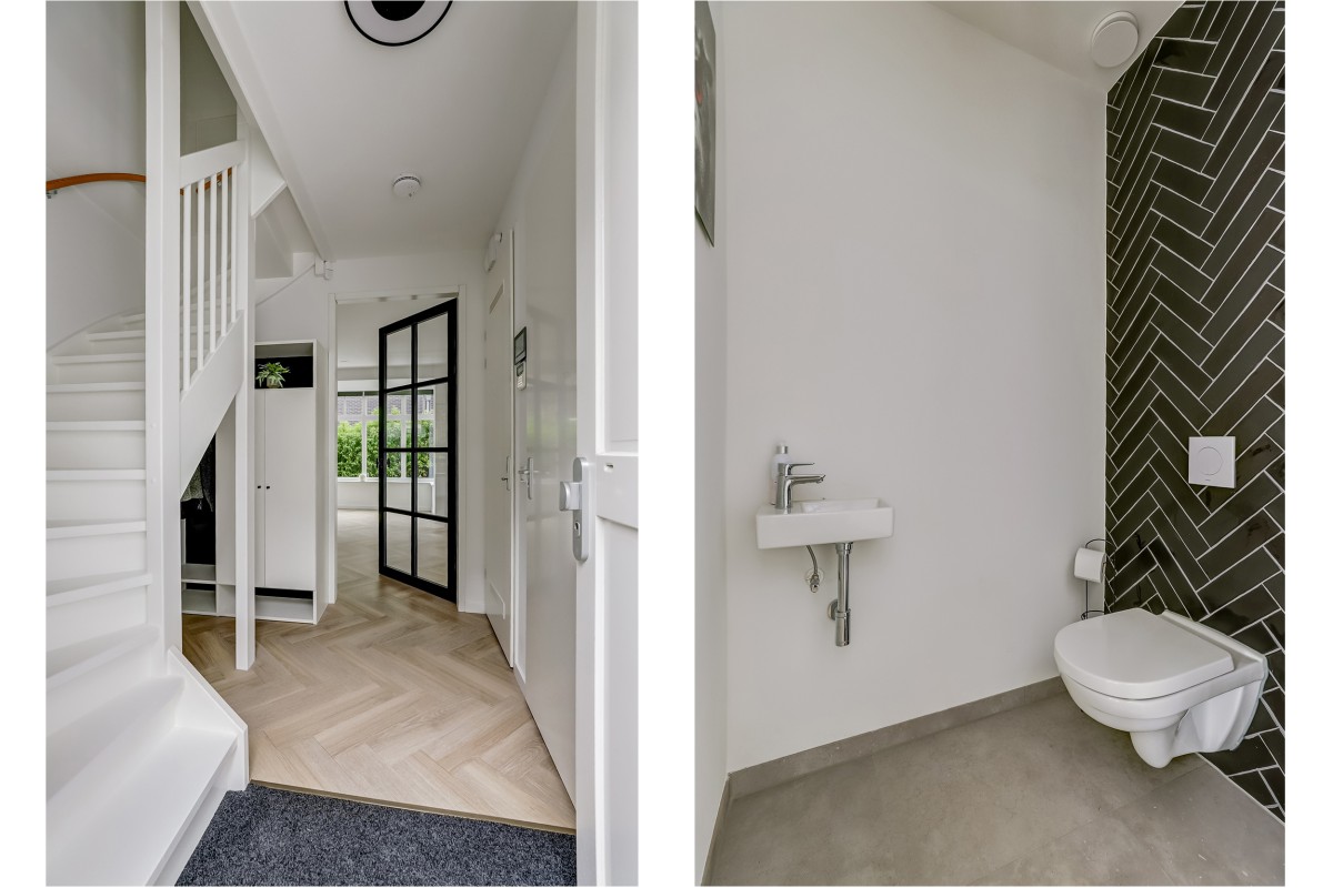 Eerste verdieping: vaste dichte trap naar de overloop met aansluitend drie slaapkamers en de luxe badkamer voorzien van een grote inloopdouche, meubel met dubbele wastafel, vloerverwarming, 2e hangcloset en een designradiator. De slaapkamers zijn riant van maatvoering en bieden alle drie door de vele grote ramen veel licht. Het trappenhuis is professioneel afgesloten en tevens voorzien van een kast. Ook deze verdieping is geheel voorzien van vloerverwarming.