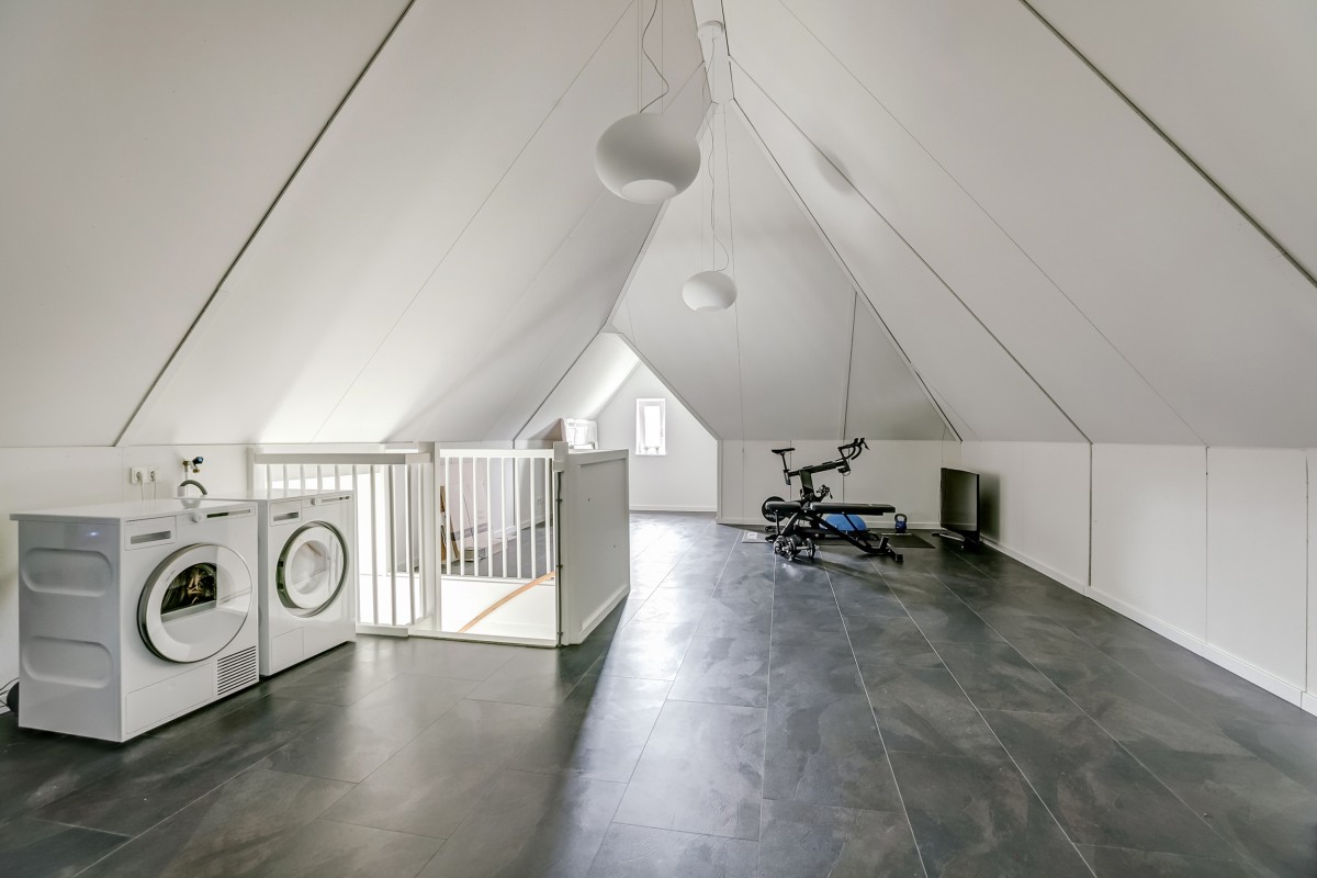 Tweede verdieping: vast trap naar de zolderverdieping welke een mooie hoogtewerking heeft en rondom knieschoten berging bieden. Mede door de opbouw aan de voorzijde met gevelraam, geeft deze verdieping de mogelijkheid om 2 extra slaapkamers te realiseren. Aan de achterzijde zijn de warmtepomp, omvormers en was-apparatuur opgesteld.
