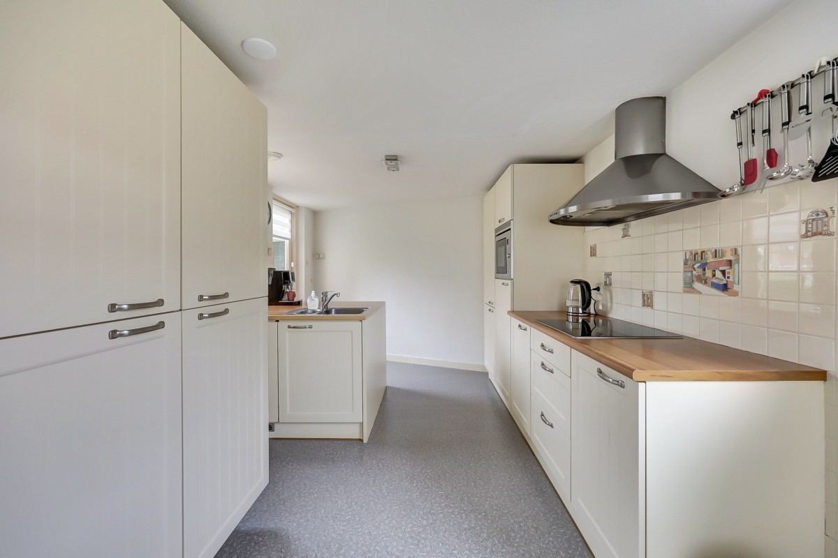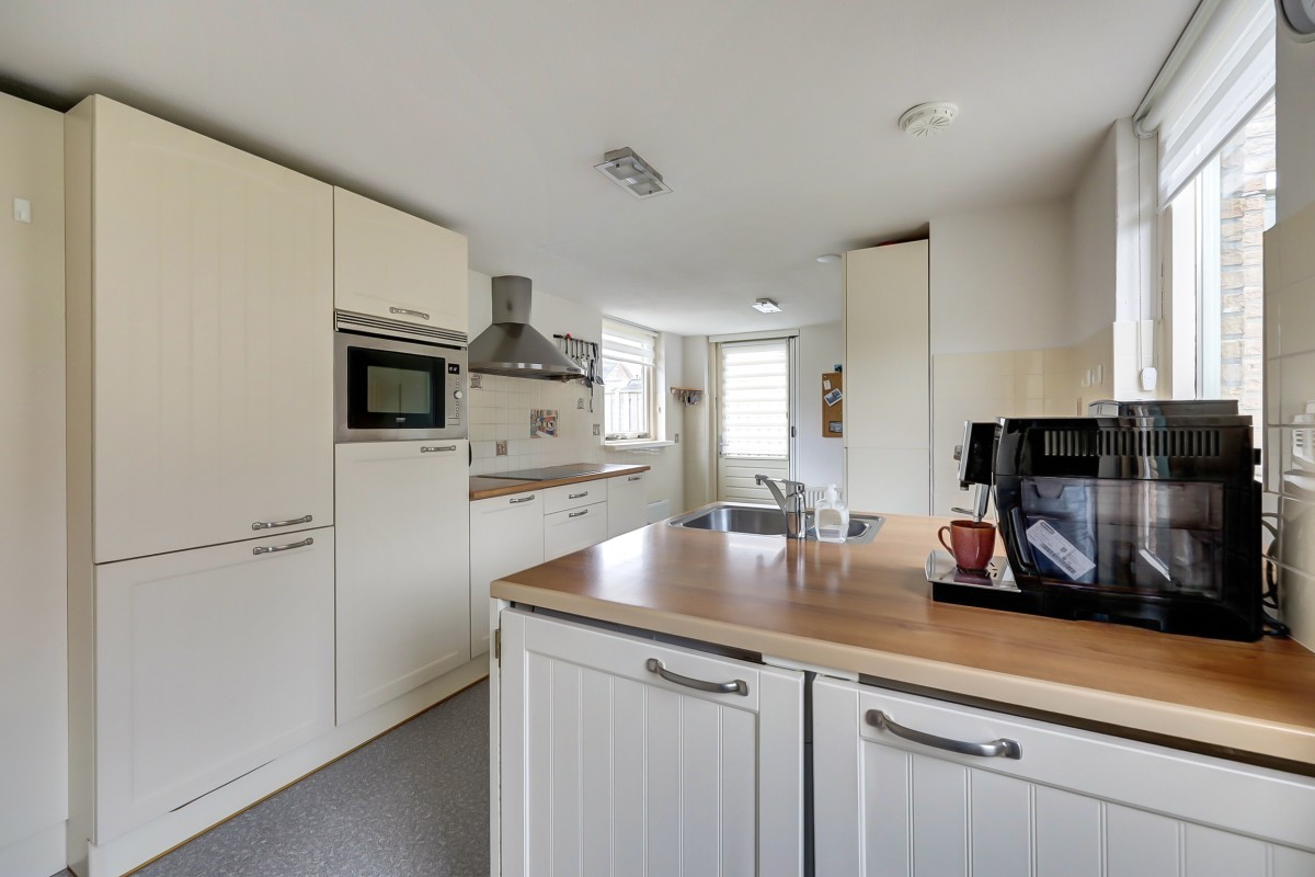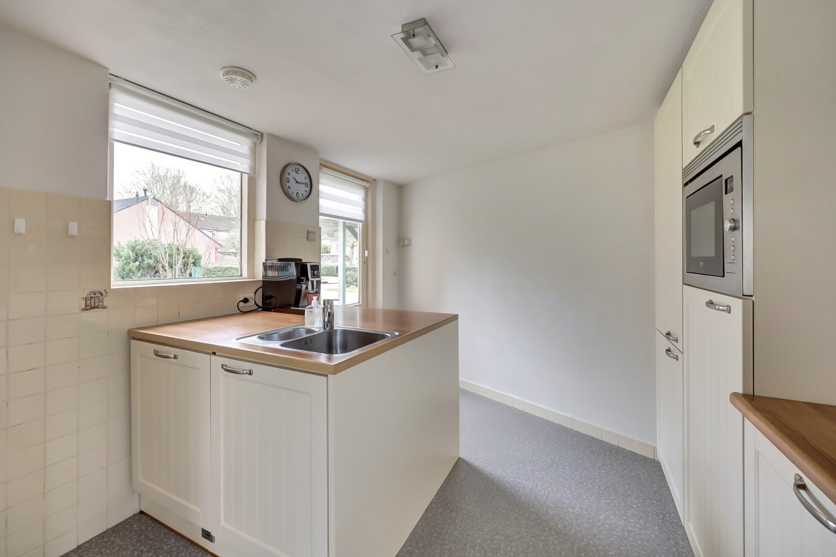 Lees verderDe aangebouwde keuken (1988) is uitgerust met diverse inbouwapparatuur, waaronder koelkast, vriezer, vaatwasser (2023), combimagnetron, 4-pits keramische kookplaat en afzuigschouw. Het spoeleiland is voorzien van een wasmachine- en drogeraansluiting, netjes geïntegreerd in de keuken. Vanuit de keuken is er toegang tot zowel de achter- als voortuin. De woonkamer en eetkamer hebben een parketvloer, de keuken en thuiswerkplek een Novilon vloer.
