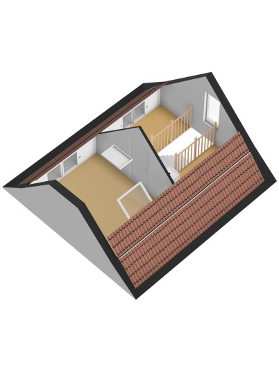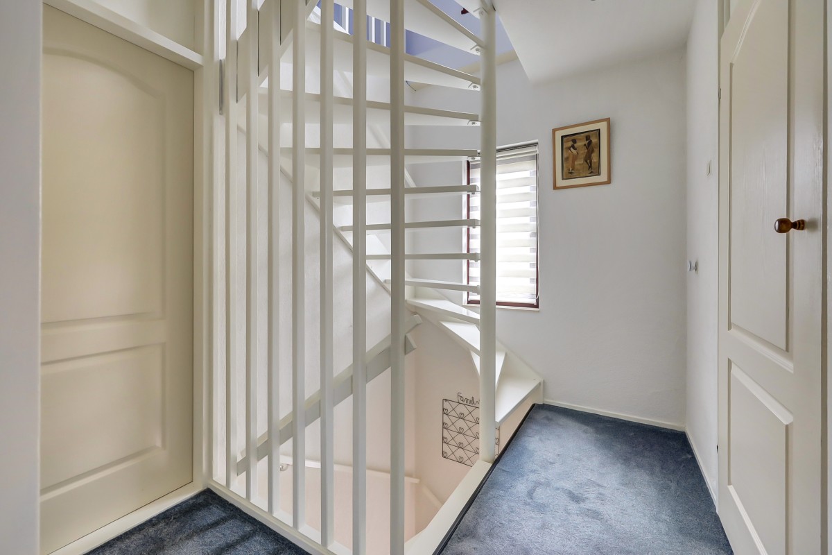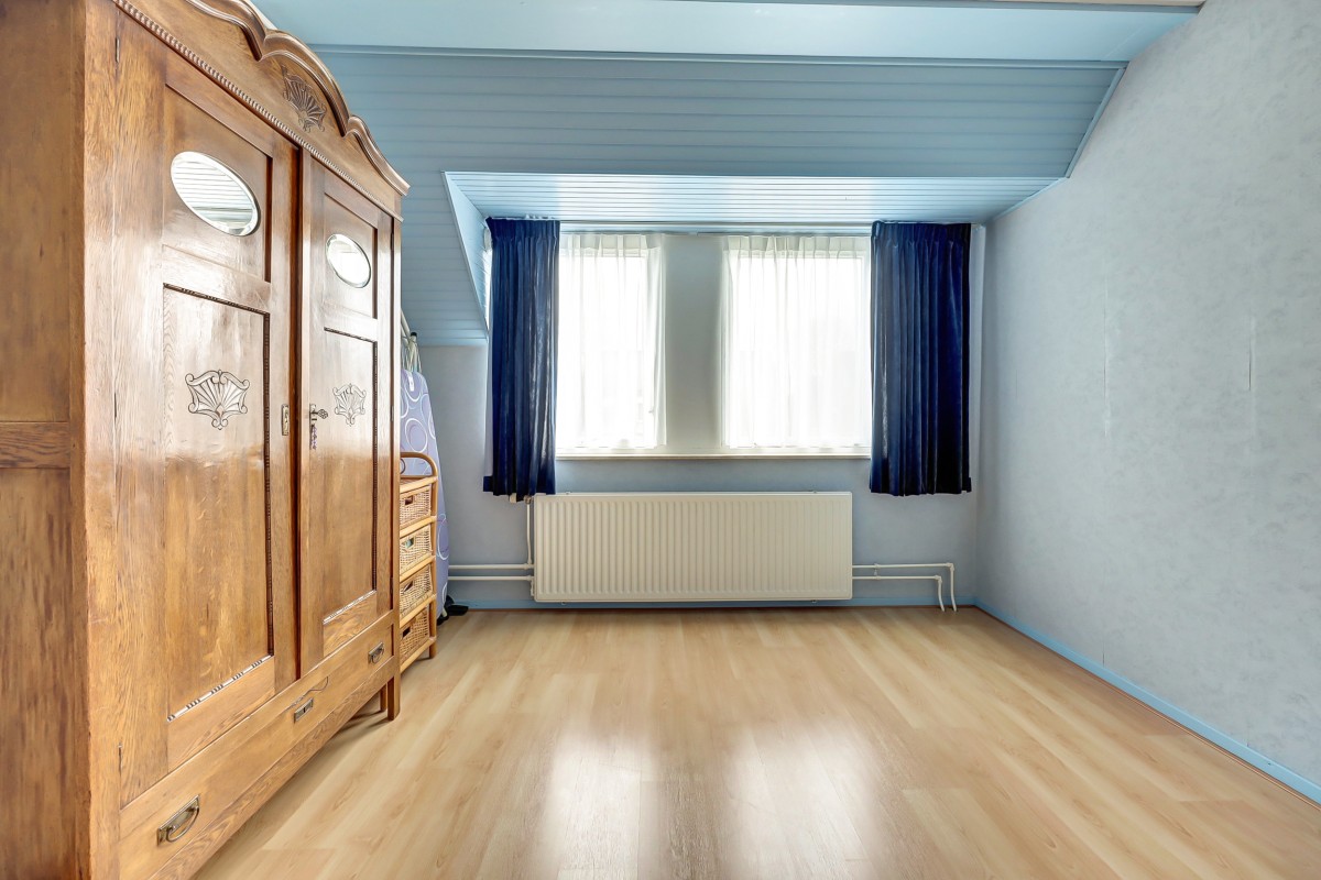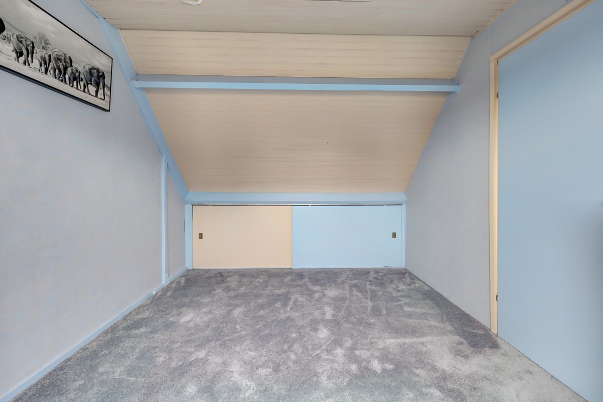 Via vaste trap bereikbaar. Overloop met cv-ketel en omvormers van de 23 zonnepanelen. Vierde slaapkamer met dakraam en kleine bergzolder.