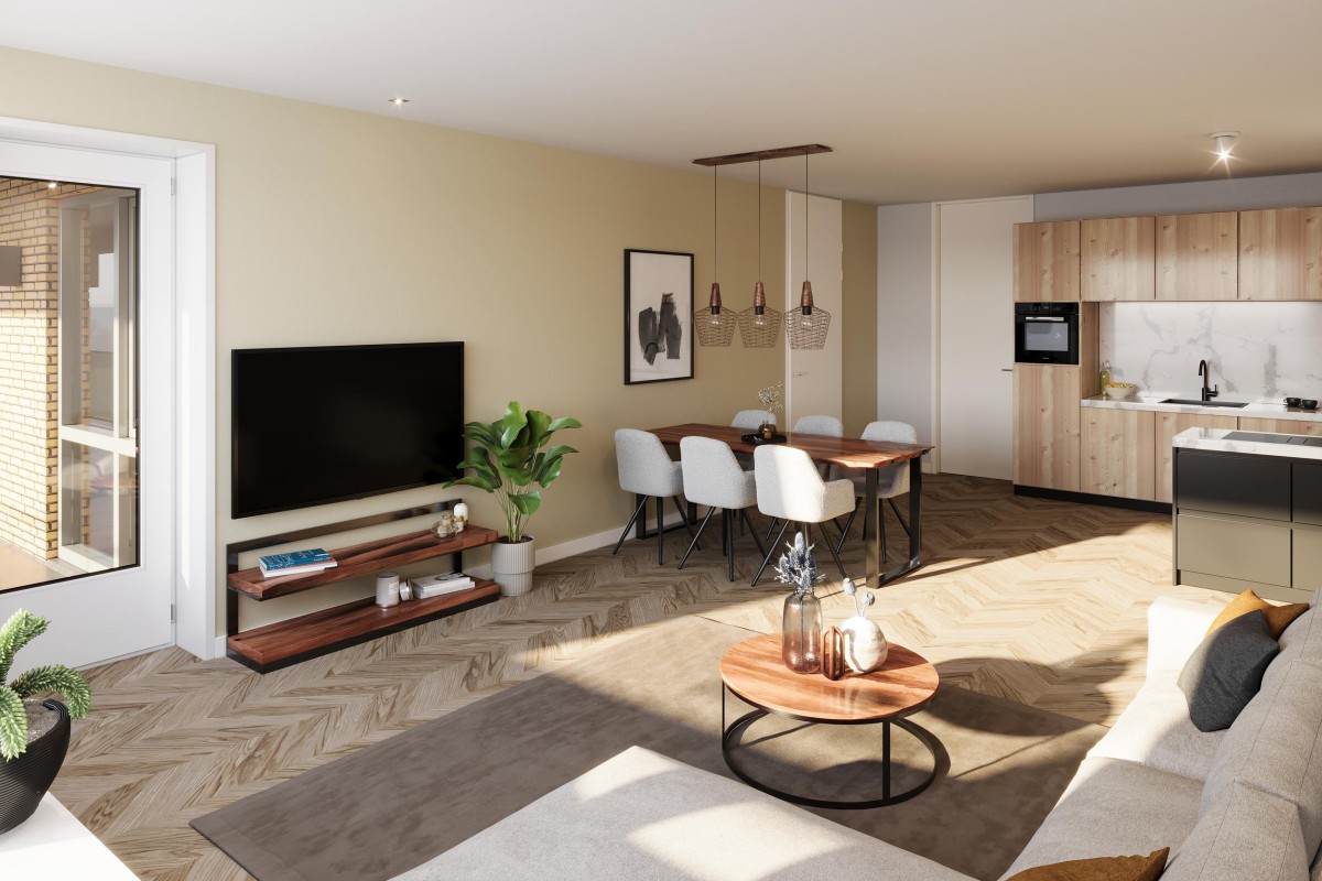 Drie ruime slaapkamers bieden volop mogelijkheden voor een thuiswerkplek, hobbyruimte of logeerkamer, waarbij iedere kamer is voorbereid met loze leidingen voor bijvoorbeeld internet of televisie. De royale woonkamer vormt het hart van het appartement en geeft via een deur toegang tot het zonnige balkon op het zuidwesten, waar een prachtig uitzicht over de groene omgeving en De Zuid is. De keuken kan volledig naar eigen wens worden ingericht, zodat een persoonlijke smaak aan het appartement gegeven kan worden.