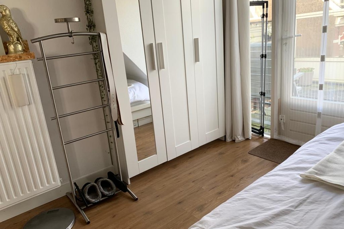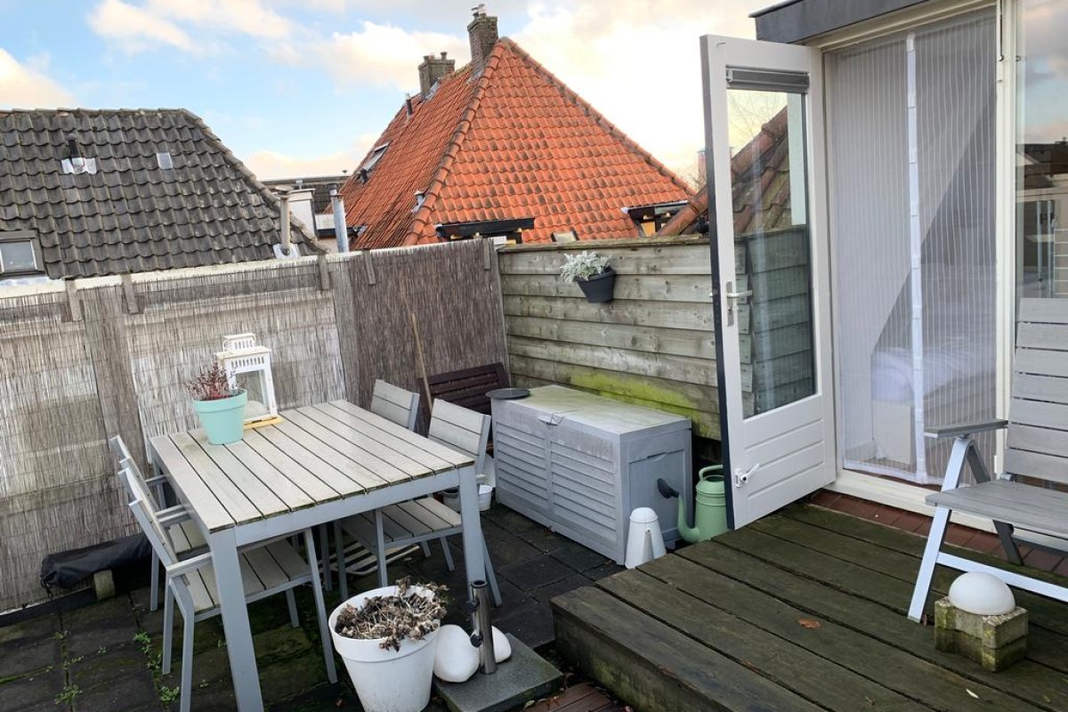 Lees verderSlaapkamer aan de achterzijde met toegang tot een fraai dakterras van ca 16 m2. Badkamer met wastafel, douche en toilet. Middels een vlizotrap is de vliering bereikbaar waar de cv opstelling aanwezig is.