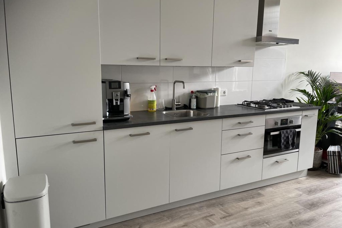 Entree, lichte woonkamer met moderne luxe open keuken voorzien van koel-/vriescombinatie, vaatwasser, gaskookplaat en afzuiginstallatie. De keuken is in juni 2020 geplaatst.