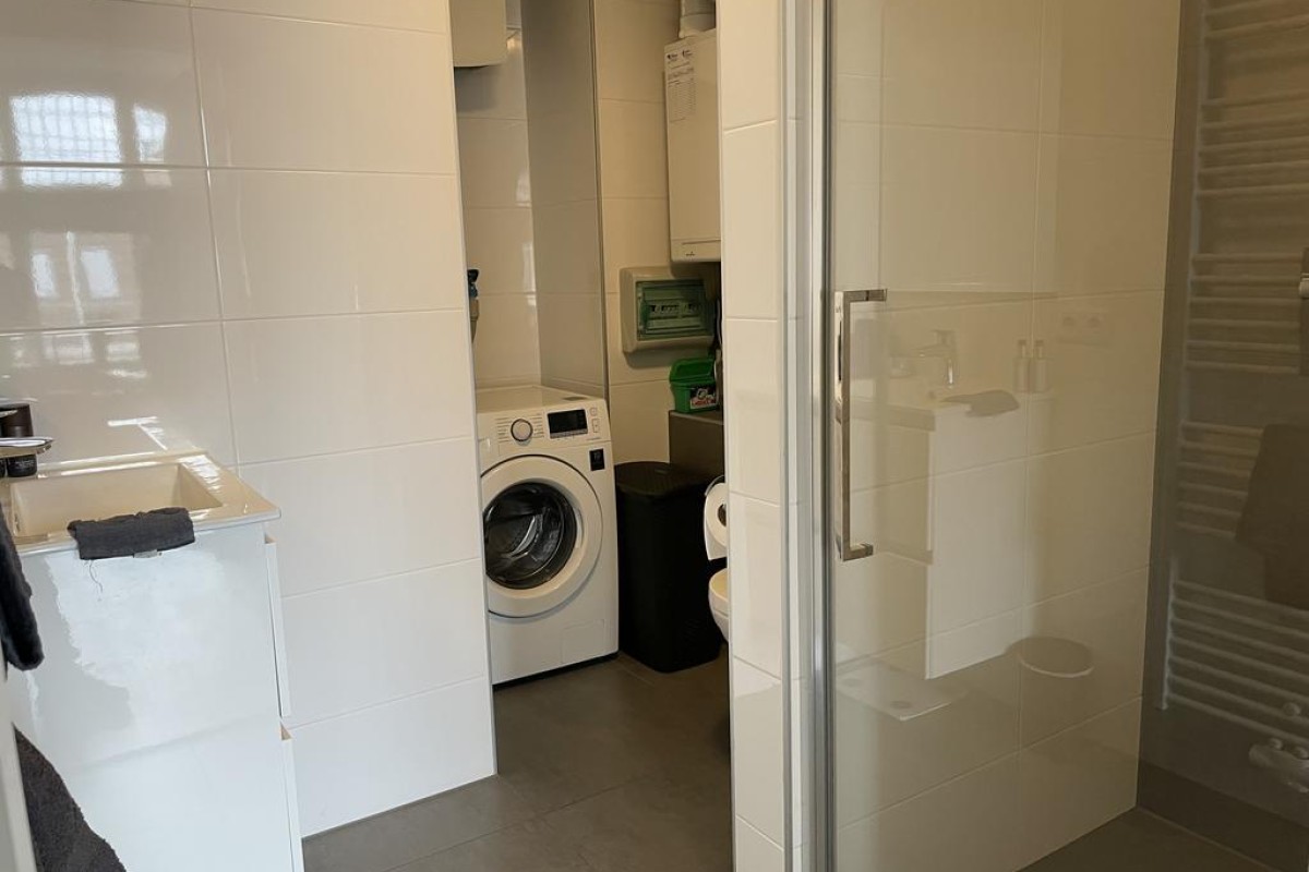 Lees verderDe badkamer is luxe afgewerkt met een fraaie inloopdouche, wastafelmeubel en toilet. Aan de achterzijde bevindt zich de stookruimte met wasmachineaansluiting.