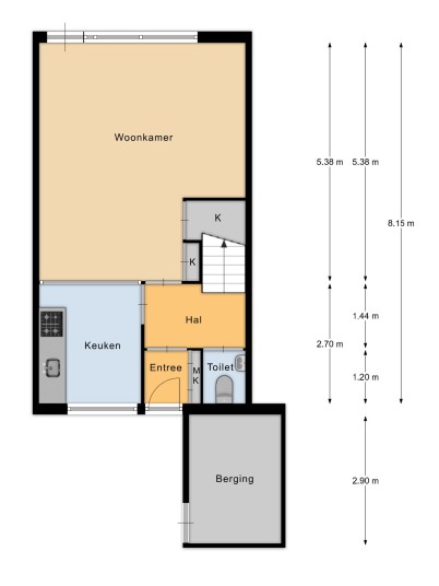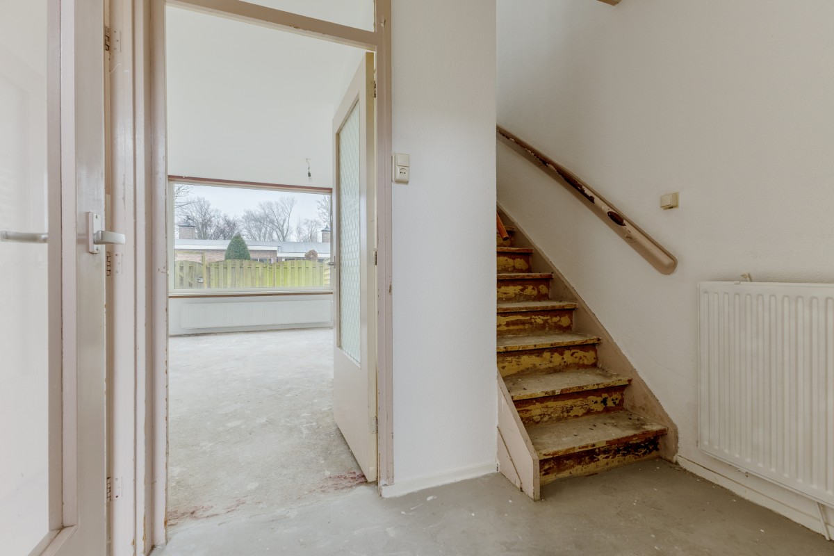 Lees verderThe kitchen is in shell condition and can be fully designed according to your own preferences. The living room is spacious and includes storage space under the staircase. This room offers ample space to create a comfortable sitting and dining area. From the living room, you also have access to the generous backyard of approximately 26 m², facing southwest.