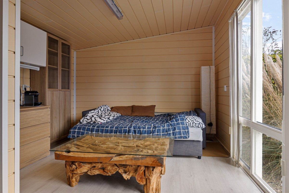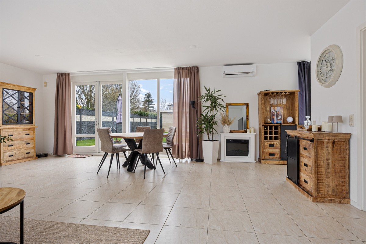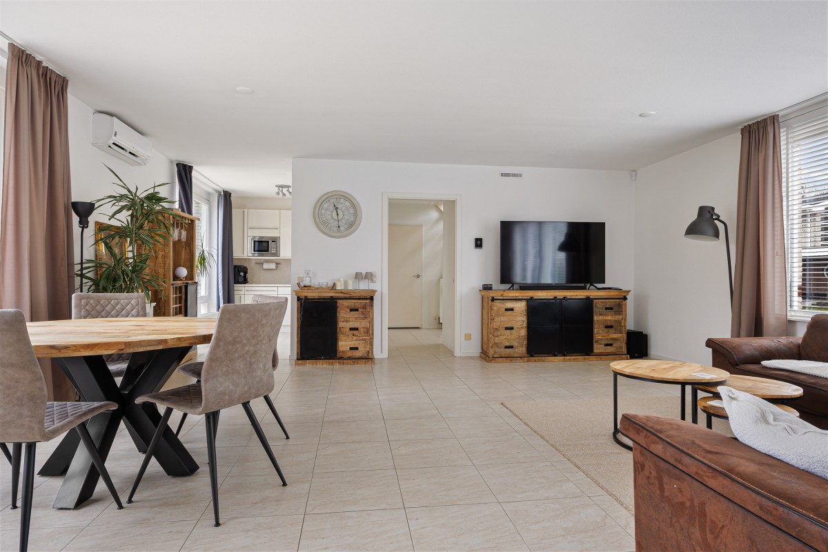De woonkamer is voorzien van veel raampartijen waardoor er veel licht de woonkamer binnen komt. Met airco voor zowel verwarmen als koelen is het hier altijd comfortabel.