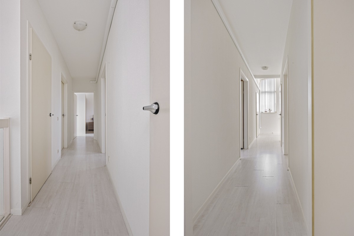 Overloop, met toegang tot de slaapkamers, badkamer en een praktische bergkast.