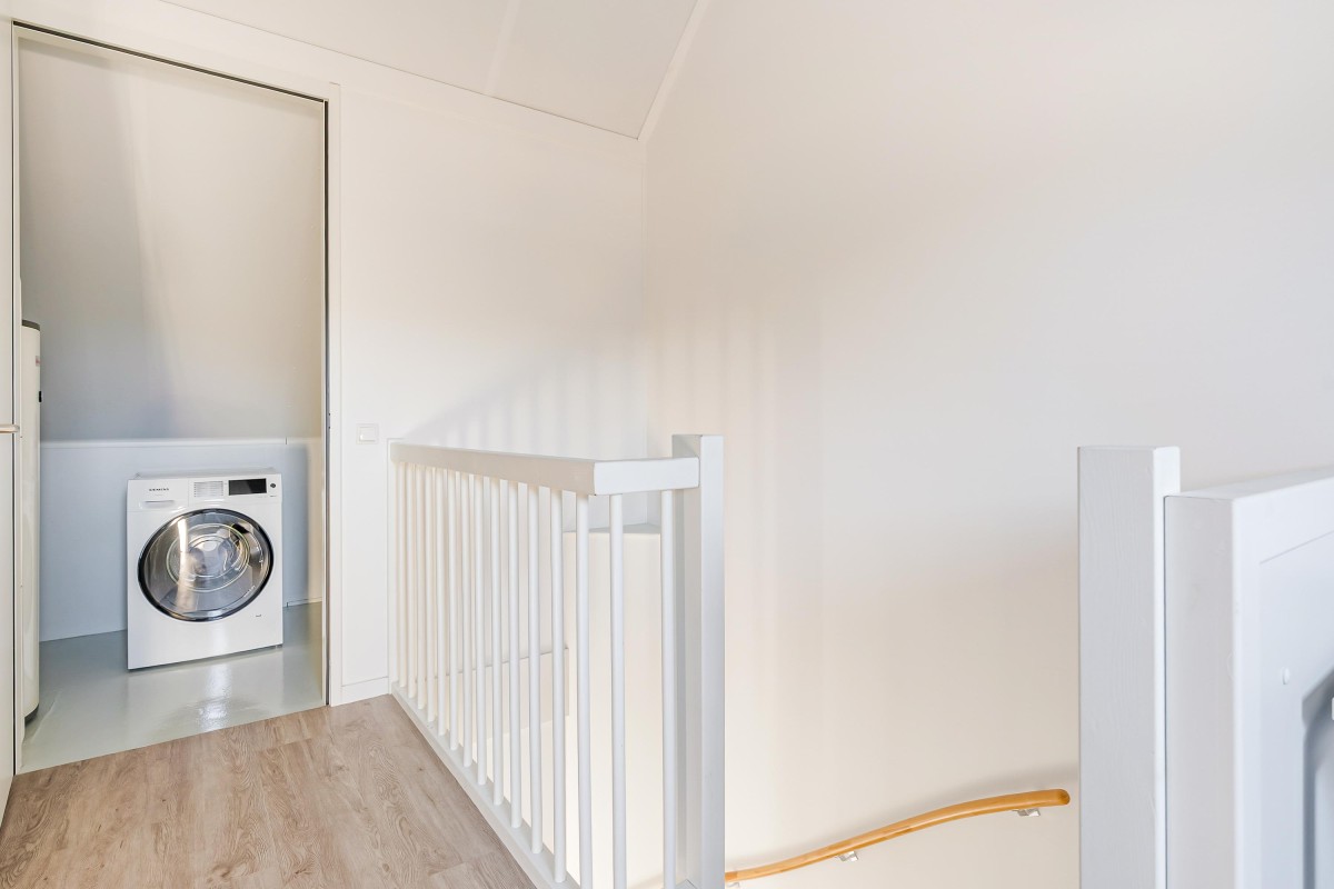 Accessible via a fixed staircase, this upper floor features a landing, laundry room, and access to the fourth bedroom. The landing has a skylight and provides access to the laundry room. The space also houses a washing machine.