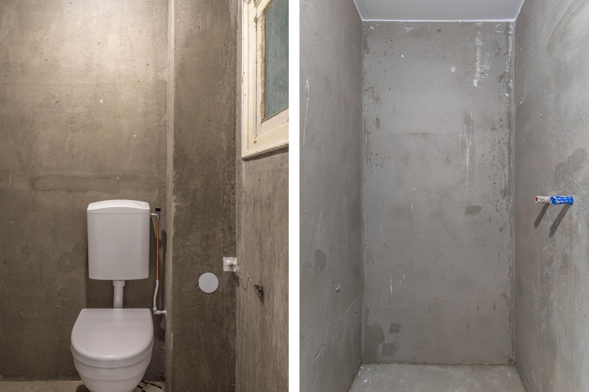 Via the communal stairwell, you reach the apartment on the first floor. Upon entering, you arrive in the hallway, which provides access to several rooms. The bathroom is equipped with a toilet and connections for a sink and shower.
