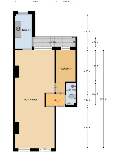 - Living area 56.6 m² in accordance with NEN2580 measurement certificate;