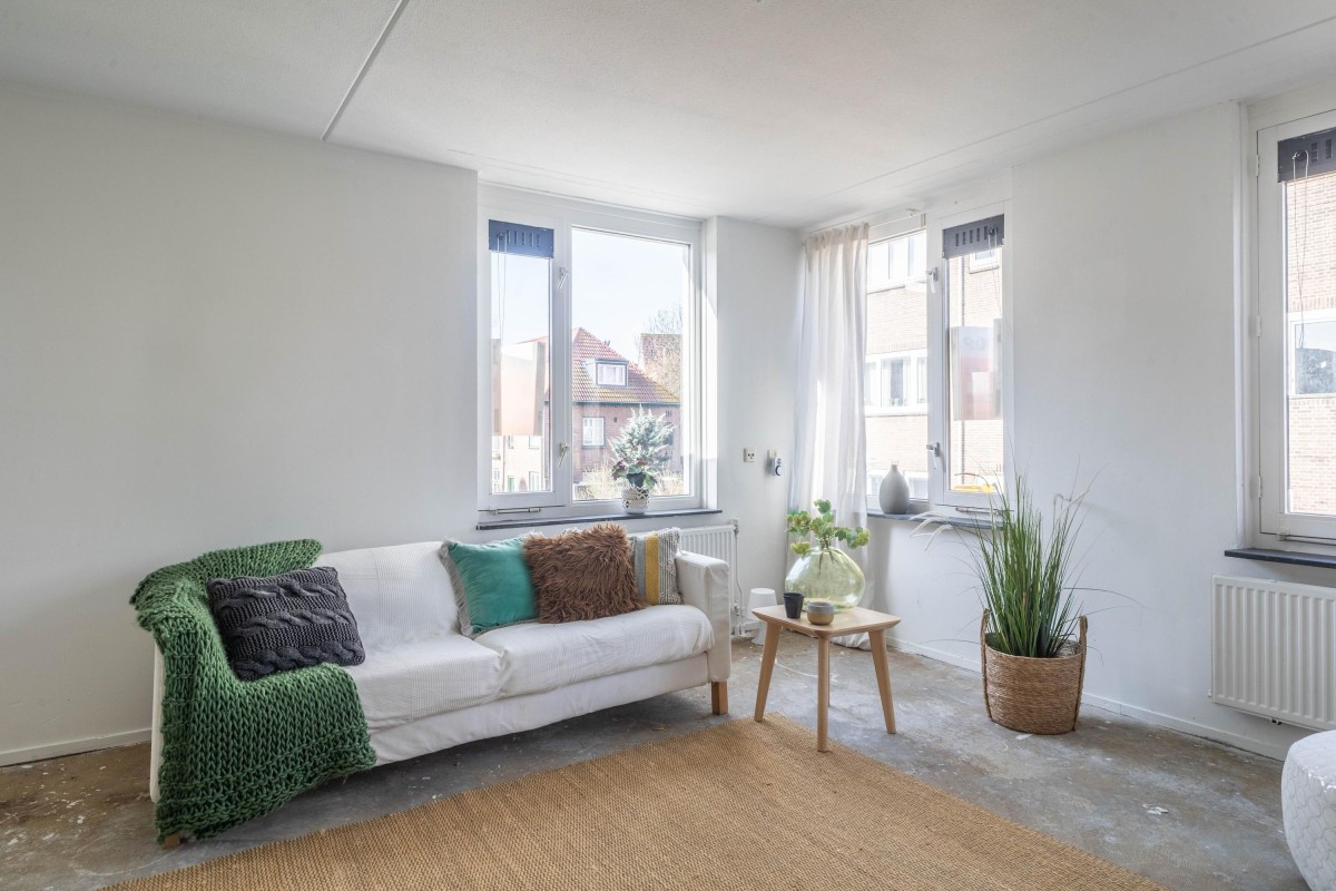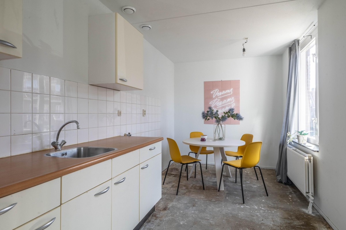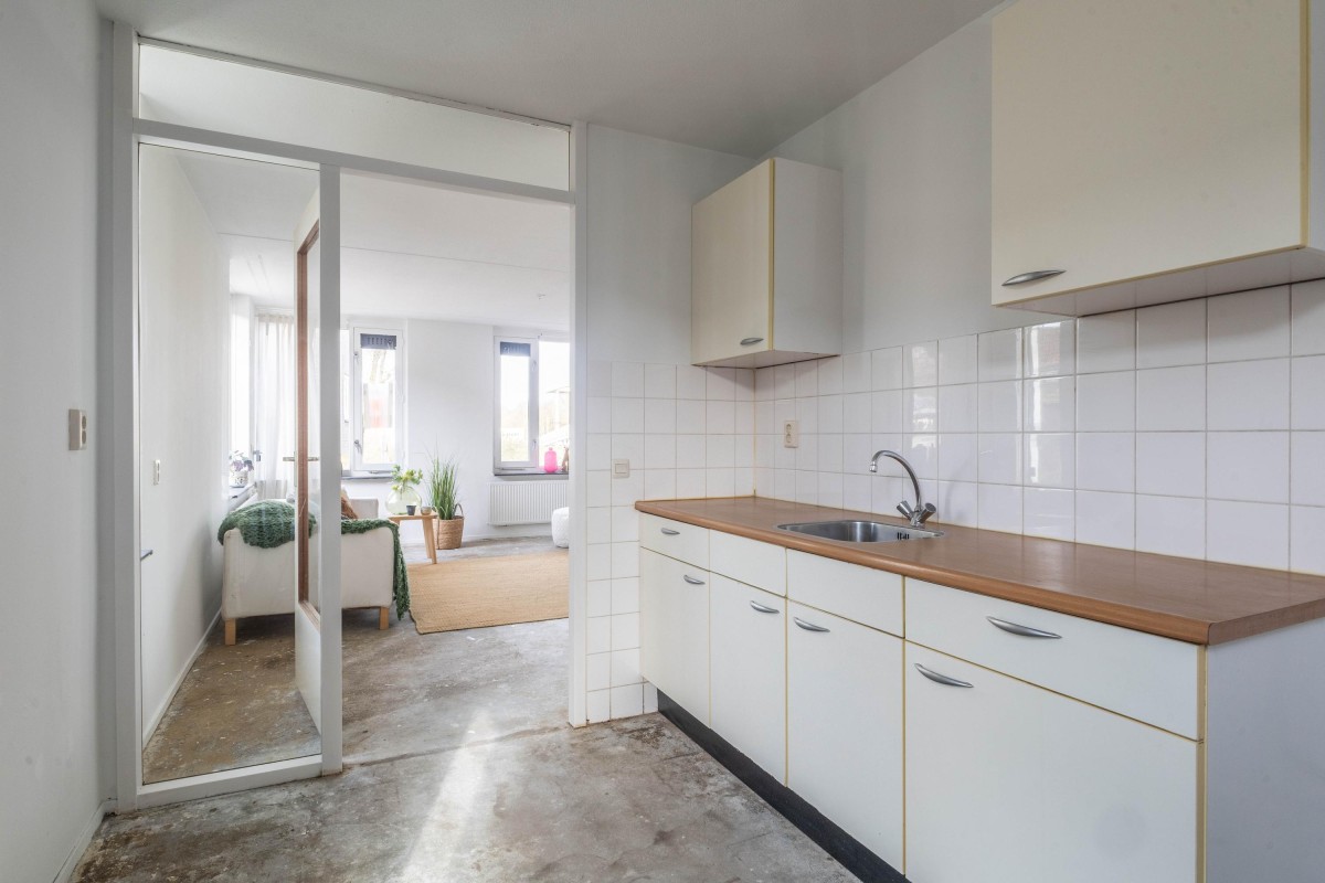 Lees verderFrom the living room, you have access to the northwest-facing balcony, where you can relax and enjoy the evening sun after a long day. The kitchen is equipped with a standard kitchen unit. The partition wall to the living room can easily be removed, allowing you to create a spacious open living area if desired.