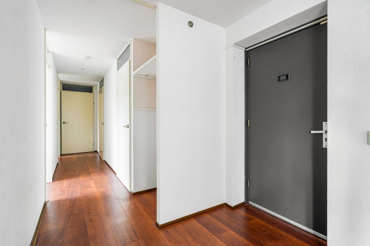 Entrance/hallway with meter cupboard, separate toilet, and access to the two bedrooms, bathroom, and the spacious, bright living room with a door leading to the balcony. Upon entering the living room, your attention is immediately drawn to the breathtaking view. The living room is very spacious and provides access to the sunny 9 m² northwest-facing balcony.