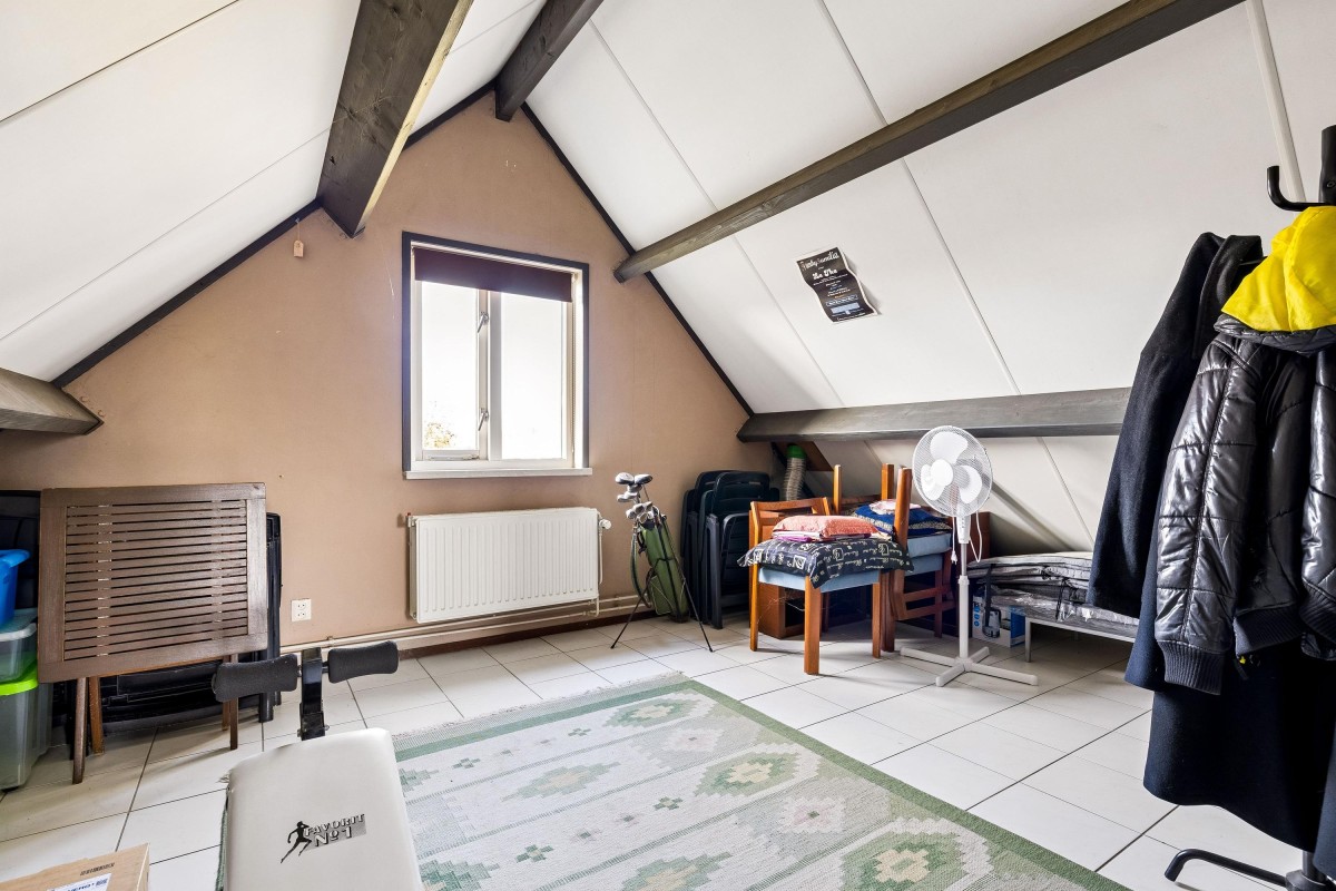 At the front of the house, the former garage contains a large storage room, perfect for bicycles and garden tools.